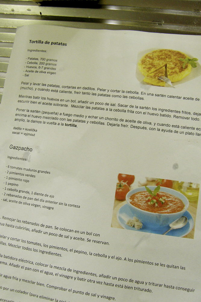 V rámci výuky španělského jazyka si žáci deváté třídy vyzkoušeli uvařit podle receptu ve španělštině některá typická španělská jídla: