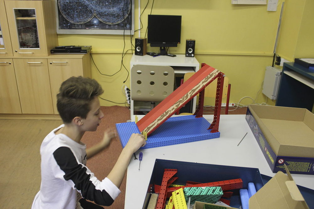Montáž pomůcek do hodin fyziky ze stavebnice Merkur nebyla až tak jednoduchá. Návody byly jen na základní montážní operace. A tak bylo občas nutno velkou část rozšroubovat a začít znovu. Chybami se člověk učí a trpělivost růže přináší.