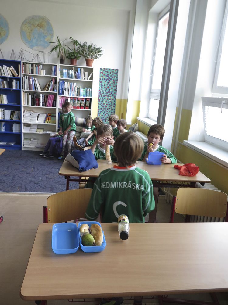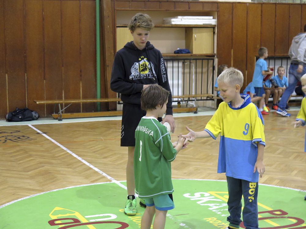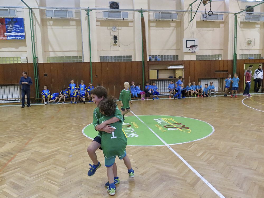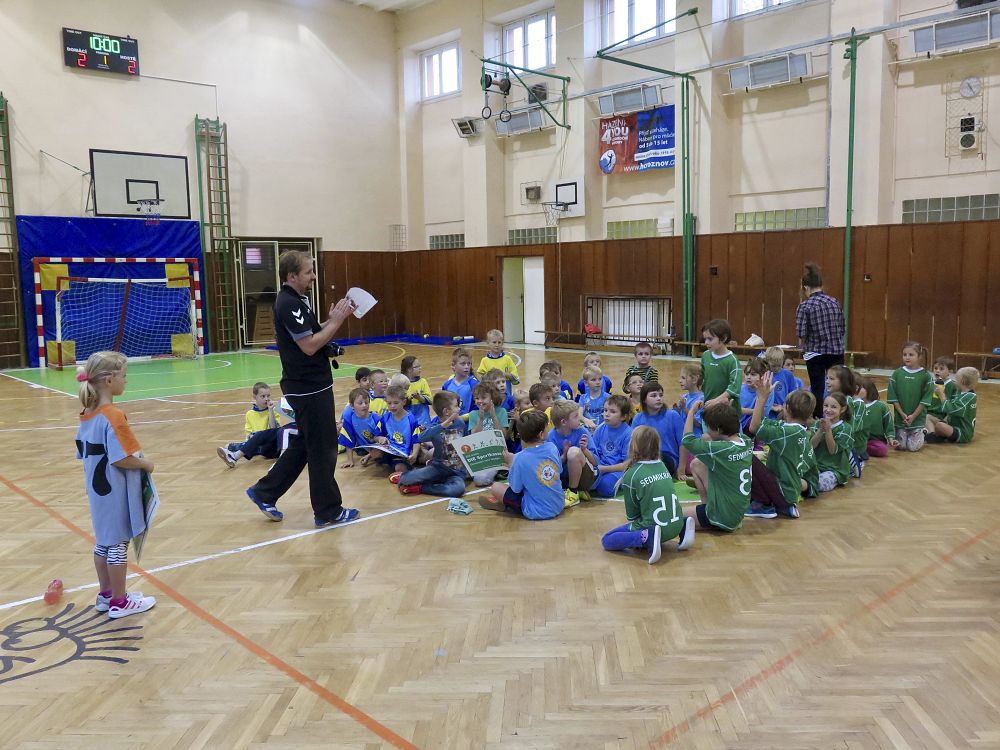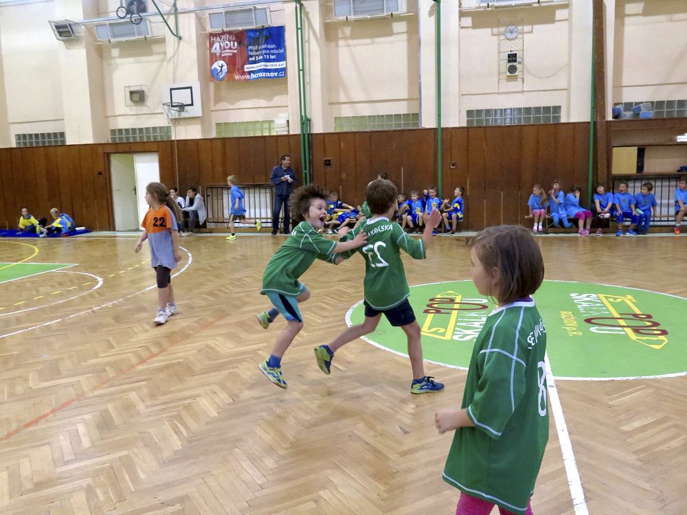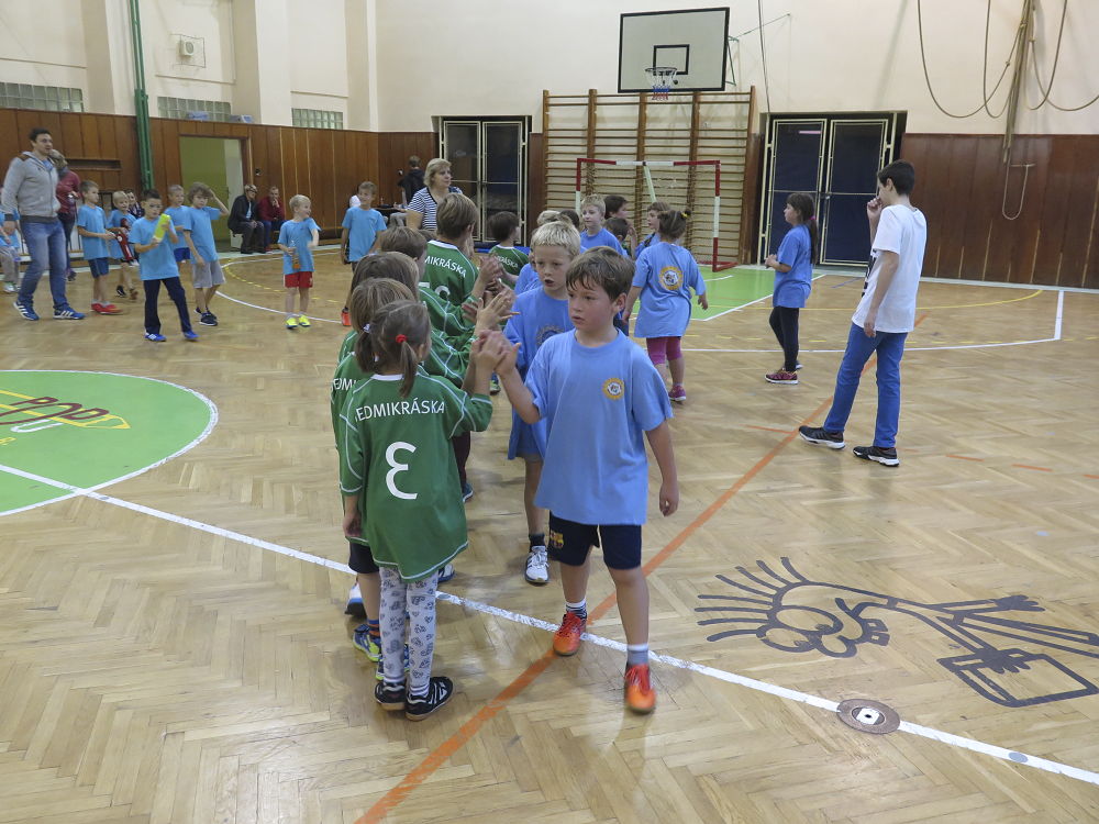 Tak se druháci konečně dočkali. Nastalo úterý 18. 10. a tolik o přestávkách vzpomínaný a debatovaný turnaj v miniházené byl zahájen hvizdem píšťalky pana rozhodčího. Tým deseti žáků II. třídy posílený o dva prvňáčky se pustil do 5 zápasů se školními družstvy z Videčské, 5. května, Koryčanských Pasek a Podskalky. První zápas těsně prohráli, ale potom se jim začalo více dařit při střelbě, drželi pospolu v obraně a hlavně si častěji nahrávali. Tři zápasy po sobě zvítězili. Na ten rozhodující o konečné umístění se posilnili a dali hlavy dohromady s panem učitelem. Bojovali, v půlce utkání už vedli, a když ještě pár gólů přidali, mohli se zaslouženě radovat z 2. místa. Objetí, výkřiky štěstí, radost v očích,...