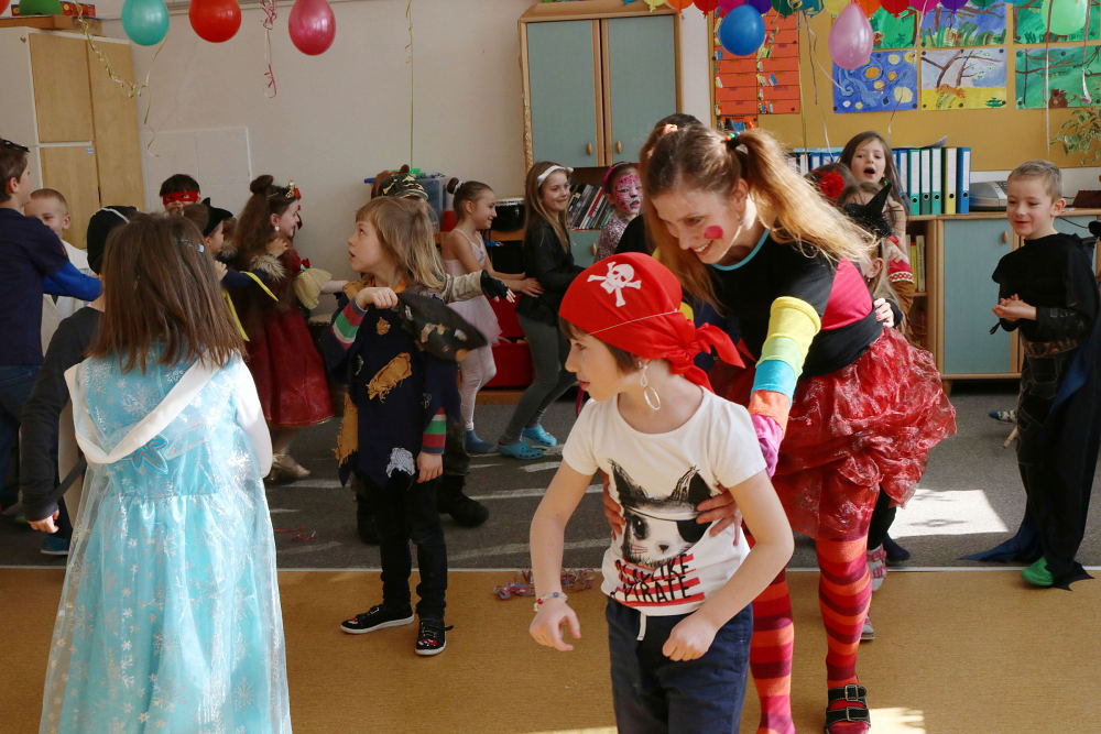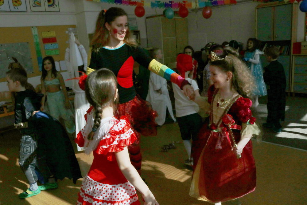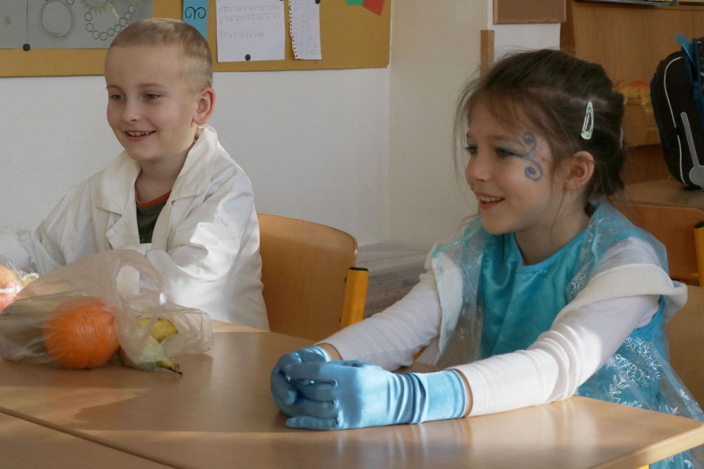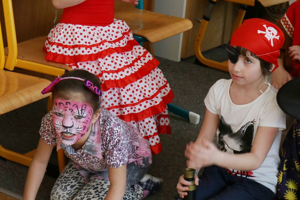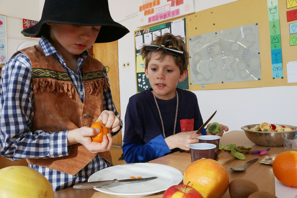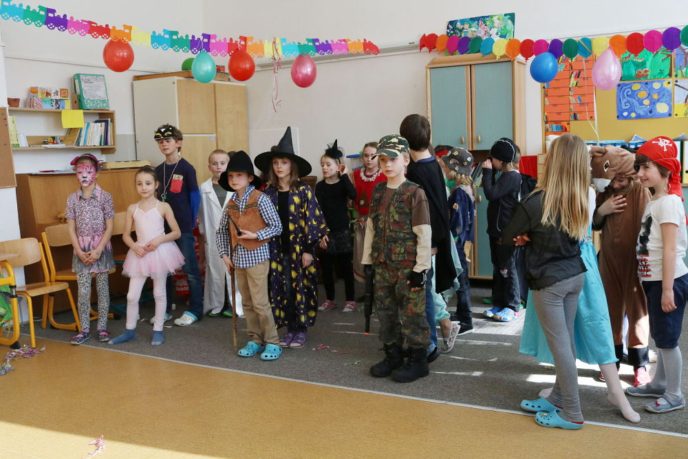 Jednoho pátečního rána se děti z první a druhé třídy proměnily v princezny, piráty, vodníky, tanečnice, strašidla, Vyzkoušeli jsme si přichystat zdravé občerstvení z ovoce, tvořili jsme karnevalové kresbičky a vymýšleli podivuhodné kouzelné recepty. Den jsme ukončili hrami, tancem a dobrou náladou.