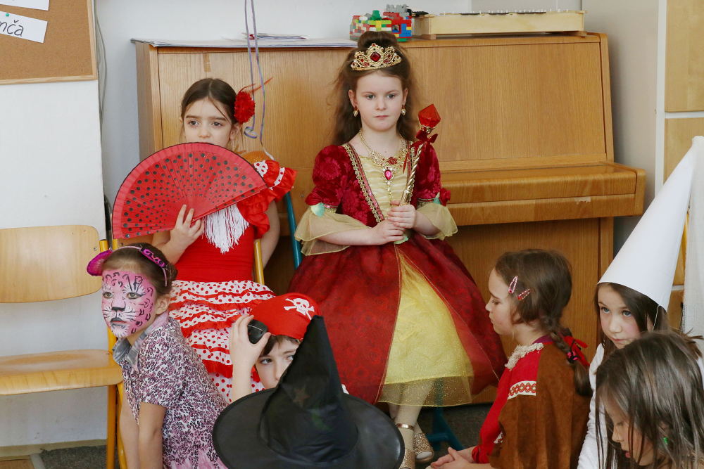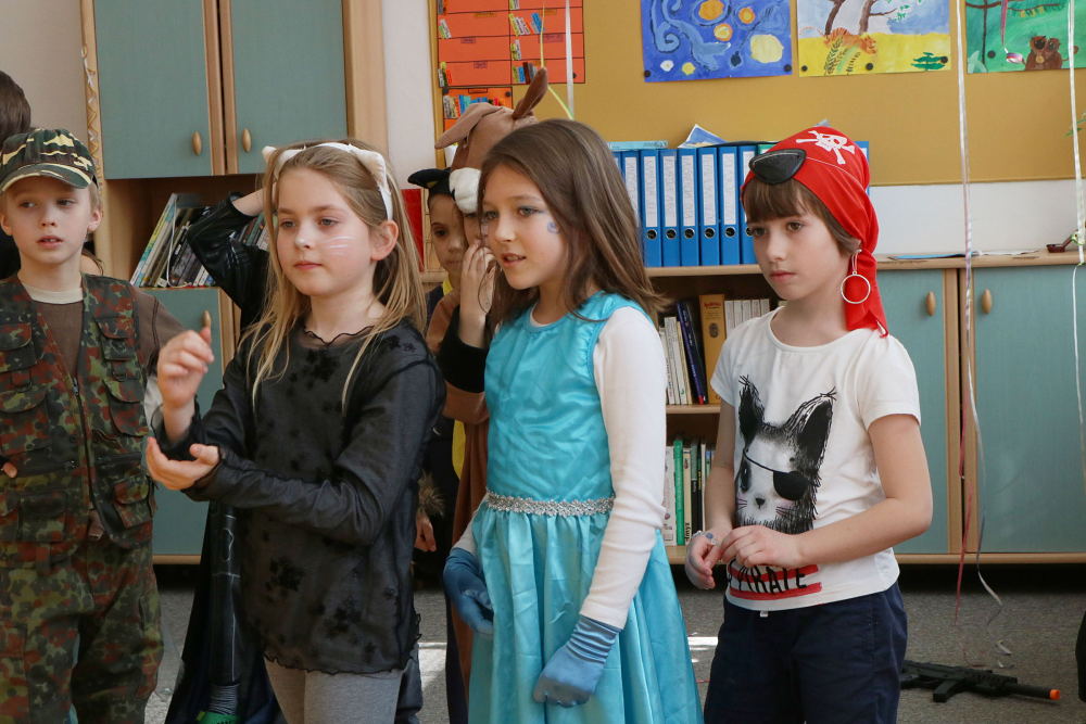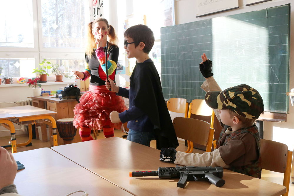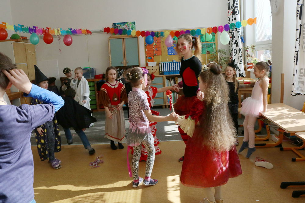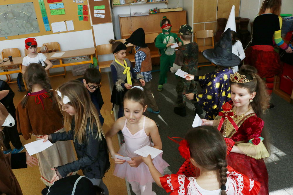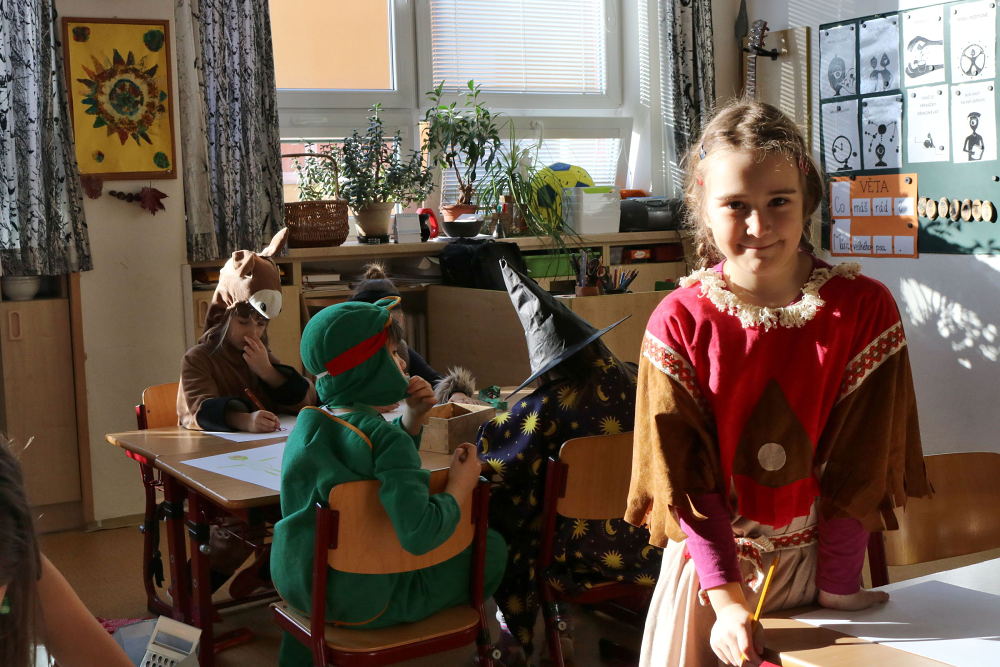 Jednoho pátečního rána se děti z první a druhé třídy proměnily v princezny, piráty, vodníky, tanečnice, strašidla, Vyzkoušeli jsme si přichystat zdravé občerstvení z ovoce, tvořili jsme karnevalové kresbičky a vymýšleli podivuhodné kouzelné recepty. Den jsme ukončili hrami, tancem a dobrou náladou.