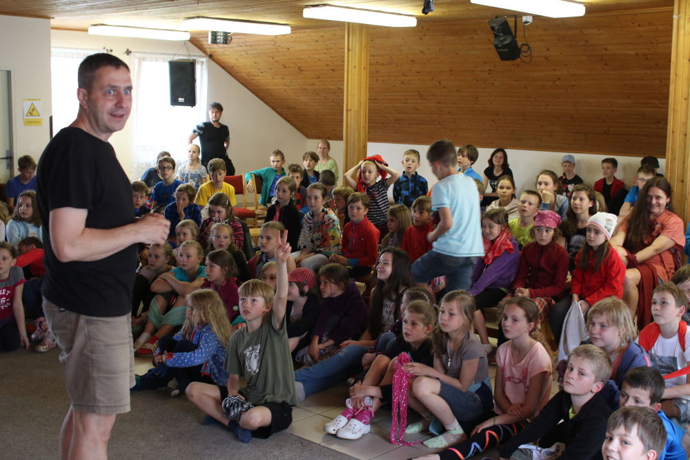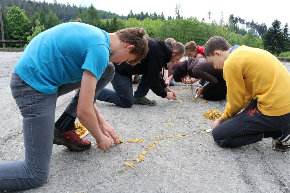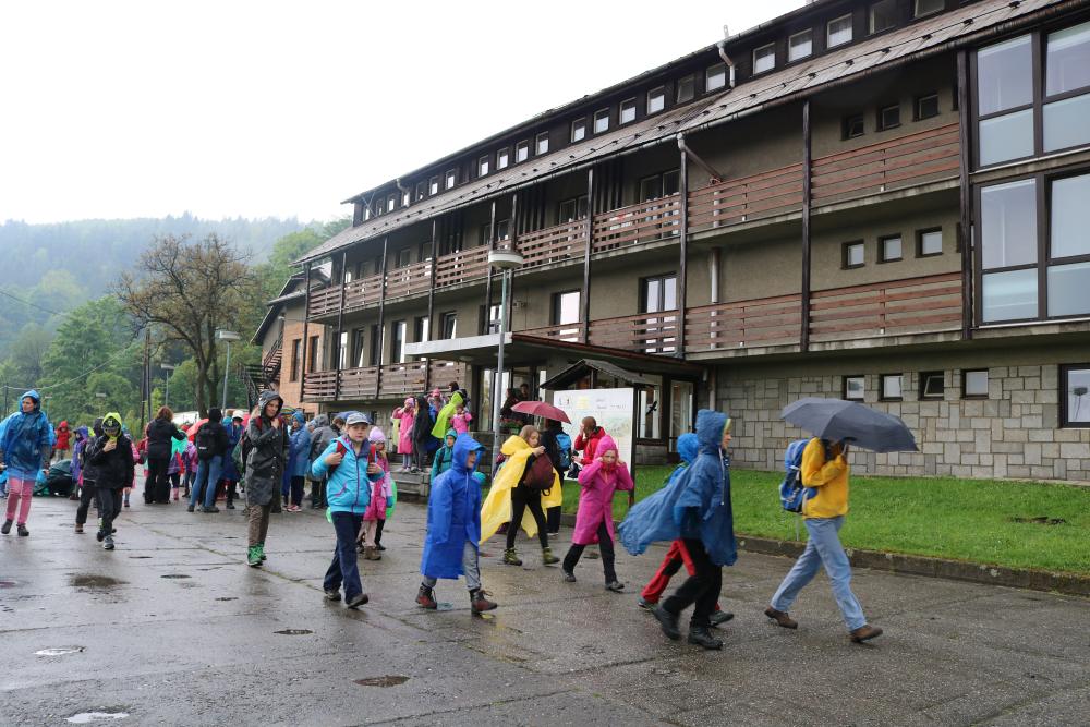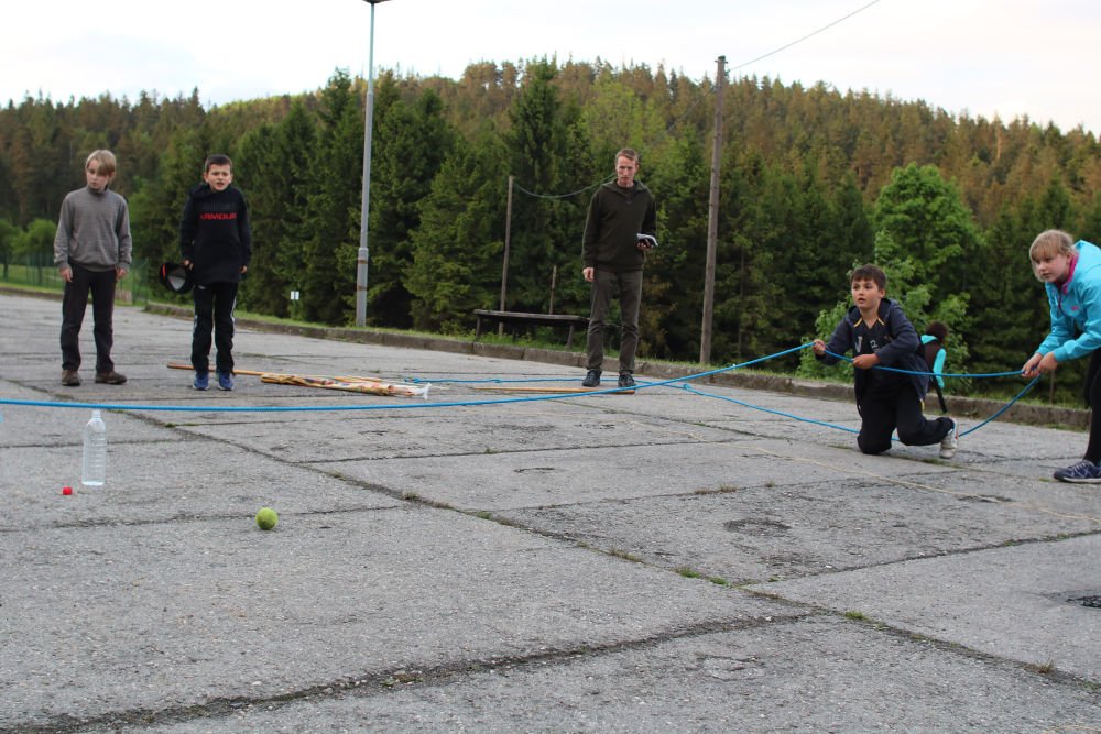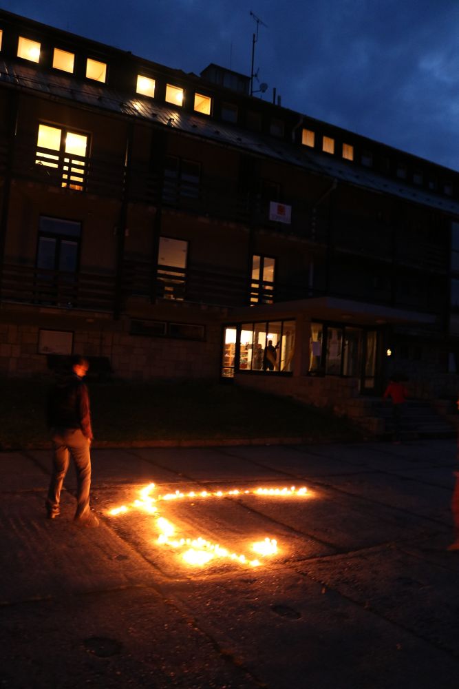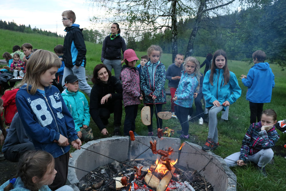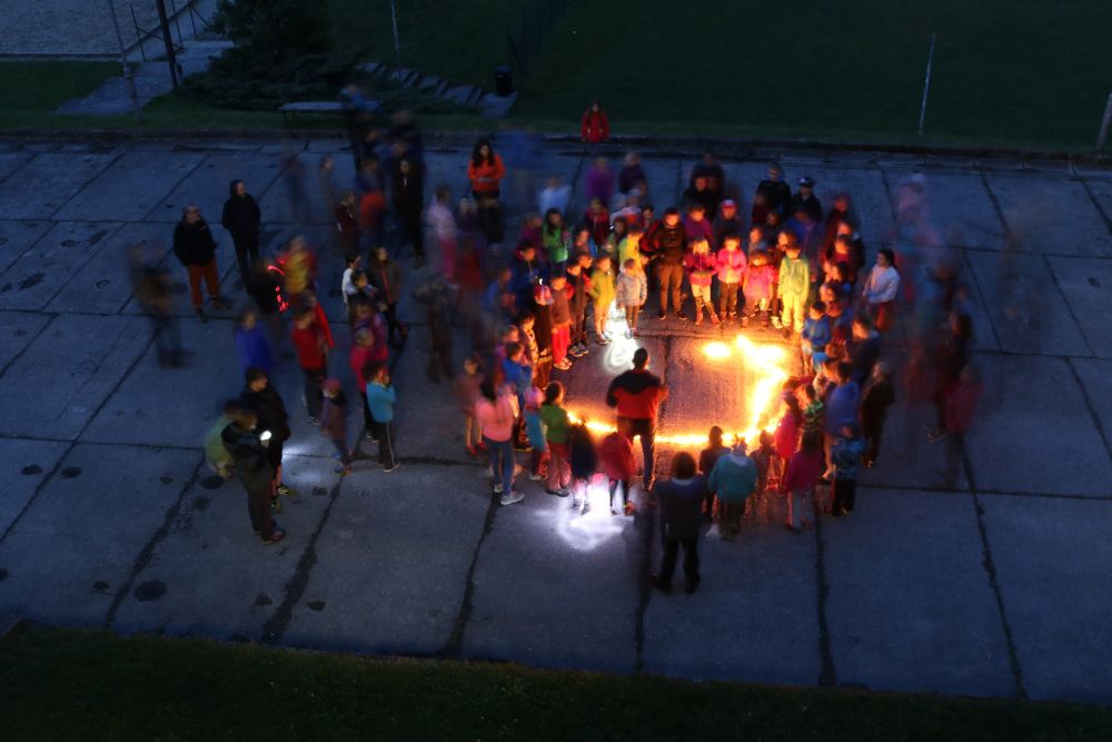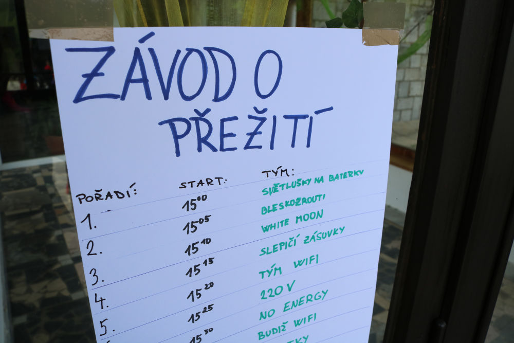 Tři autobusy s žáky I. - IX. třídy se v úterý ráno rozloučily s rodiči a spolu s pedagogy vyjely směrem k rekreačnímu středisku Palkovické hůrky. Čekala nás velká chata mezi kopci a v okolí mnoho míst ke sportu i odpočinku, od pískového i asfaltového hřiště přes fotbalový trávník, altán, posezení či ohniště. Po ubytování se děti formou hry seznámily s okolím a z šifry začaly tušit, jaké téma bude provázet společné čtyři dny. Další nápovědou byla scénka ztřeštěné rodinky, která se hroutila, když přestala fungovat elektřina. Pak už bylo jasno - tématem je BLACKOUT! Ve třinácti týmech sestavených napříč třídami se žáci měli připravit k přežití bez elektřiny, kdy každý využil své schopnosti a vlastnosti pro tým, dále se i něco více dozvěděl a přiučil. A to se podařilo! Co všechno jsme stihli? Večerní procházku za šera či tmy na rozhlednu s informacemi k blackoutu, seznamku a FB/ YT bez elektřiny, výlet k přehradě Olešná s parádními hřišti, výrobu svíček, pletení šál, hry k získání léku či večerní hru se svíčkami, výuku týkající se ohně, vody, signalizace, první pomoci, jedlých rostlin, stop zvěře, uzlování a života potmě. Také rozcvičky i večerníčky, fotbal, přehazovanou a stavění hradů z písku, povídání s novými kamarády, ... Poslední večer u ohně doprovázelo písněmi okolo desíti kytaristů a hráčů na ukulele, zpěváků bylo nepočítaně. V pátek ráno balení, loučení s okolím a společné vyhodnocení. Všichni získali diplom o přežití bez elektřiny a jako připomínku připínací placku. Největší potlesk si vysloužili prvňáčci, kteří opravdu skvěle zvládli pobyt bez rodičů.
