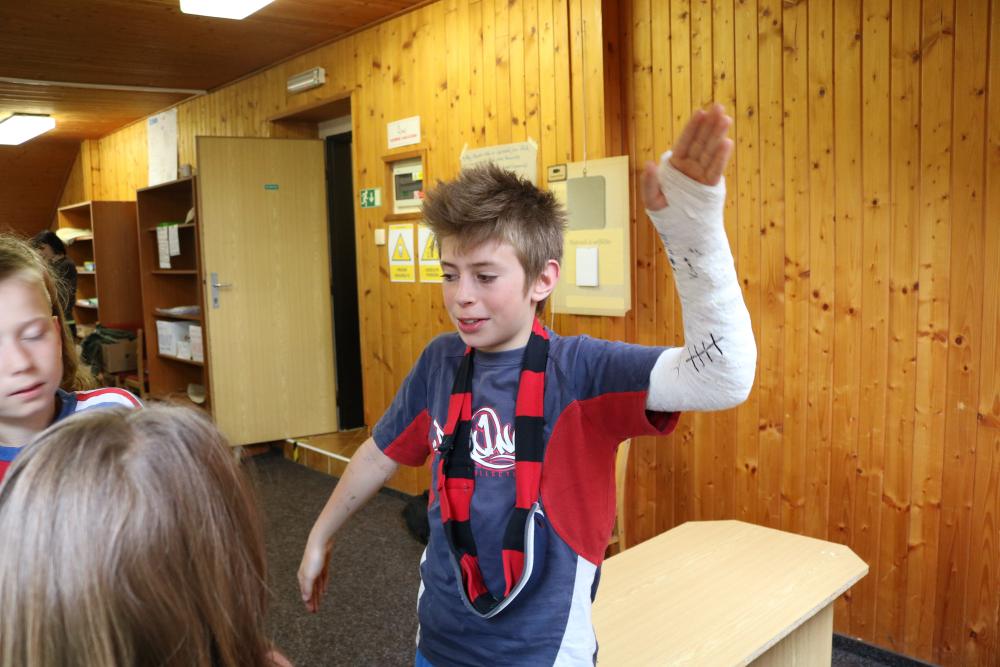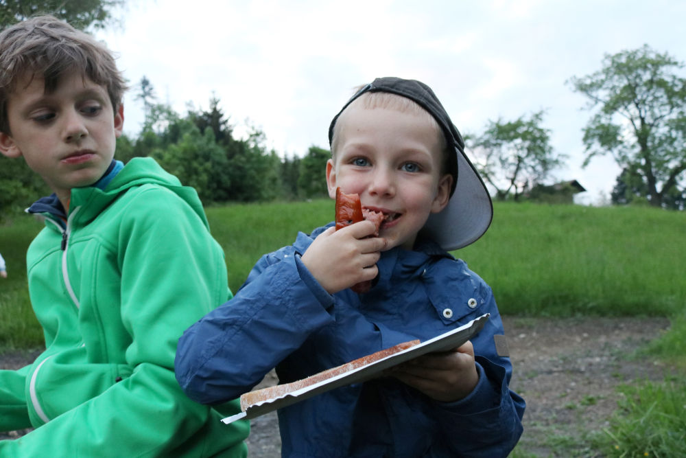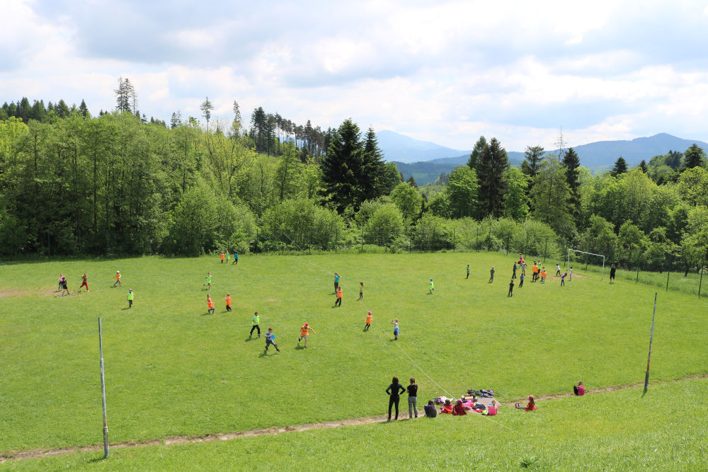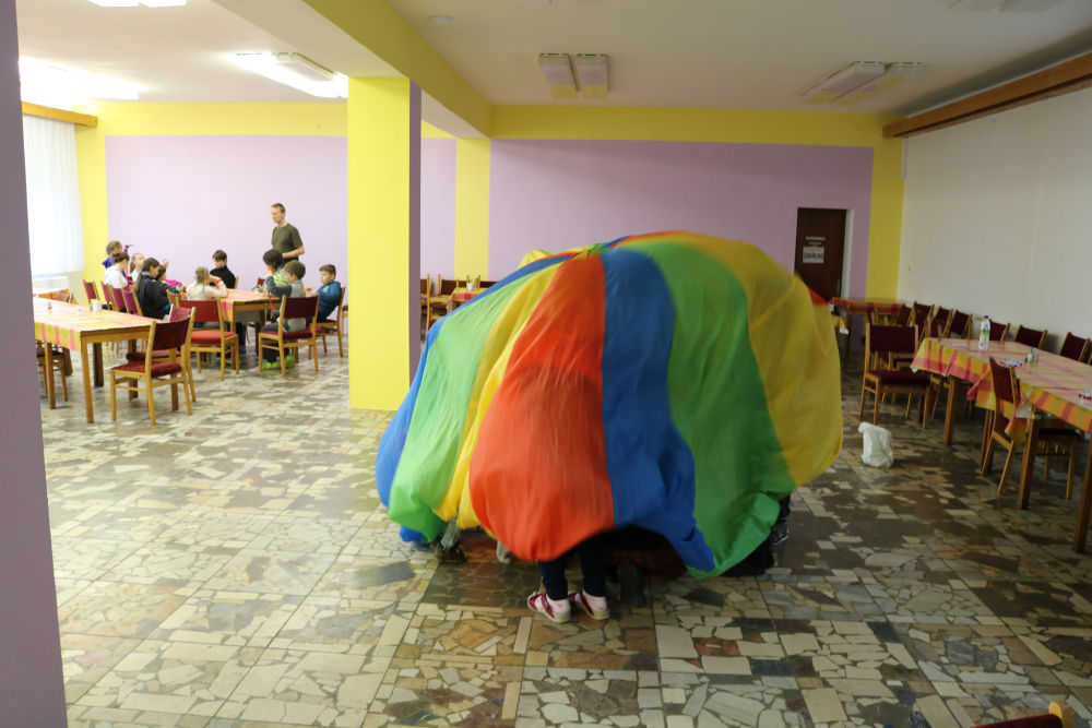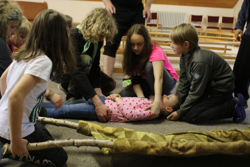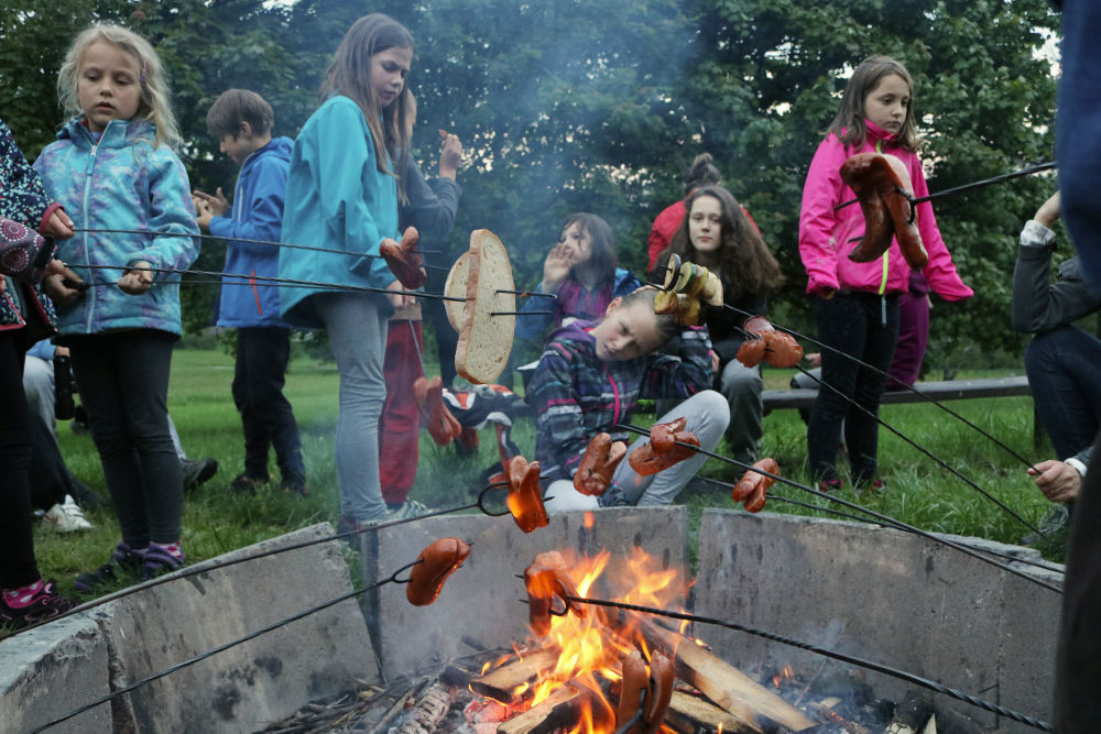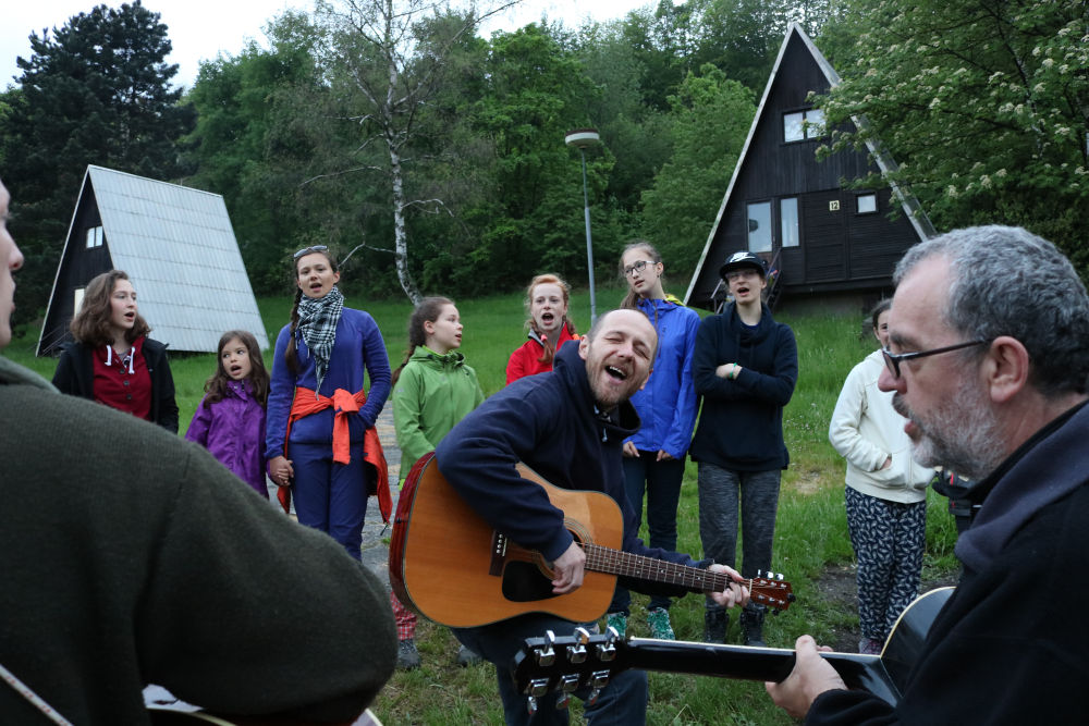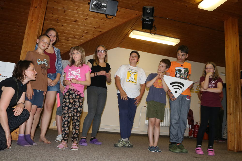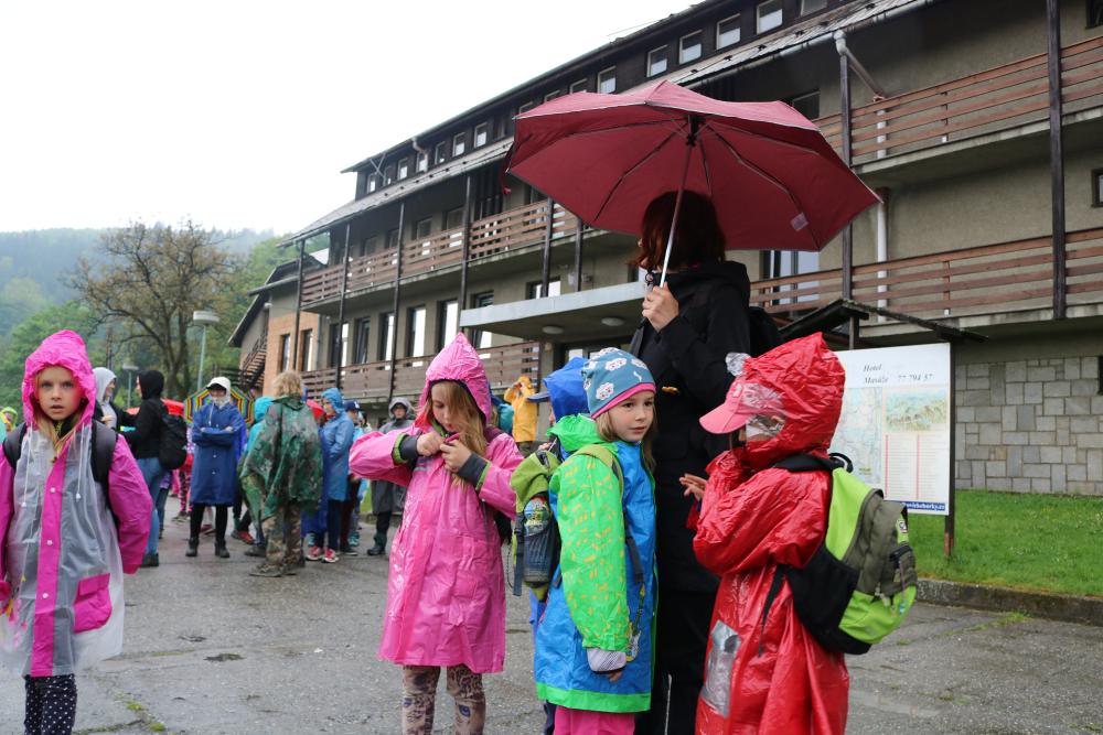 Tři autobusy s žáky I. - IX. třídy se v úterý ráno rozloučily s rodiči a spolu s pedagogy vyjely směrem k rekreačnímu středisku Palkovické hůrky. Čekala nás velká chata mezi kopci a v okolí mnoho míst ke sportu i odpočinku, od pískového i asfaltového hřiště přes fotbalový trávník, altán, posezení či ohniště. Po ubytování se děti formou hry seznámily s okolím a z šifry začaly tušit, jaké téma bude provázet společné čtyři dny. Další nápovědou byla scénka ztřeštěné rodinky, která se hroutila, když přestala fungovat elektřina. Pak už bylo jasno - tématem je BLACKOUT! Ve třinácti týmech sestavených napříč třídami se žáci měli připravit k přežití bez elektřiny, kdy každý využil své schopnosti a vlastnosti pro tým, dále se i něco více dozvěděl a přiučil. A to se podařilo! Co všechno jsme stihli? Večerní procházku za šera či tmy na rozhlednu s informacemi k blackoutu, seznamku a FB/ YT bez elektřiny, výlet k přehradě Olešná s parádními hřišti, výrobu svíček, pletení šál, hry k získání léku či večerní hru se svíčkami, výuku týkající se ohně, vody, signalizace, první pomoci, jedlých rostlin, stop zvěře, uzlování a života potmě. Také rozcvičky i večerníčky, fotbal, přehazovanou a stavění hradů z písku, povídání s novými kamarády, ... Poslední večer u ohně doprovázelo písněmi okolo desíti kytaristů a hráčů na ukulele, zpěváků bylo nepočítaně. V pátek ráno balení, loučení s okolím a společné vyhodnocení. Všichni získali diplom o přežití bez elektřiny a jako připomínku připínací placku. Největší potlesk si vysloužili prvňáčci, kteří opravdu skvěle zvládli pobyt bez rodičů.