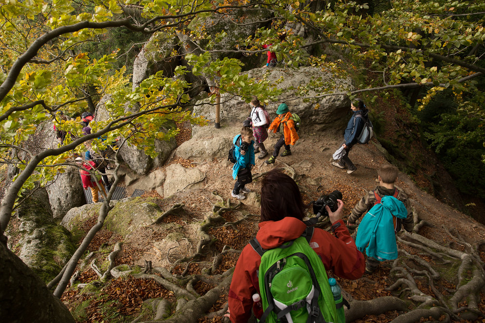 V krásnou podzimní sobotu podniklo TUFO (turistický a fotokroužek) další ze společných akcí - výpravu na Pulčínské skály. Vlakem jsme se dopravili do Lidečka a pěšky pokračovali k vytýčenému cíli. Cestou jsme se kochali, fotili, povídali si, došlo i na schovávací hru. Skály i počasí se nám ukázaly v plné své kráse, všech 22 účastníků se vrátilo domů unaveno, ale spokojeno.