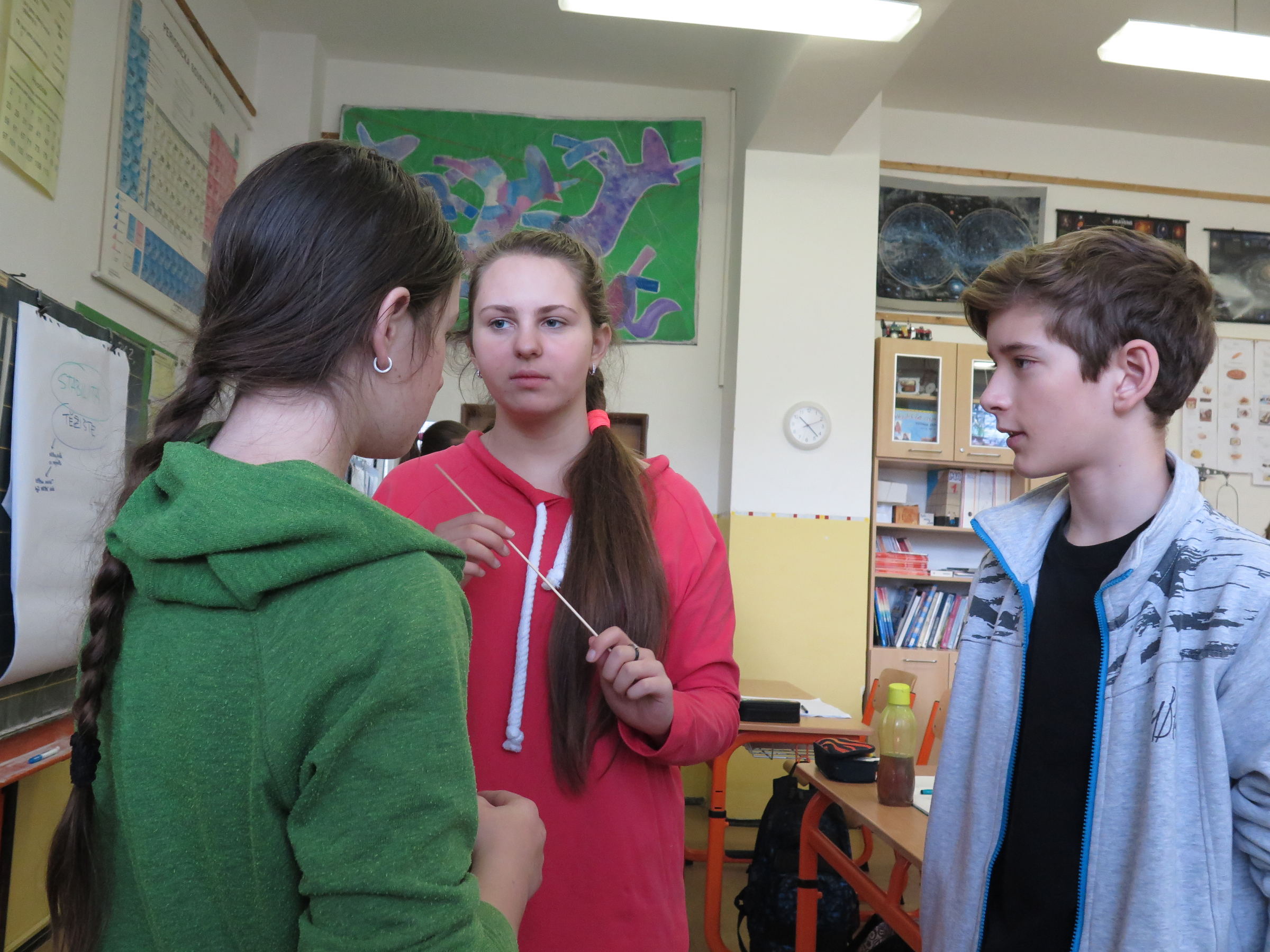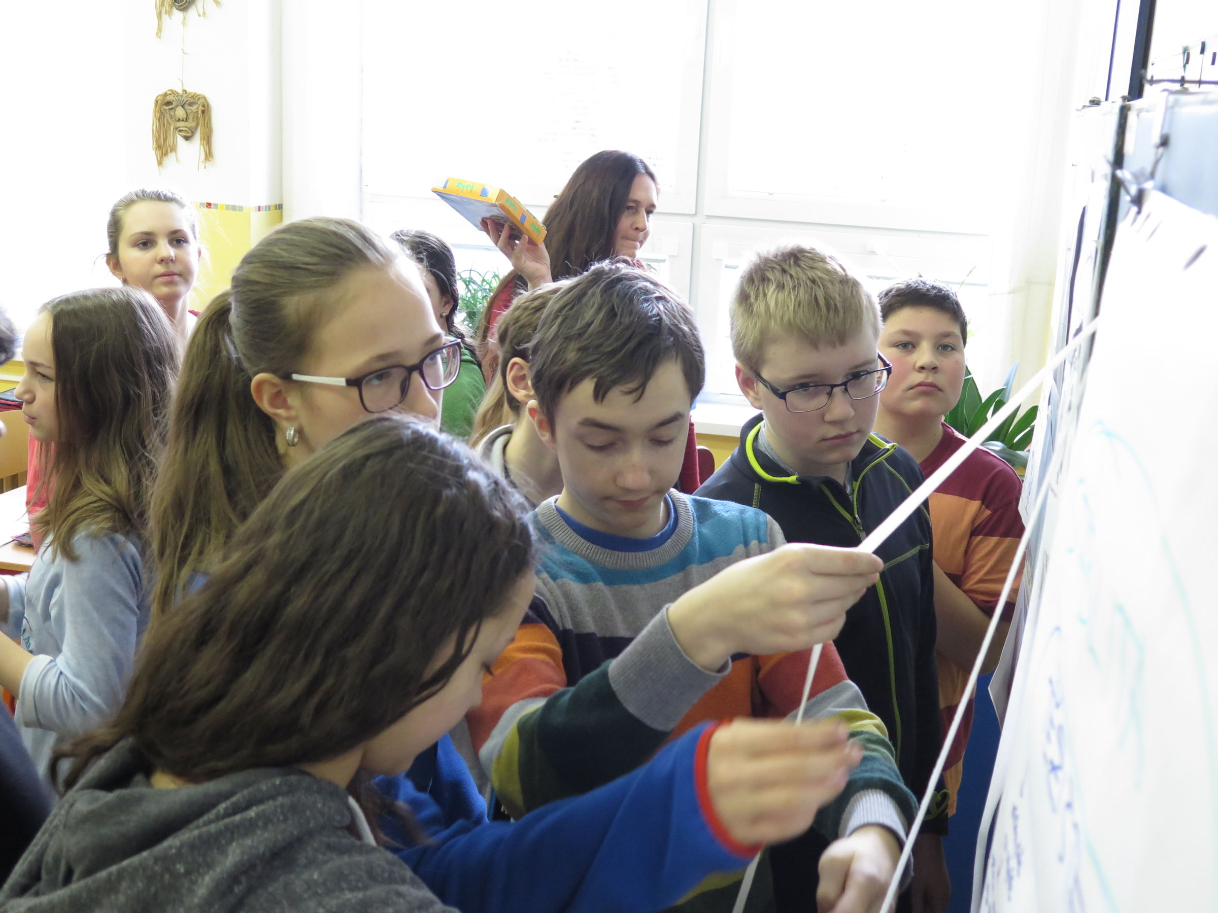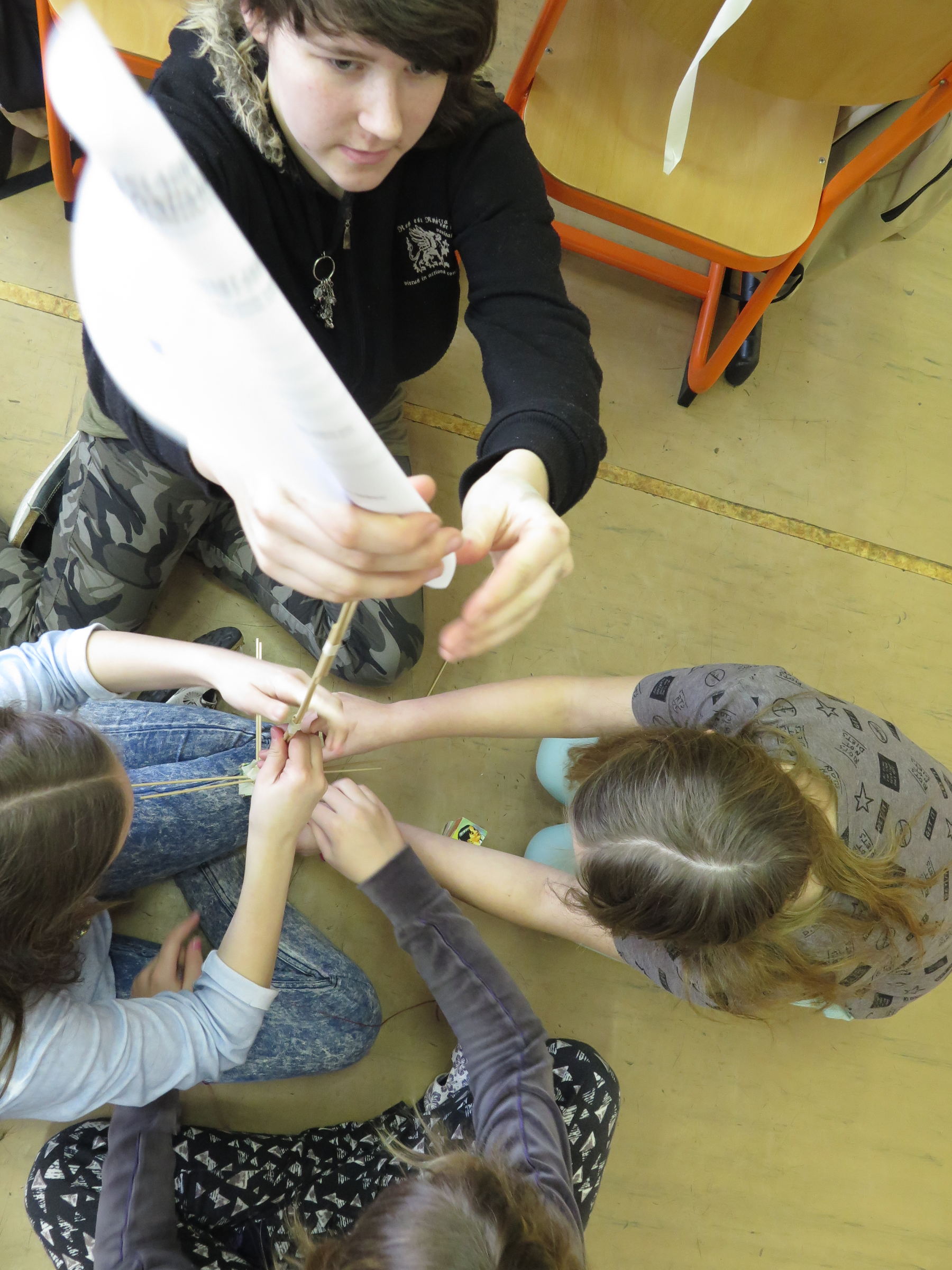 7. ročník. Uzavření tématu stabilita a těžiště před závěrečným testem proběhlo "projektem" pro skupinky žáků. Cílem bylo teoreticky navrhnout, prodiskutovat a následně postavit co nevyšší stavbu za určených podmínek. Použitý materiál: 15 špejlí, 4 dřevěné kostky, 1 list A4, 1 metr provázku a 1 metr malířské pásky. Stavba musela stát bez další opory minimálně 2 minuty. Po přeměření a předání zkušeností proběhlo i další "opravné" kolo v kratším časovém limitu.