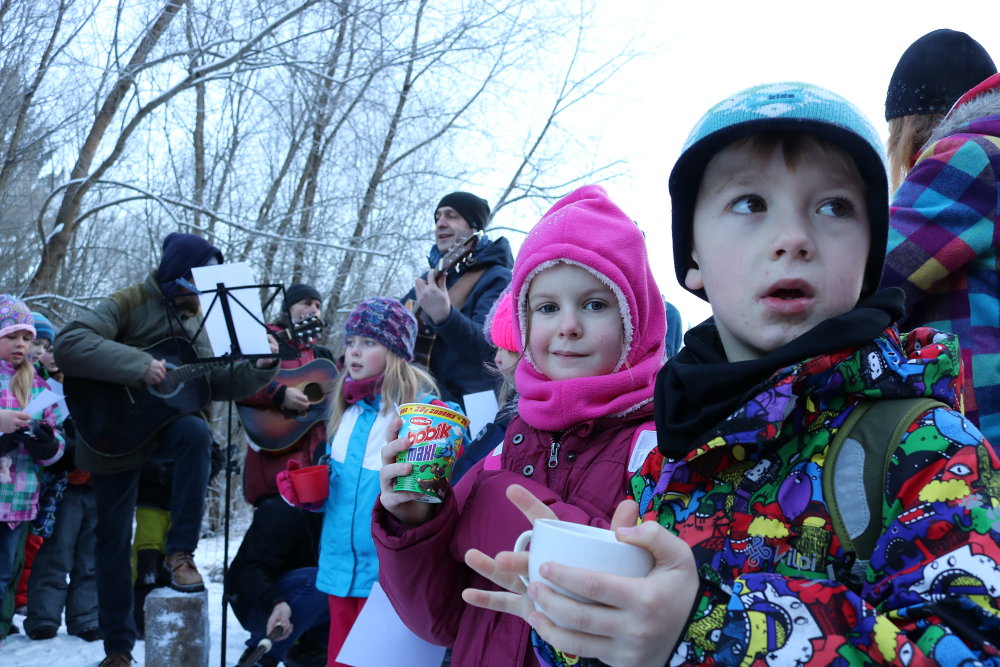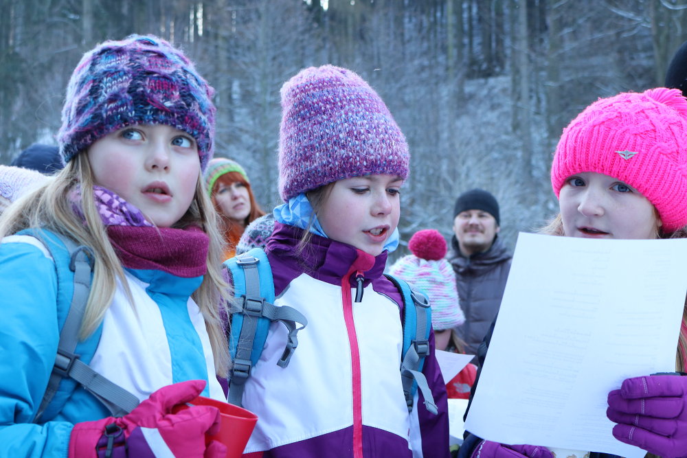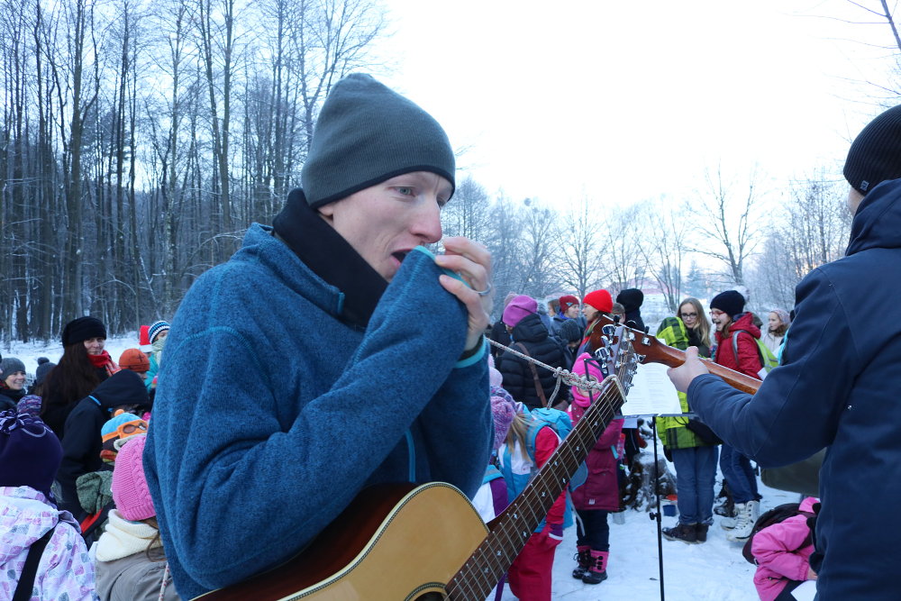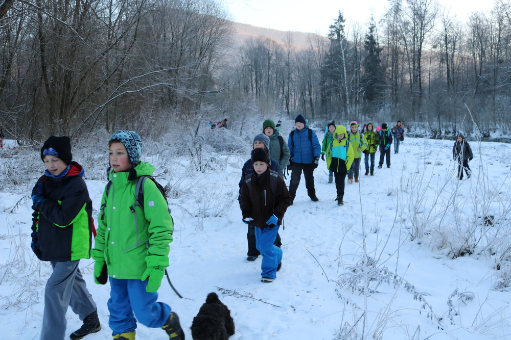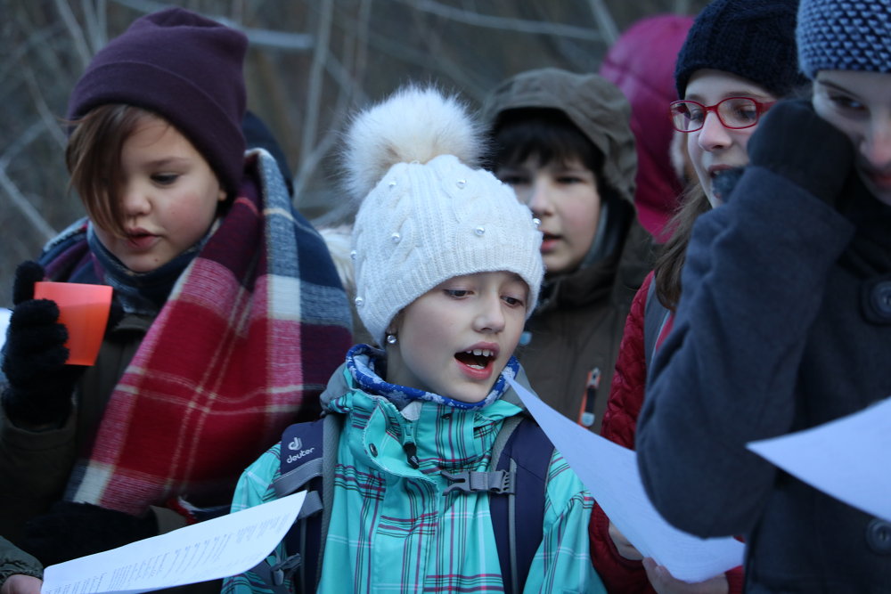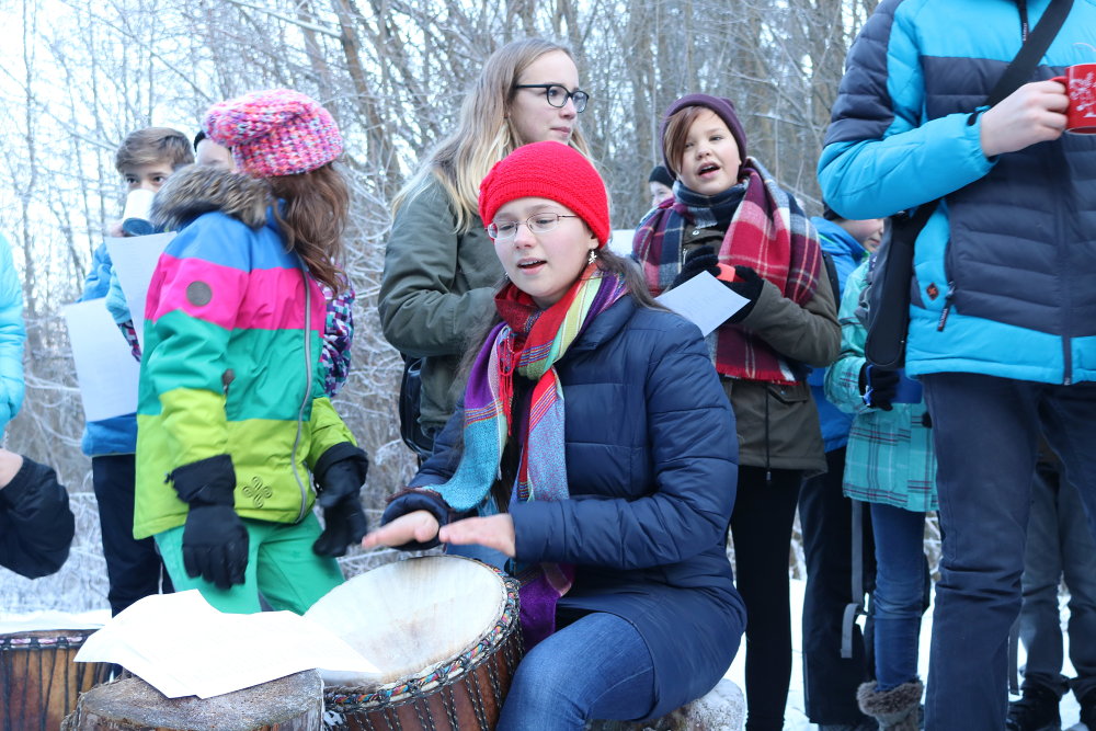 Rádi se před Vánoci potkáváme mimo školu, a proto jsme vymysleli místo na kraji Rožnova a krátkou skoro půlhodinovou procházkou jsme se vydali proti proudu Rožnovské Bečvy. Za stromy u vody na nás svítil ohníček, což bylo při teplotě -8 stupňů Celsia opravdu potřeba. Společně jsme si všichni připili novoročním punčem, který pro nás učitelé připravili a zazpívali 6 písní se závěrečnou "Když padá sníh". Doprovodili nás i někteří rodiče a bylo to příjemné. V jídelně jsme viděli děti s růžovými tvářemi. Jenom nevím, jakou barvu měly prsty našich 3 kytaristů, zima u vody byla pořádná. Hudební set byl následující: Vánoce držíme, Pásli ovce Valaši, Mary had a baby, Z jedné strany chvojka, Feliz Navidad, Když padá sníh.