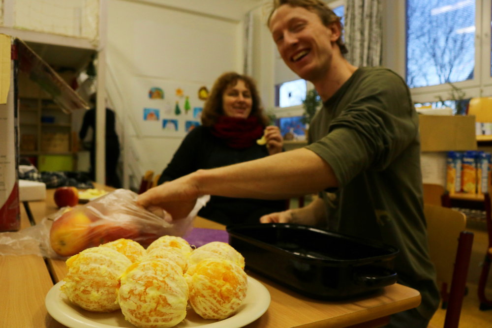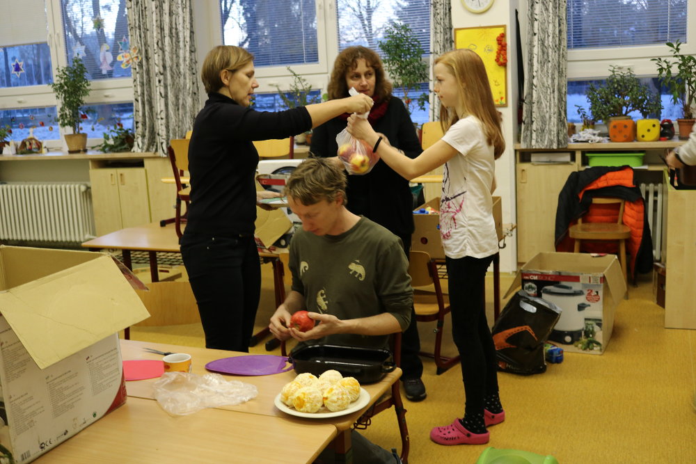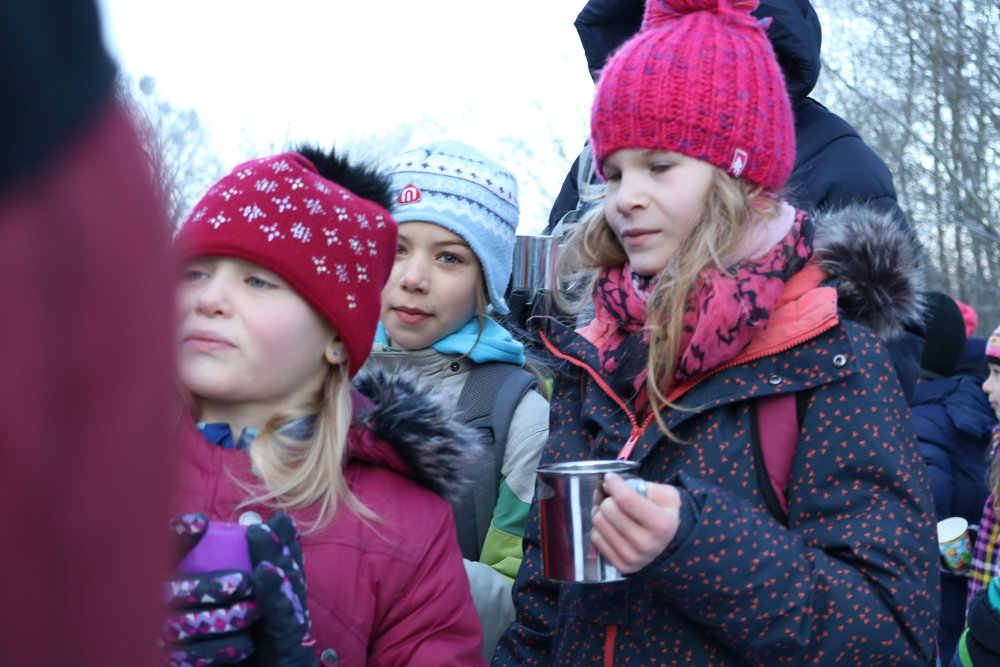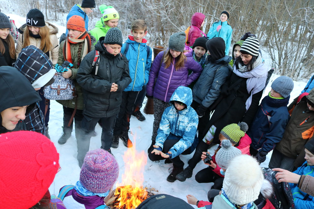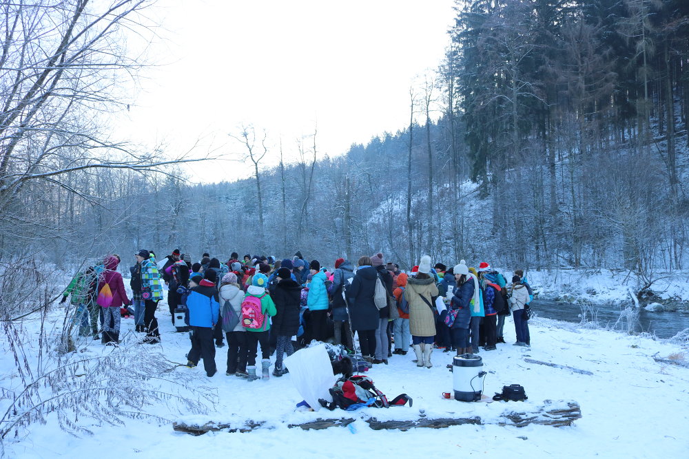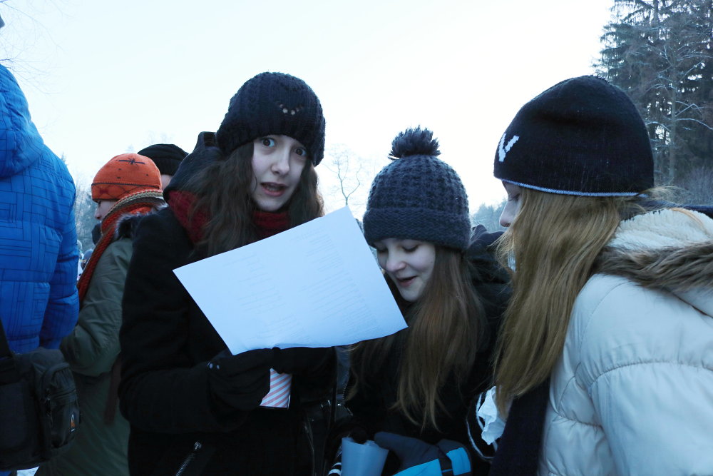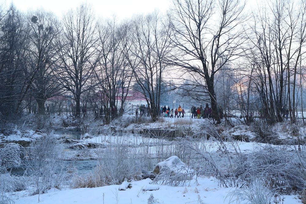 Rádi se před Vánoci potkáváme mimo školu, a proto jsme vymysleli místo na kraji Rožnova a krátkou skoro půlhodinovou procházkou jsme se vydali proti proudu Rožnovské Bečvy. Za stromy u vody na nás svítil ohníček, což bylo při teplotě -8 stupňů Celsia opravdu potřeba. Společně jsme si všichni připili novoročním punčem, který pro nás učitelé připravili a zazpívali 6 písní se závěrečnou "Když padá sníh". Doprovodili nás i někteří rodiče a bylo to příjemné. V jídelně jsme viděli děti s růžovými tvářemi. Jenom nevím, jakou barvu měly prsty našich 3 kytaristů, zima u vody byla pořádná. Hudební set byl následující: Vánoce držíme, Pásli ovce Valaši, Mary had a baby, Z jedné strany chvojka, Feliz Navidad, Když padá sníh.