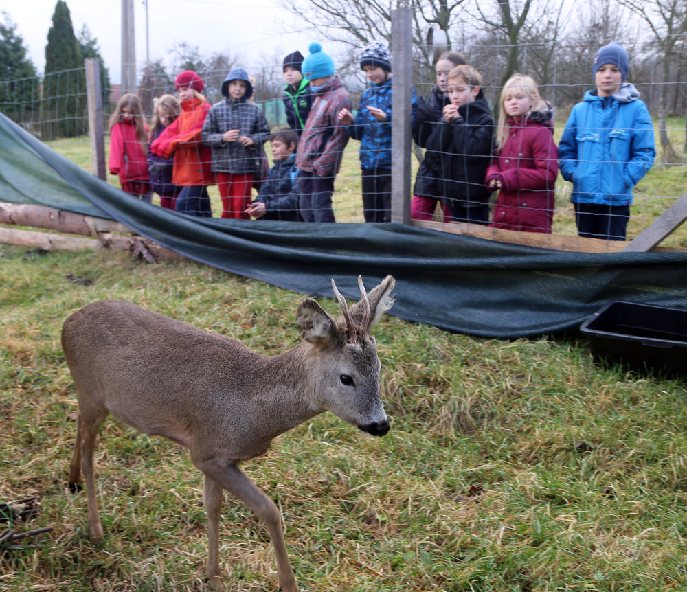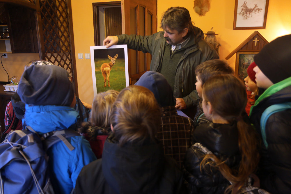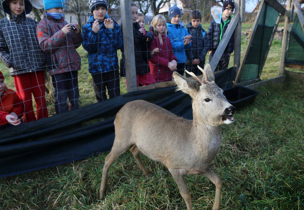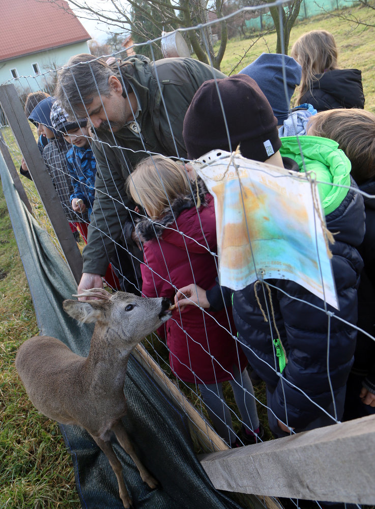 Třetáci si vyšlápli do Tylovic navštívit Lojzu. Nejednalo se o spolužáka, ale o srnce, kterého chovají Městské lesy. Pan hajný nám o něm a o srncích vůbec pověděl spoustu zajímavostí, ukázal druhy paroží, naučil nás pojmenovat části jejich těla - třeba běhy, slechy, světla, větrník, zrcátko, ... Pak už jsme vyrazili za Lojzou do výběhu. Pohladili jsme jej, nakrmili, a když jsme se dosyta vynadívali, vrátili jsme se do školy.