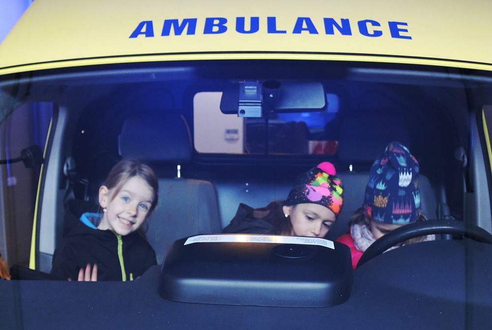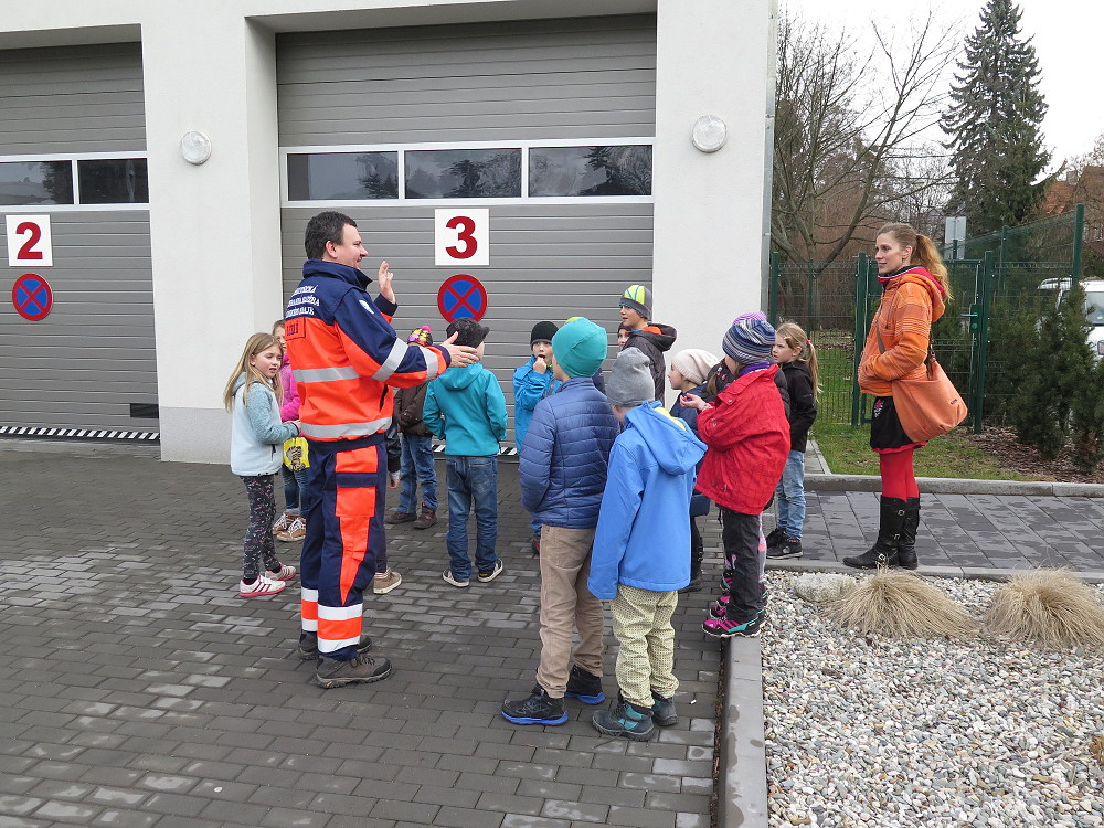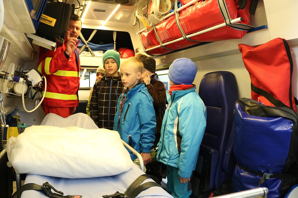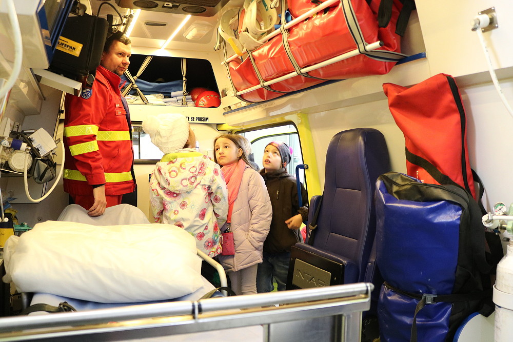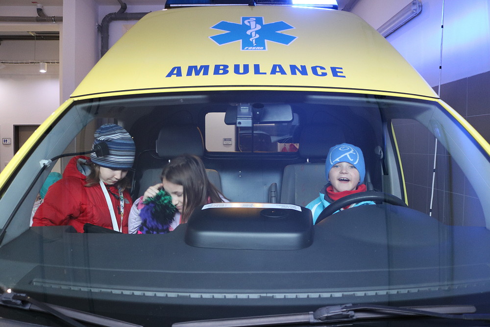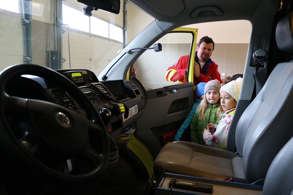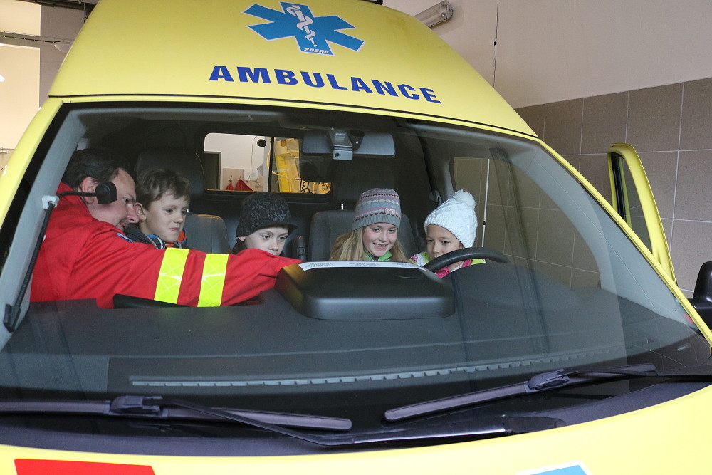 18. dubna jsme šli už podruhé navštívit taťku od Cyrilka, který je pan doktor na záchranné službě. Poprvé nám to nevyšlo, protože odjely všechny sanitky k pacientům. Teď to konečně klaplo a my jsme měli možnost se dovědět, jak to chodí, když se zavolá 155. Pan Janík nám všechno vysvětlil, ukázal nám sanitku, jak je dokonale vybavená a k čemu všechno slouží. Mohli jsme si sednout i na místo řidiče, kde jsme si pustili modrá výstražná světla, chtěli jsme i zahoukat, ale to by byl velký rachot Viděli jsme vysílačky, mohli jsme si sednout i na speciální vozík, který umí jezdit po schodech. Jedna sanitka zrovna vyjížděla někomu na pomoc. Bylo to opravdu zajímavé. (2. třída)