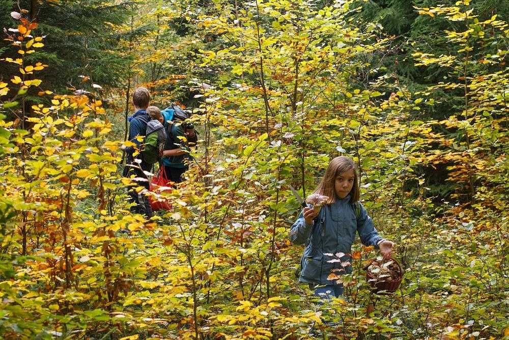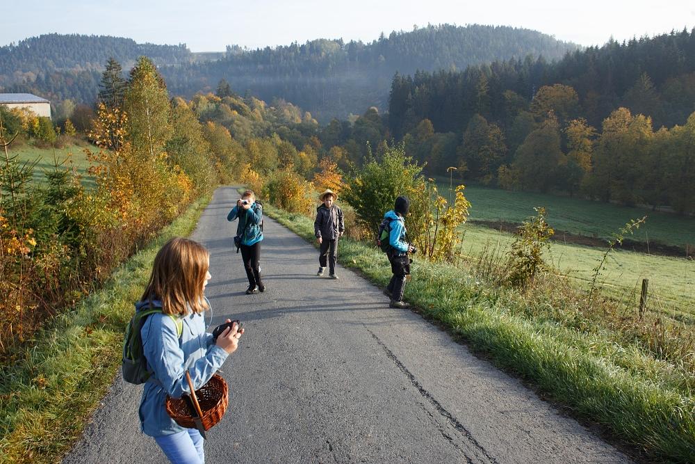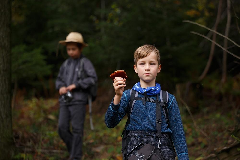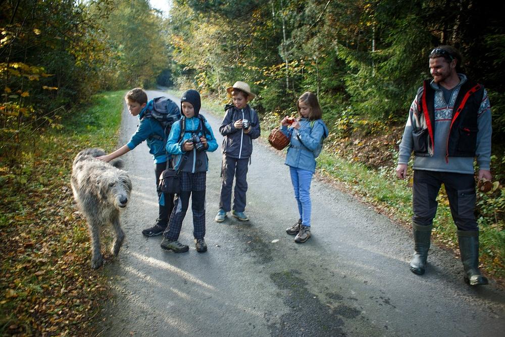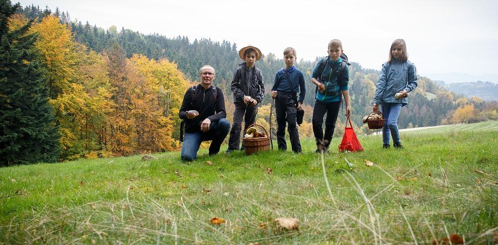 Nezastavilo nás ani několik potoků a strží, dokud jsme nenaplnili košíky a tašky. Jen velmi mimořádně se děti daly vyrušit výzvou k fotografování, ale nevadí, ony ty hřiby taky neporostou věčně.