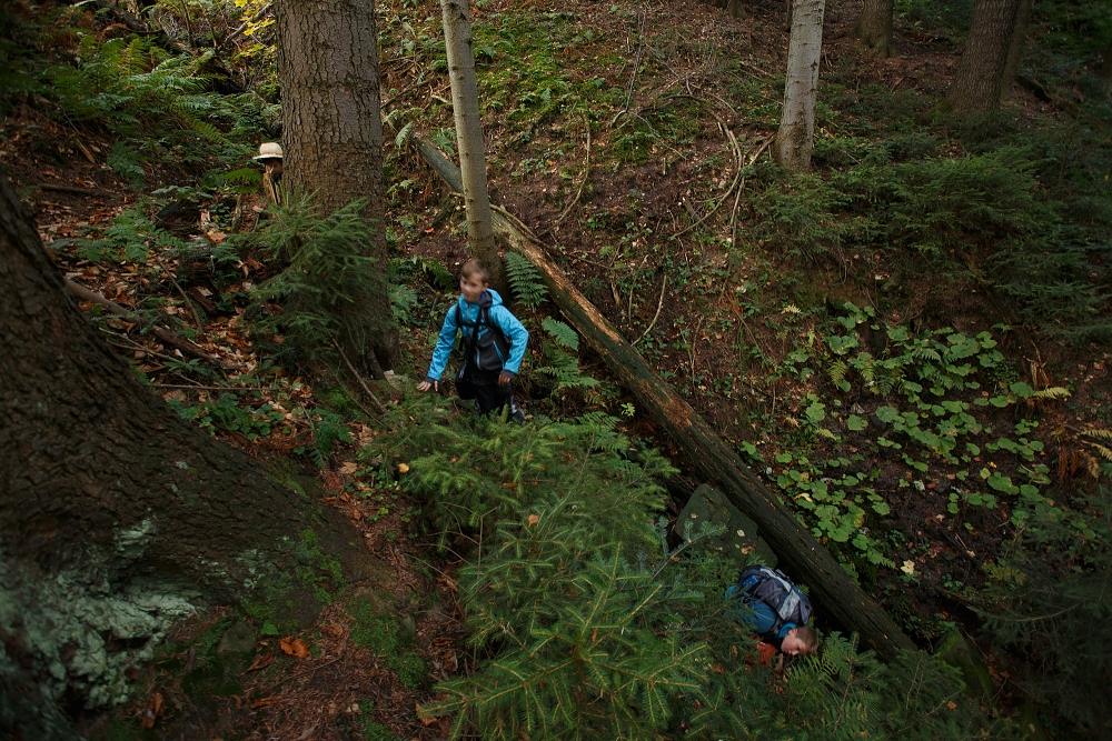 Jaké bylo mé překvapení, když se děti ještě před hřebenem Santova rozutekly mezi stromy a jako ohaři začaly velmi zkušeně prohledávat křoviny, mlází a trávu po okrajích lesa.