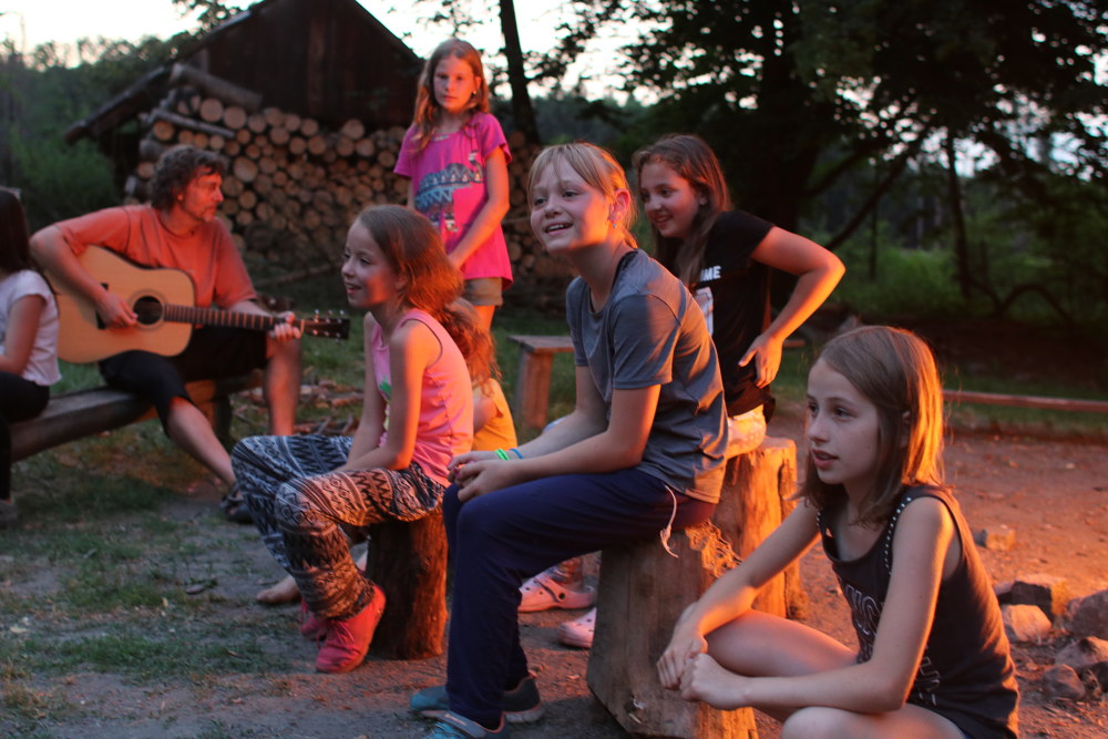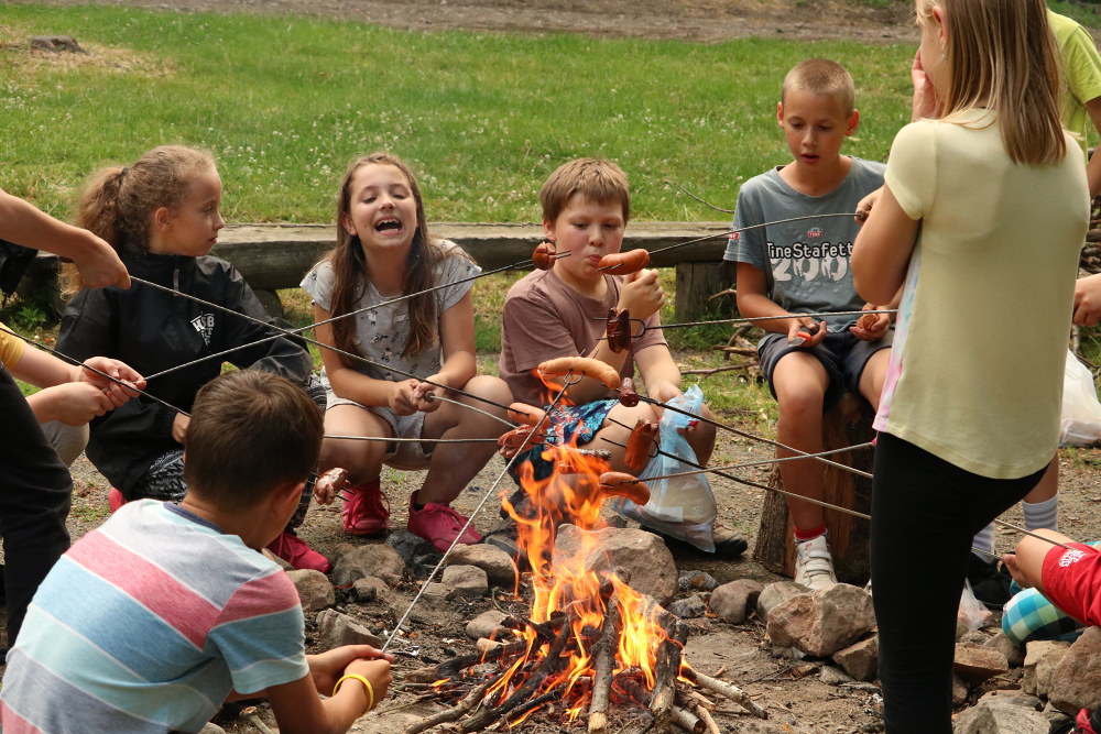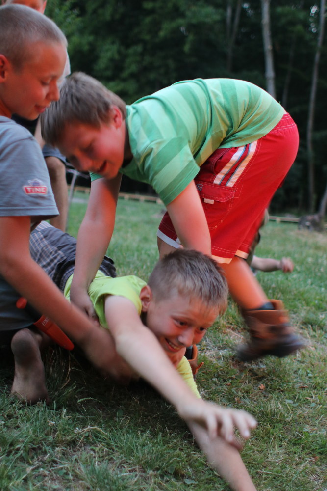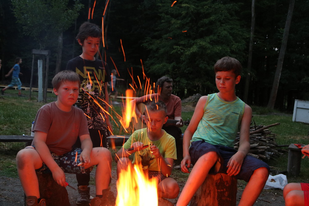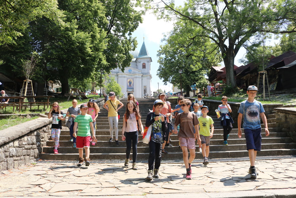 Před závěrem školního roku jsme se vydali jižně od Rožnova do krásných Hostýnských vrchů. Využili jsme táborové základny kousek od Svatého Hostýna, který byl také našim hlavním cílem. Jeho návštěva a turistika zpět proběhla v rytmu rozličných her. Velmi zajímavá byla komentovaná prohlídka křížové cesty. Někteří spolužáci znali biblický příběh opravdu dokonale a měli pozorné posluchače. Když jsme se namlsali, čekala nás cesta poli a lesy, které jsou dost zdevastované kůrovcovou těžbou. U chalupy jsme si užili fotbalu, vyřezávání ze dřeva, ohně a písniček i veselé rozcvičky - jak jinak s panem učitelem Jirkou Krajčou. :) Ale to nás ještě jeden velký zážitek čekal. Všichni jsme si vyrobili přístřešek pro nouzové přespání v přírodě a v noci se dělili o spacák s broučky a pavouky. Zvládli jsme to a někteří se museli nechat vzbudit kytarovým budíčkem. Sami jsme si vařili a po sobě i uklidili, ale to se tak nějak na takovém výletě rozumí samo sebou. Dokumentaci a technickou podporu dělal Jarda Polášek. Bezva akce!