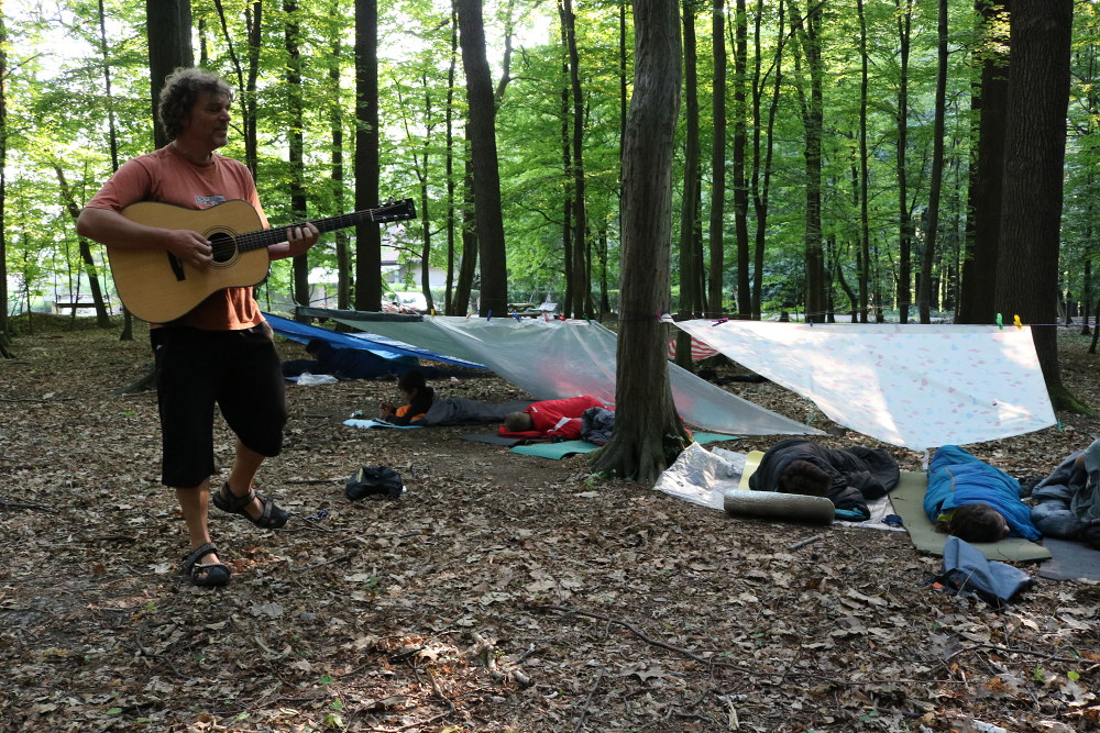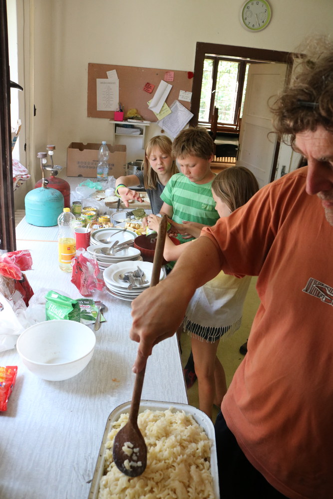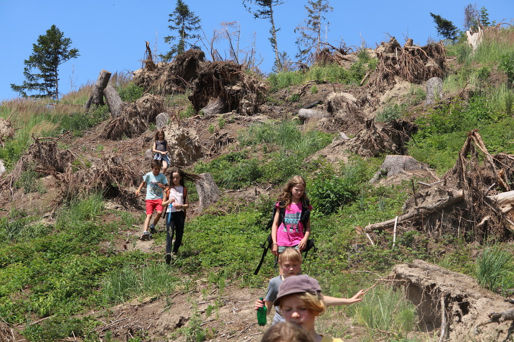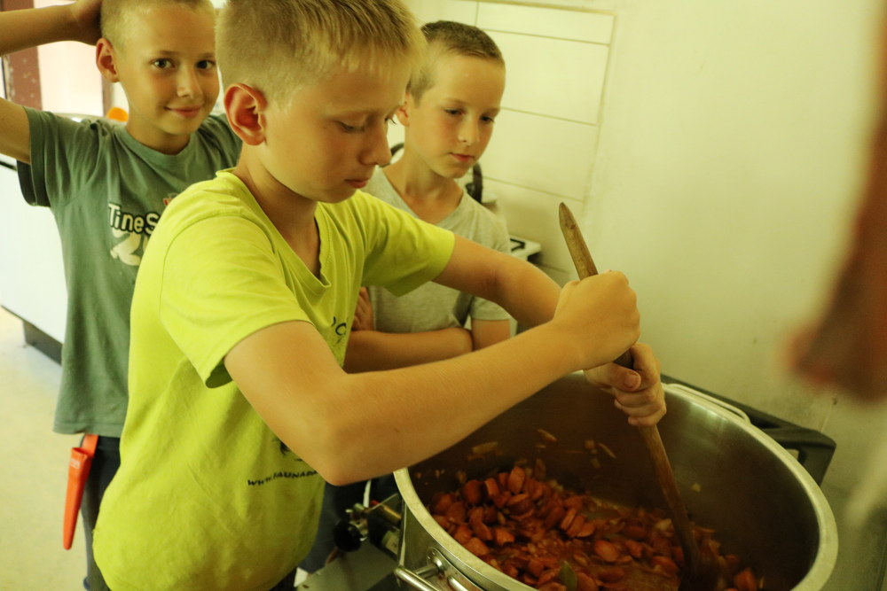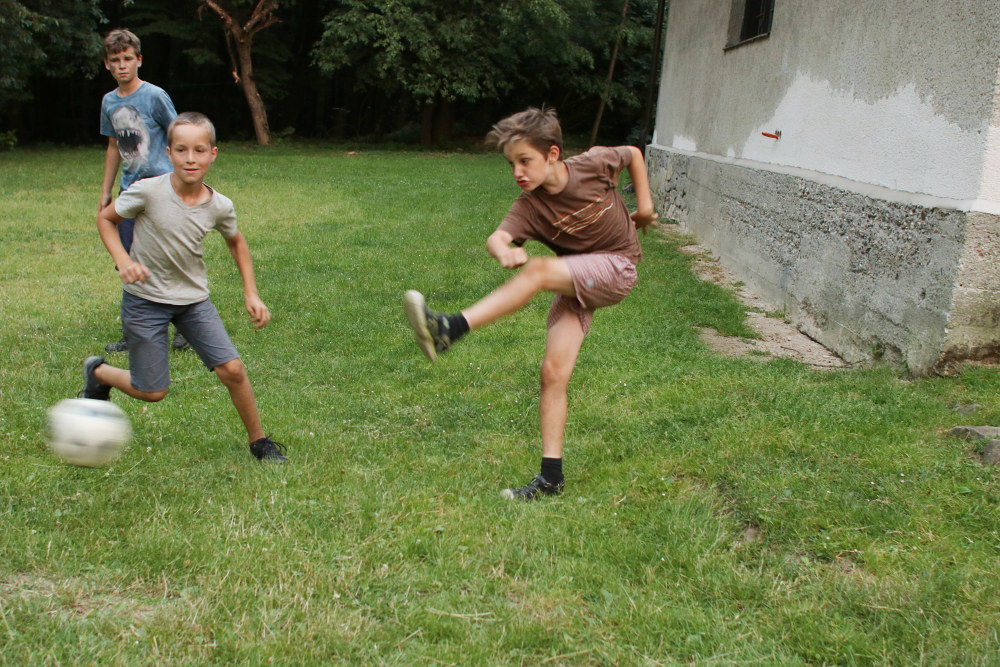 Před závěrem školního roku jsme se vydali jižně od Rožnova do krásných Hostýnských vrchů. Využili jsme táborové základny kousek od Svatého Hostýna, který byl také našim hlavním cílem. Jeho návštěva a turistika zpět proběhla v rytmu rozličných her. Velmi zajímavá byla komentovaná prohlídka křížové cesty. Někteří spolužáci znali biblický příběh opravdu dokonale a měli pozorné posluchače. Když jsme se namlsali, čekala nás cesta poli a lesy, které jsou dost zdevastované kůrovcovou těžbou. U chalupy jsme si užili fotbalu, vyřezávání ze dřeva, ohně a písniček i veselé rozcvičky - jak jinak s panem učitelem Jirkou Krajčou. :) Ale to nás ještě jeden velký zážitek čekal. Všichni jsme si vyrobili přístřešek pro nouzové přespání v přírodě a v noci se dělili o spacák s broučky a pavouky. Zvládli jsme to a někteří se museli nechat vzbudit kytarovým budíčkem. Sami jsme si vařili a po sobě i uklidili, ale to se tak nějak na takovém výletě rozumí samo sebou. Dokumentaci a technickou podporu dělal Jarda Polášek. Bezva akce!