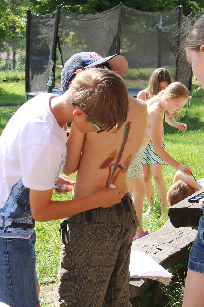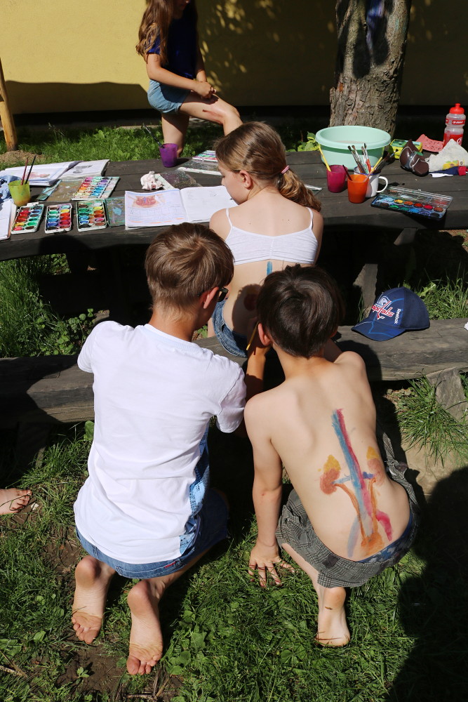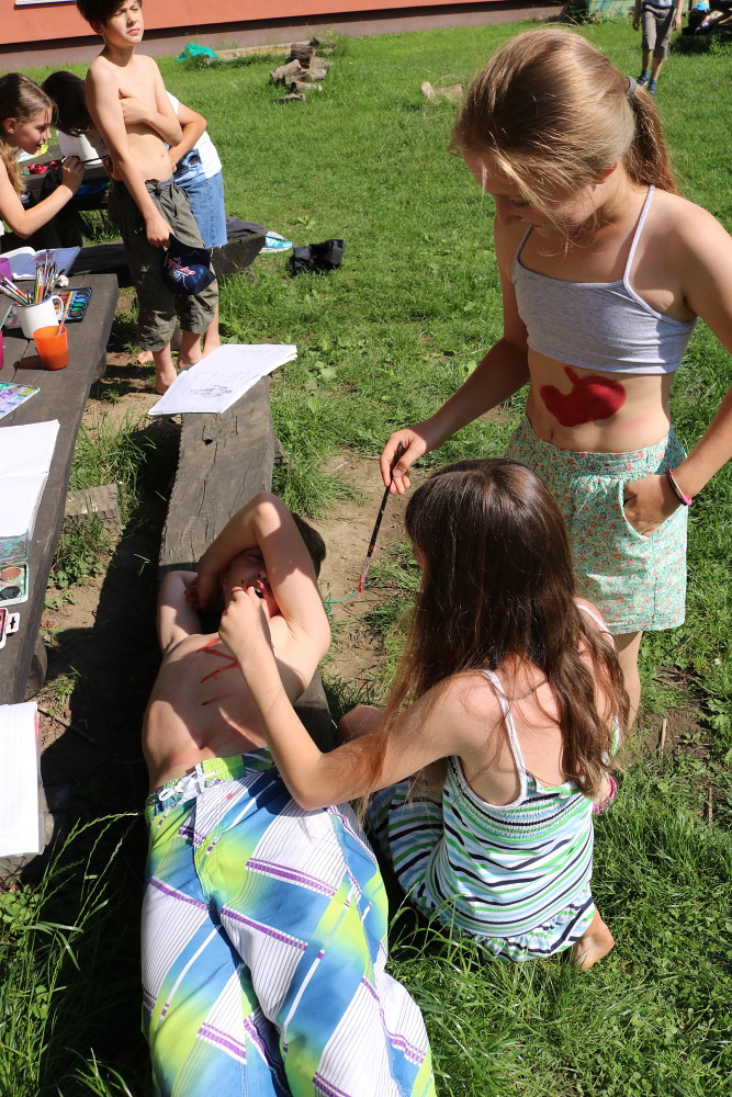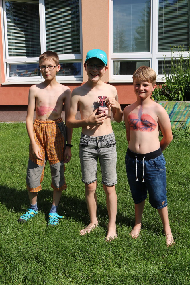 5. třída vyrazila pod kaštany vyzbrojena vodovými barvami a štětci. Na vlastní kůži umístili 6 orgánů lidského těla. Užili jsme si to.