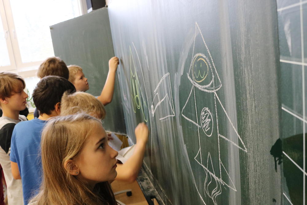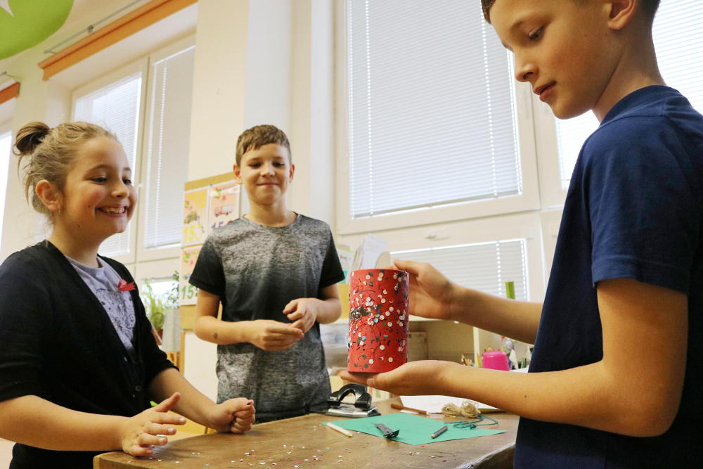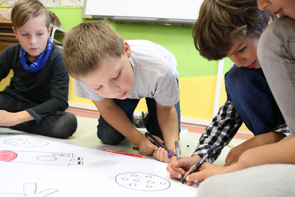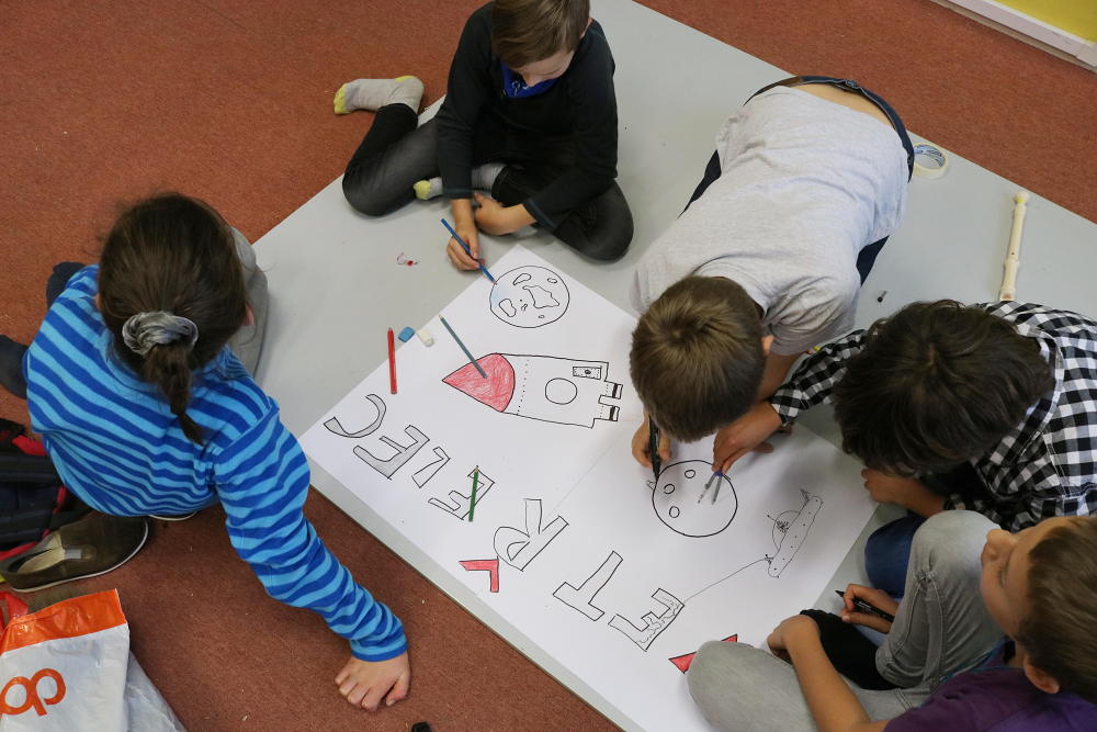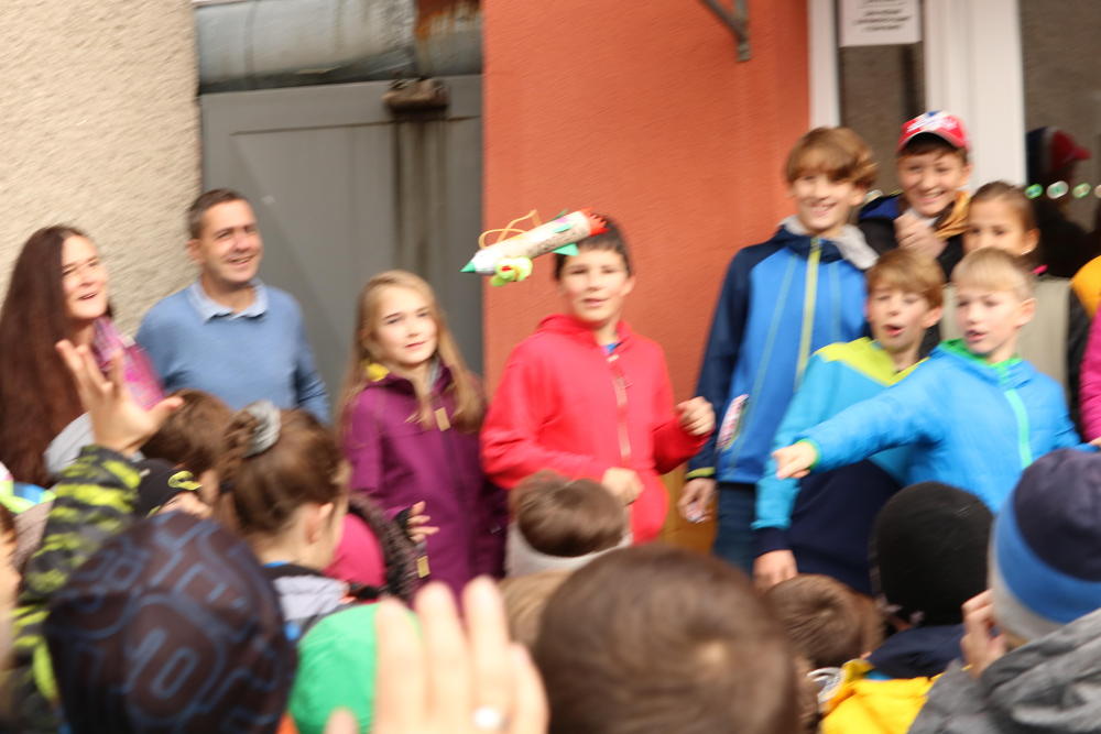 Po představení jsme se rozloučili s publikem z řad maminek, tatínků, dědečků a babiček.Nás ostatní čekala druhá část programu slavnostního dne. V ní dostala každá třída za úkol sestrojit podle návodu své vlastní kosmické plavidlo a vyslat