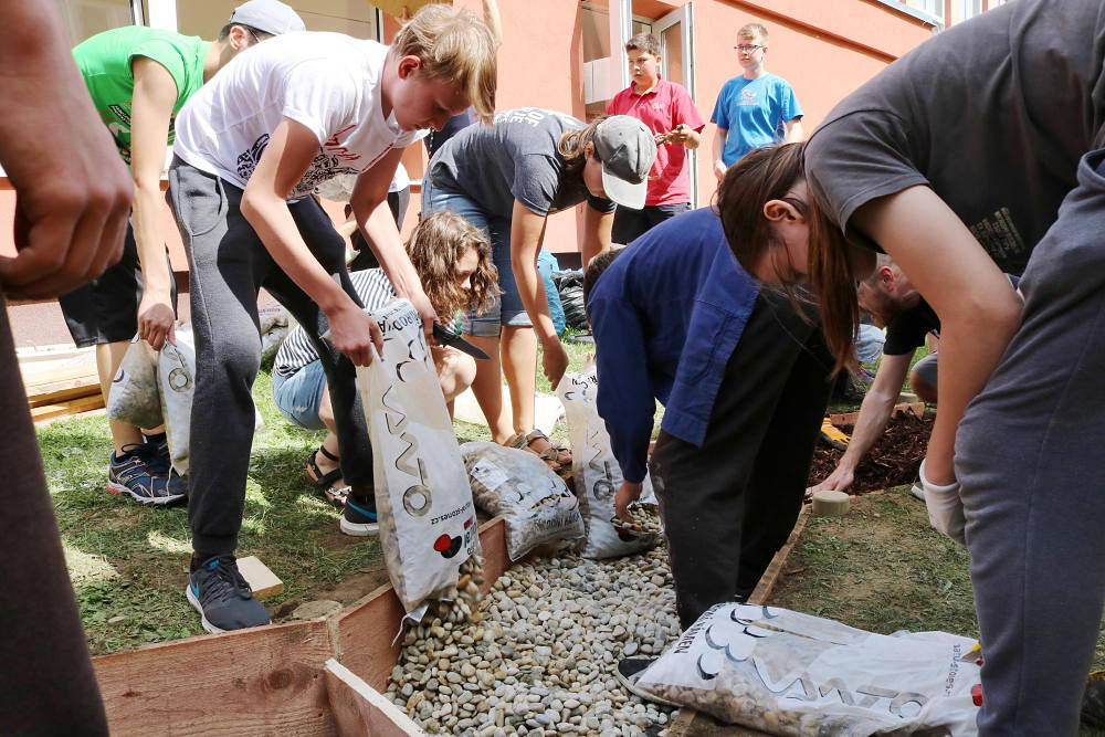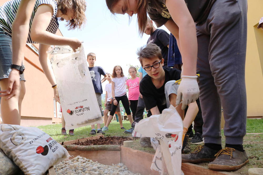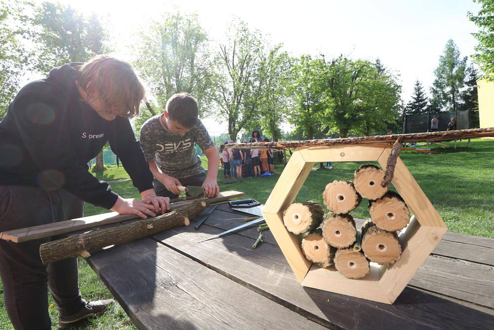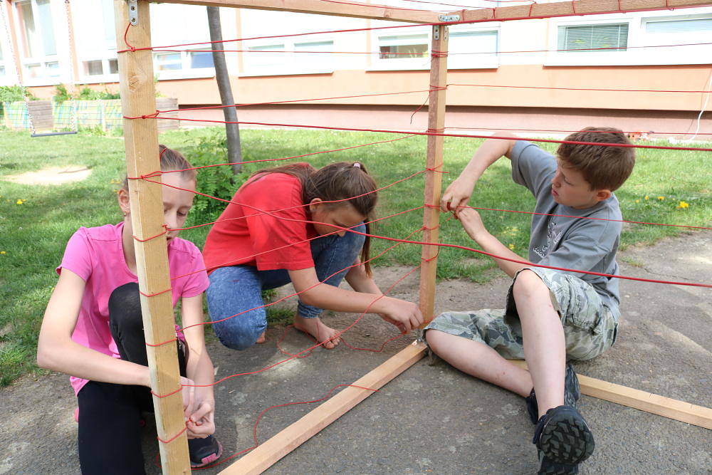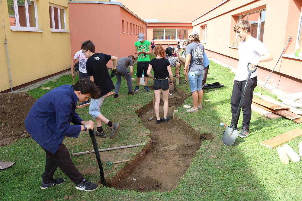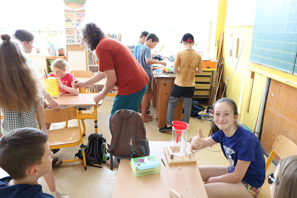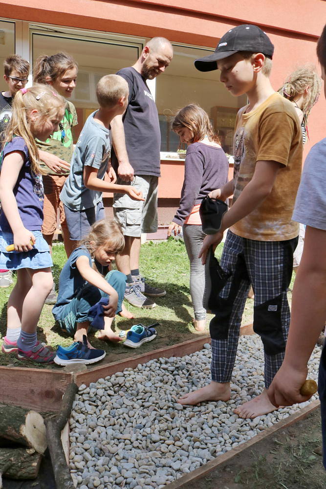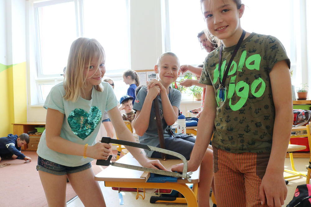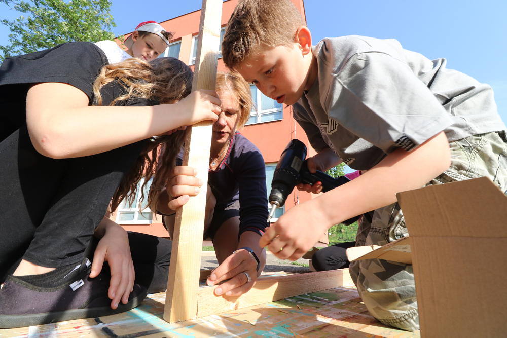 Tento nápad uzrál v hlavách našich pedagogů, a jeho účelem bylo aktivně zapojit celou školu do tvorby a vlastníma rukama vytvořit pomůcku či zkrášlit školu. A tak vznikaly: hmyzí domečky, model jednoho metru kubického, meteorologická stanice se spoustou přístrojů, dřevěné destičky pro počítání. První až třetí třída poznávala, jak to vypadá ve včelím domečku, osmáci vytvořili model krevního oběhu a kostry člověka z přírodnin a deváťáci nám umožní zažít si reflexní terapii prostřednictvím "bosonohého" chodníčku. Virtuálně se můžeme projít také po číselné ose, zahrát si "šutrpiškvorky" a další užitečné nebo prostě jen zábavné aktivity. Těmito činnostmi jsme se opravdu bavili, a věříme, že některé z vytvořených objektů a pomůcek nám ne Sedmikrásce budou dlouho a dobře sloužit. A nakonec i přesto, že se ve velkém řezalo, kopalo, vrtalo i bouchalo, jsme se vyhnuli úrazům a odřeninám a odcházeli jsme spokojeně domů. Vlastně jsme ten Svátek práce oslavili docela solidní prací.
