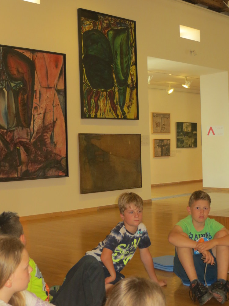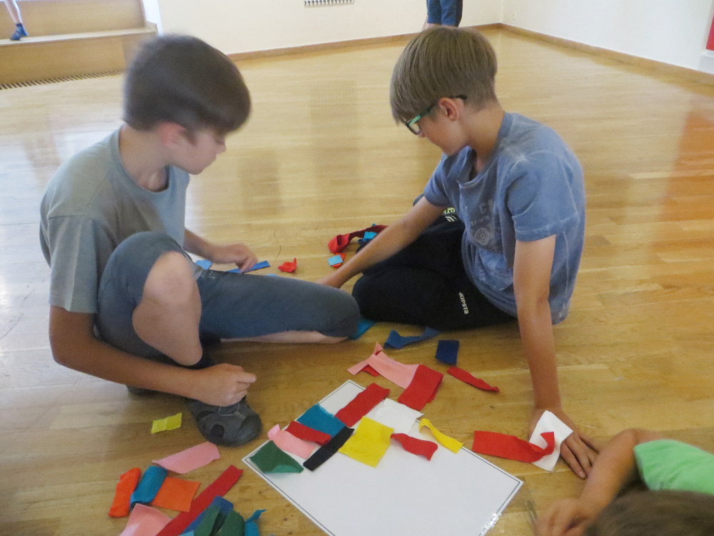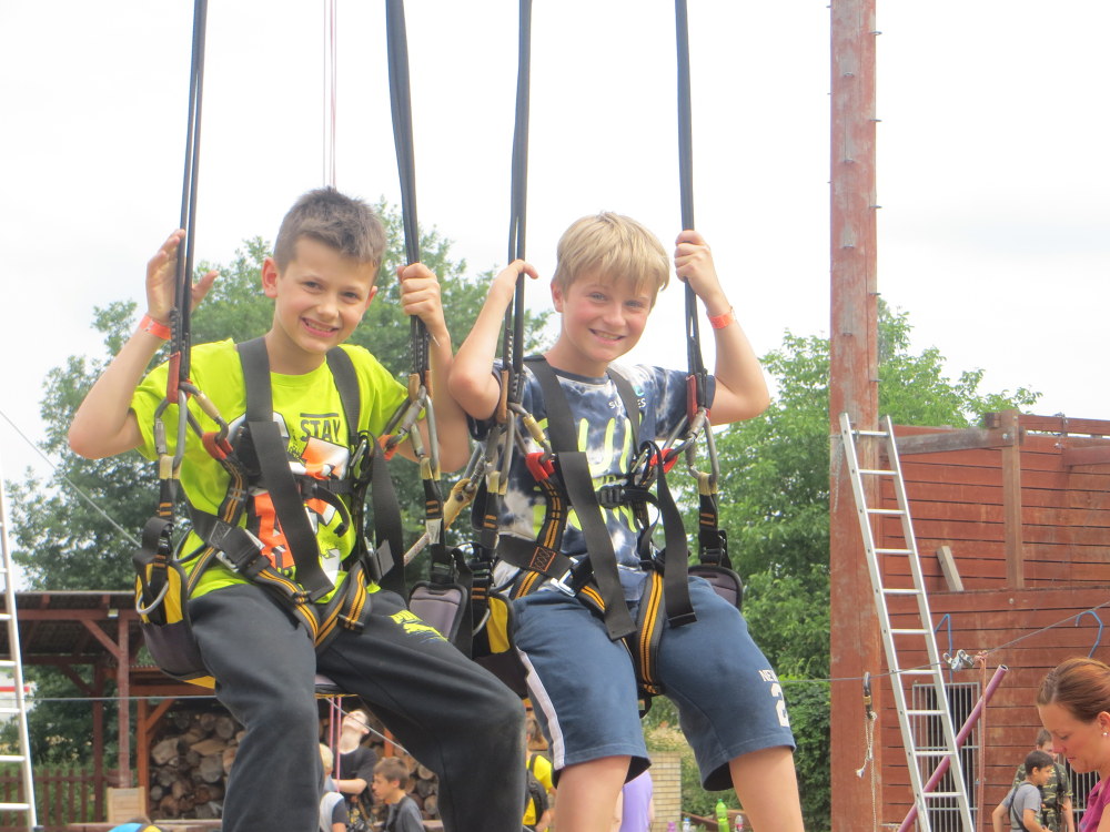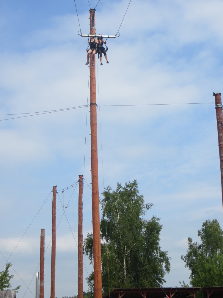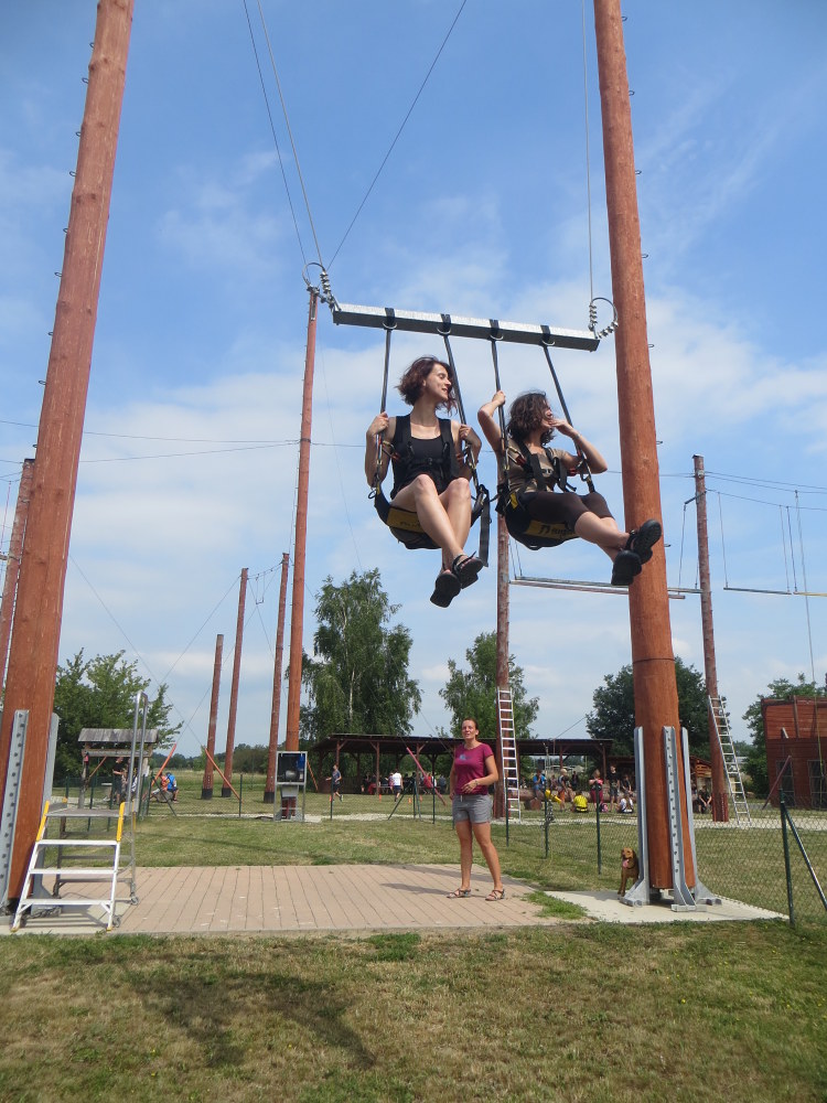 V 6:20 ráno jsme se všichni sešli na vlakovém nádraží a v 6:40 jsme odjeli do Olomouce. Když jsme si dostatečně užili jízdy na eskalátorech na olomouckém nádraží, tak jsme se přemístili do galerie. Tam jsme měli zamluvený program o abstrakci polských umělců. Vyzkoušeli jsme si seskládat barevný kruh, seřadili malby od nejreálnějších po abstraktní, povídali jsme si o vystavených obrazech z neobvyklých materiálů např. kosti, silon, kůže ... Taky jsme si zahráli hru inspirovanou dílem umělce Ryszarda Winiarskiho s hracím plánem a kostkami. Po skončení programu jsme měli rozchod na náměstí, abychom si dokoupili jídlo a ne/potřebné věci. Poté jsme se přemístili parkem a přes hřiště k Pevnosti poznání, kde jsme si mohli projít čtyři stanoviště, na každém bylo jiné téma. První stanoviště bylo historické, vyzkoušeli jsme si oblečení, které nosili ve válce a podívali se na různé zbraně. Druhé stanoviště bylo převážně o vědeckých pokusech, vyzkoušeli jsme si například, jak funguje kyvadlo. Třetí bylo přírodovědné, kde jsme měli možnost prohlédnout si křídla motýla a jiné přírodniny pod mikroskopem. Ve čtvrtém byl vesmír, 3D film a malování světlem. Potom jsme se přesunuli do kempu, vyzvedli si věci a postavili stany. Zaskákali jsme si na nafukovací trampolíně a zahráli si hru - vlajky. Opékali si dobroty a pěkně napapaní šli do stanu a tam si dlouho povídali, až jsme únavou usnuli. Ráno jsme se probudili a dali si výbornou snídani plnou buchet od maminek. Zabalili stany a vyrazili do lanového centra. Když jsme tam celí utrmácení dorazili, tak jsme zjistili, že naše rezervace v počítači chybí. Nabídli nám tedy náhradní program, nízké lanové překážky a dětské hřiště se zajímavými hracími prvky. Jako bonus jsme se zhoupli na tandemové houpačce. Po dvou jsme se usadili do sedaček a vytáhlo nás to do šestnácti metrů, poté následoval nečekaný pád dolů. Všichni navzájem jsme se bavili groteskními a trochu strnulými výrazy našich kamarádů. Domů jsme se vraceli plni zážitků. Kluci a holky z páté třídy.
