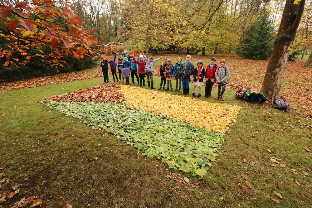 Žáci školy s pedagogy po podzimní slavnosti vyrazili do parku a využili krásného podzimního počasí. Na počest vzniku Československa jsme vytvořili celou přehlídku státních symbolů. Barvy naší státní vlajky jsme úplně nedodrželi, modré listy nebyly k nalezení, ale i tak to byla vydařená akce a vyvětrat se v takový hezký podzimní den všem prospělo. Hezké dny přeje Sedmikráska.