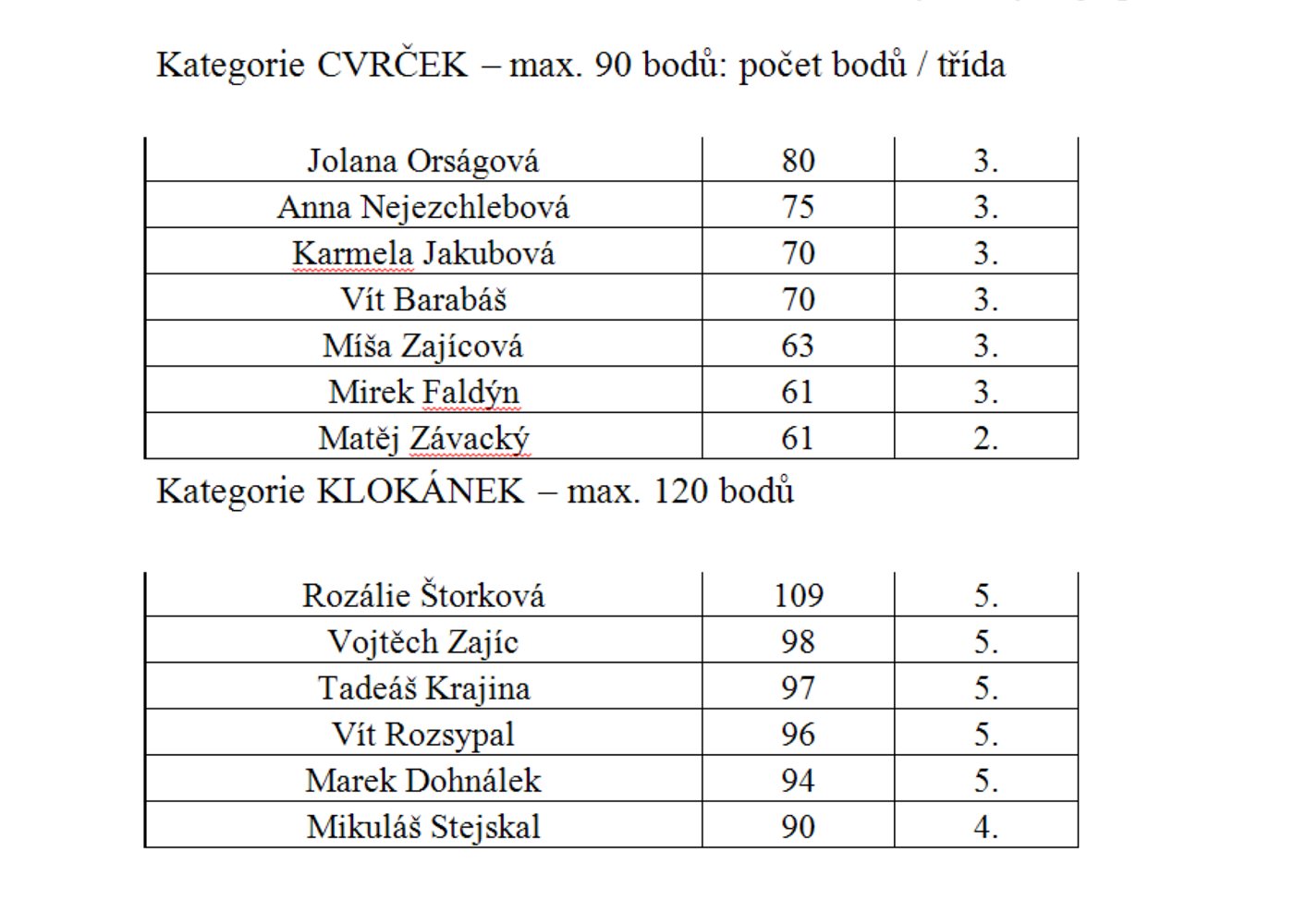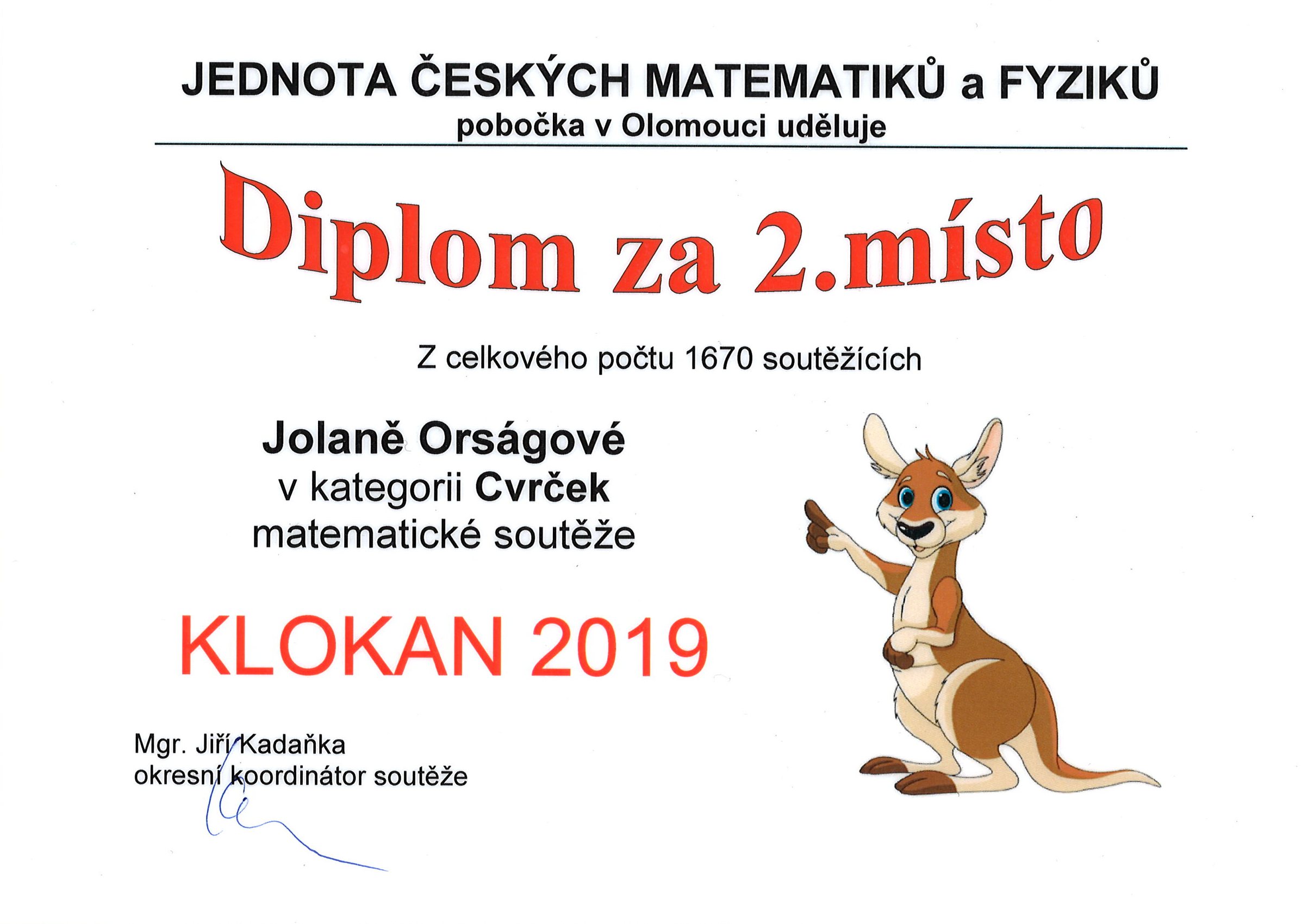 Mezinárodně koordinovaná soutěž Matematický klokan byla vytvořena podle obdobné soutěže, která byla v osmdesátých letech minulého století pořádána v Austrálii. Od roku 1991, kdy se konal první ročník ve Francii, se rozšířila do zemí Evropy a postupně i na další kontinenty. V roce 2016 se již této soutěže účastnilo přes 6 milionů soutěžících z více než 60 zemí celého světa sdružených v asociaci Kangourou sans frontieres, jejíž koordinační centrum je v Paříži. Ve všech kategoriích soutěžící řeší soubor testových úloh ve stanoveném čase, přičemž vybírá jednu z pěti nabízených možností řešení. Úlohy jsou seřazeny ve třech skupinách podle obtížnosti, za správnou odpověď získává soutěžící 3, 4 nebo 5 bodů, za špatnou odpověď se mu jeden bod strhává. Aby soutěžící nedosahovali záporných výsledků, dostávají do vínku takový počet bodů, kolik je v kategorii úloh. V olomouckém centru se vyhodnocují statistické výsledky za celou Českou republiku, nejlepší řešitelé v každé kategorii jsou odměněni věcnou cenou. Matematická soutěž KLOKAN u nás ve škole - výsledky nejlepších žáků v jednotlivých kategoriích: