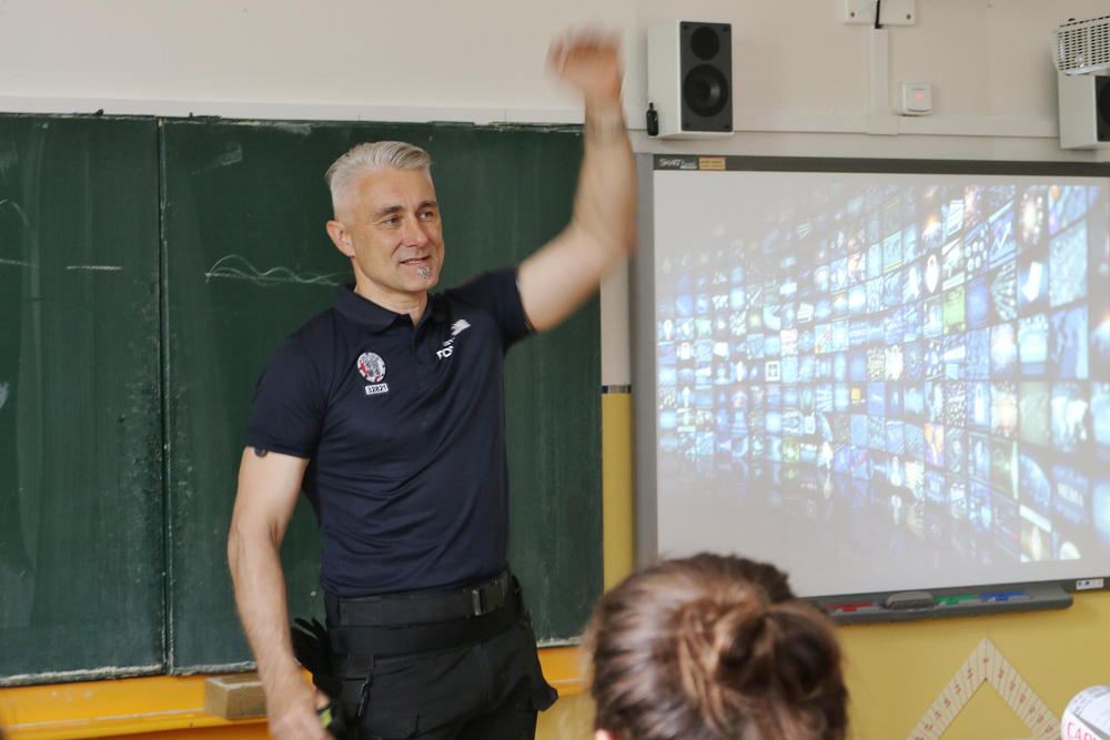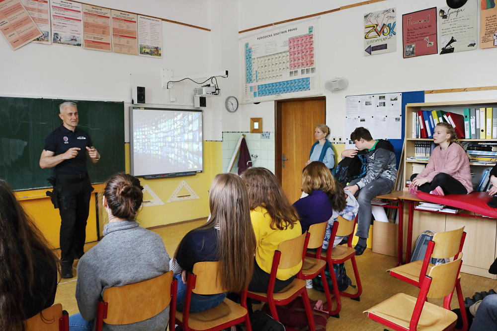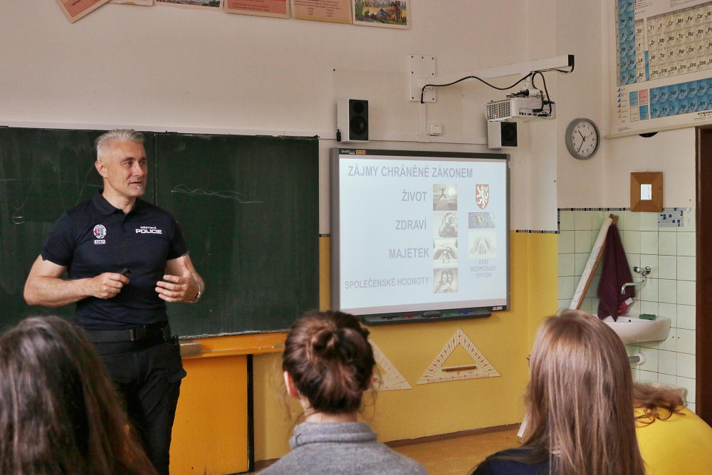 O smyslu zákonů, soudů a trestů, o rozdílu mezi přestupkem a trestným činem a hlavně o vlastní odpovědnosti přišel naše "mladistvé" informovat a odpovídat na jejich dotazy ředitel městské policie pan Aleš Pilař.