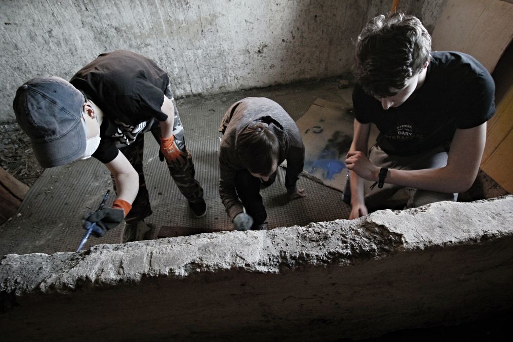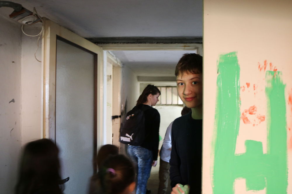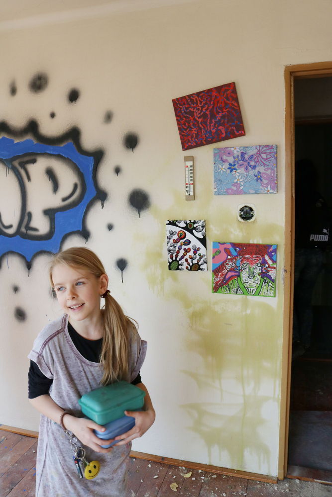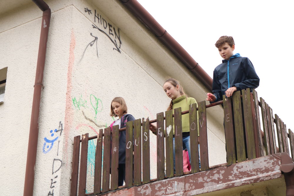 Naši starší žáci dostali k dispozici nevšední místo, dům k demolici. Prostor, kde se mohli výtvarně vyjádřit i vyřádit. S chutí, prožitkem, spolu s kamarády dali prostor své kreativitě a emočnímu vybití. Vznikla neobvyklá výstava, kterou dokumentují slova této písně: Tajemné chodby prázdného baráku, místo, kde skrývá se jen řada strašáků, kteří tě vyděsí do morku kostí. Houknou ti do ucha: To jsou k nám hosti," než v tichu nejistě vystoupáš do schodů. Dávej si bacha, ať nemáš nehodu!" Teď ale nemají, kde by se skryli! Chodby se pyšní našimi díly! Dům, který za pár dní přestane sloužit, nechme teď aspoň na chvíli ožít. Žáci z I. stupně se přidali výzdobou zahrady ke světovému Dni vody a VII. třída s p. učitelem Danem uspořádala mini koncert pro všechny návštěvníky. Děkujeme rodičům Van den Eedeovým, za impuls a poskytnutí prostor.