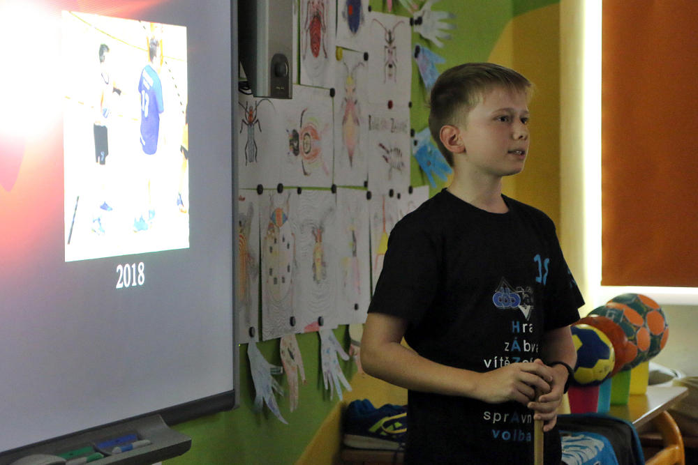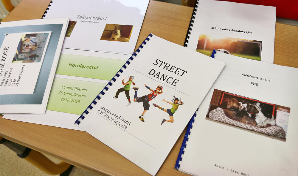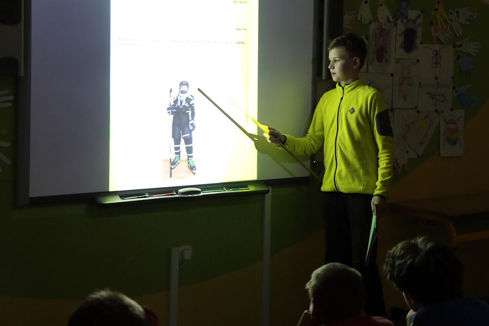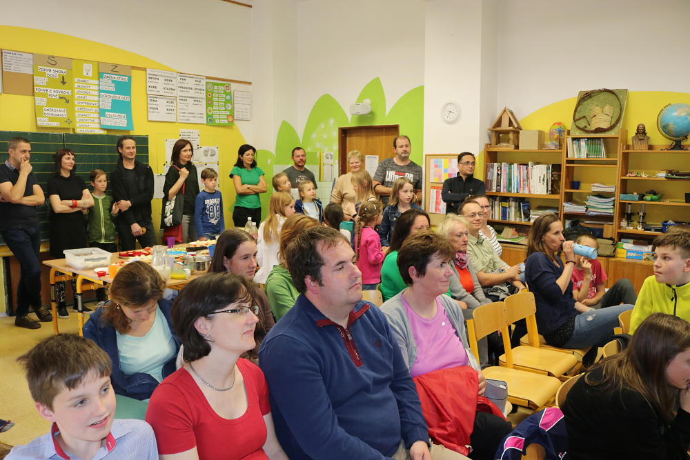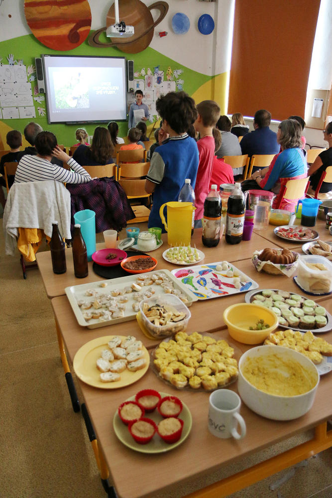 Žáci 5. třídy představili početnému obecenstvu své ročníkové práce, jejichž tvorba je provázela po velkou část školního roku. Nabídka byla velice pestrá, k vidění a slyšení bylo 17 prezentací na rozdílná témata: Muškaření, Hasičský sport, Jak si vyrobit mošt, Horolezectví, Zakrslí králíci, Můj vysněný fotbalový tým, Házená, Naši koně, Pes, Gymnastiká a já, Street dance, Historie panenek, Pravidla ledního hokeje, Pizza, Středověké zbraně, Pěšky z Česka na Slovensko, Králičí hop. Páťáci se připravili důkladně, nabídli i vlastnoručně ukuchtěné pokrmy a nápoje, nejspíš pro případ, aby diváci odcházeli spokojení, i kdyby se prezentace nepovedly :). Tato situace ovšem nenastala, žáci vše zvládli výborně, patří jim veliké poděkování a obdiv.