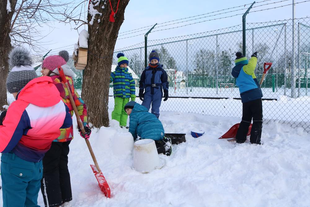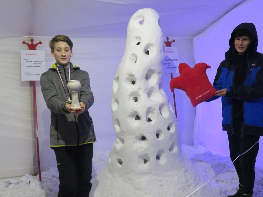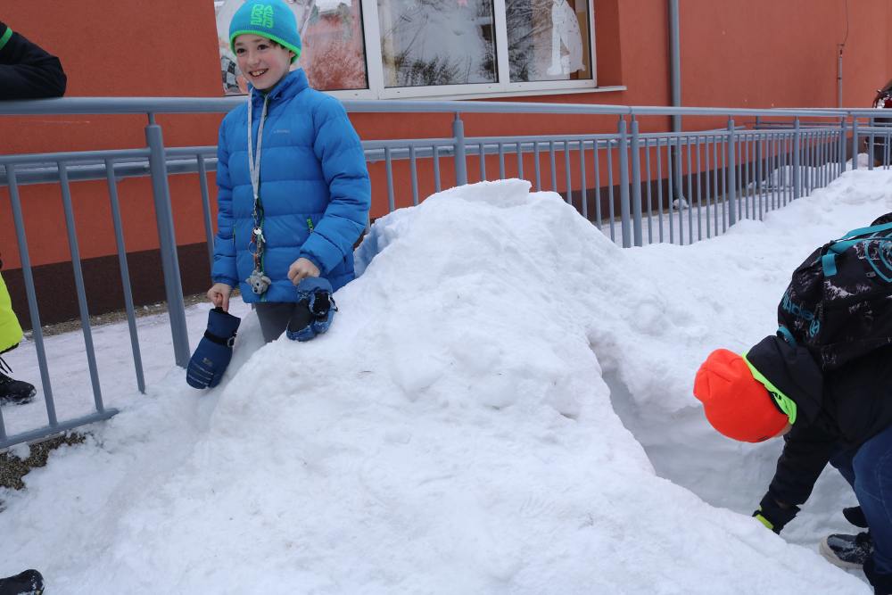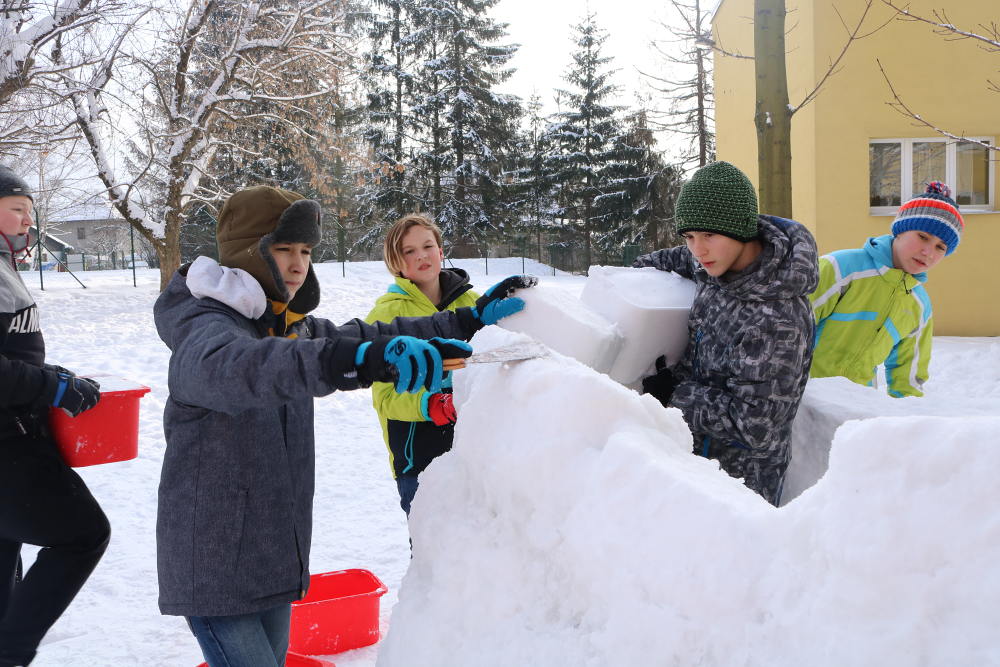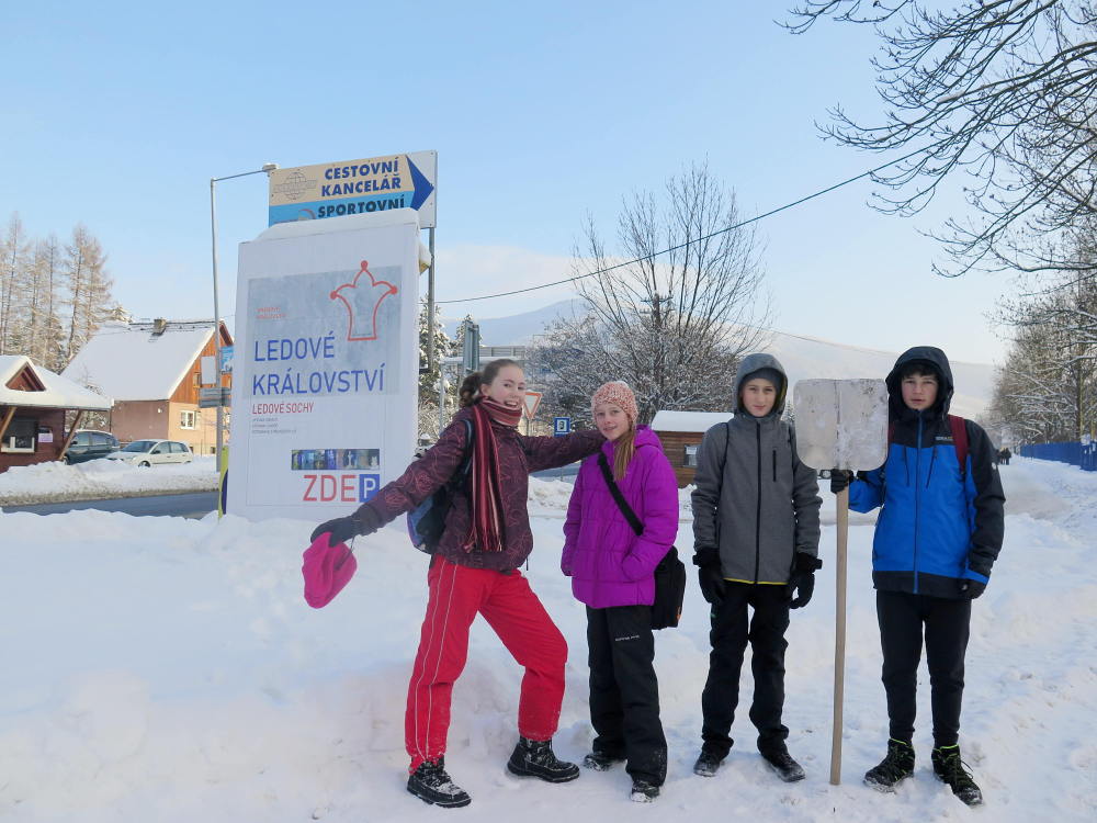 V letošním roce je k nám příroda velmi štědrá co se týče sněhu. Ve škole si této nadílky náležitě užíváme a to jak při hrátkách na školní zahradě, tak i například účastí na Ledovém Království v Rožnově pro školy. Tým sedmáků ve složení: Ida Kostková, Klára Janošková, Vojtěch Štěpánek a Mikuláš Valášek vytvořil sněhovou sochu LEDOVÉ CHAPADLO, která získala 1. místo od odborné poroty, z čehož měl celý tým velkou radost. Gratulujeme! Společně s nimi se této akce zúčastnily také školy ZŠ 5. května z Rožnova, ZŠ Horní Bečva a ZŠ a střední škola pro sluchově postižené ve Valašském Meziříčí. Žáci si vyzkoušeli práci se sněhem i s ledem a tvořili přímo mezi díly opravdových sochařů. Sníh a led se promítnul také do "pracovek" a fyziky, kdy žáci II. stupně vyráběli iglů (tématem bylo uchování tepla) a výtvarný kroužek využil sněhu jako velké bílé plochy pro barevné kyvadlo.