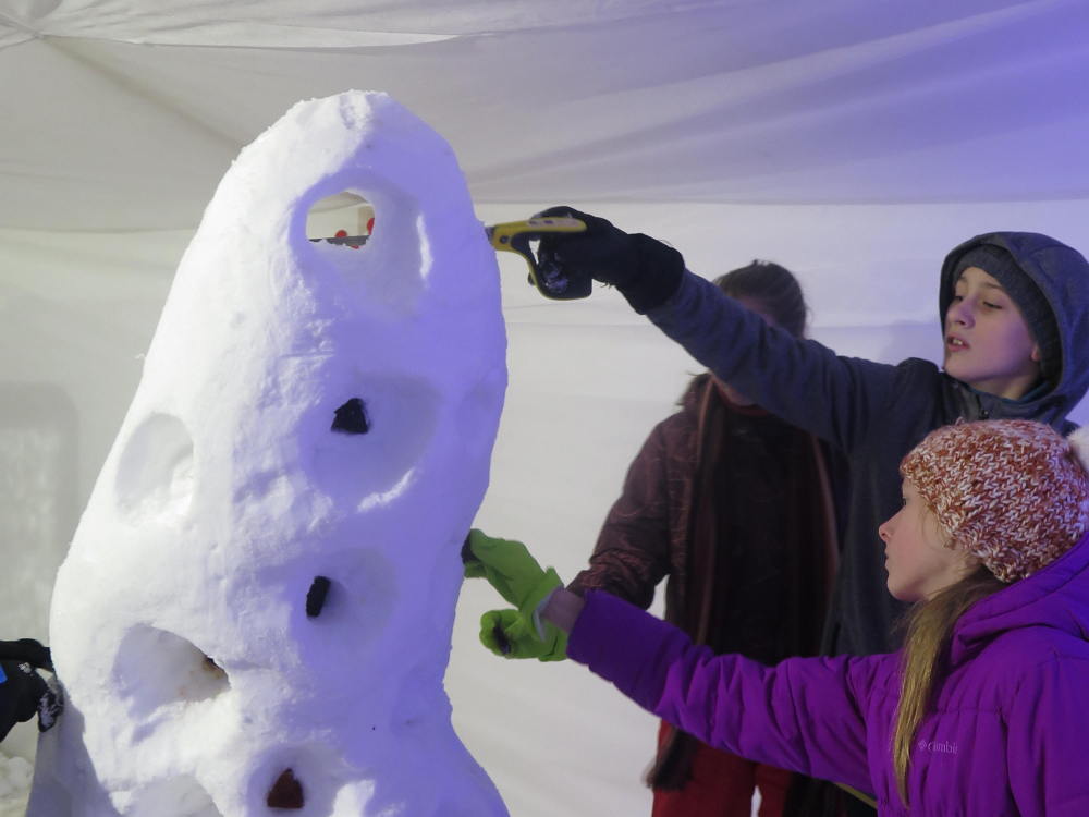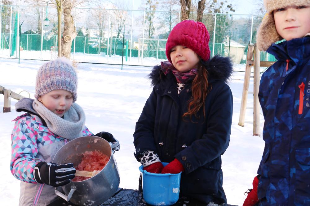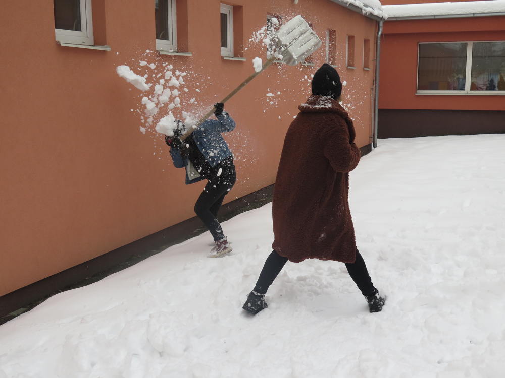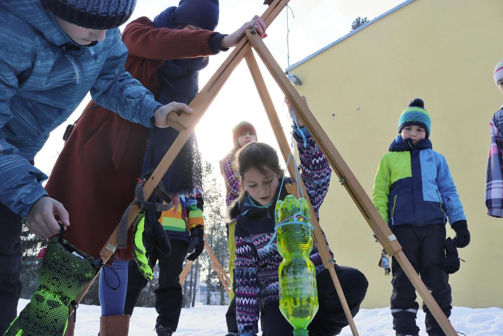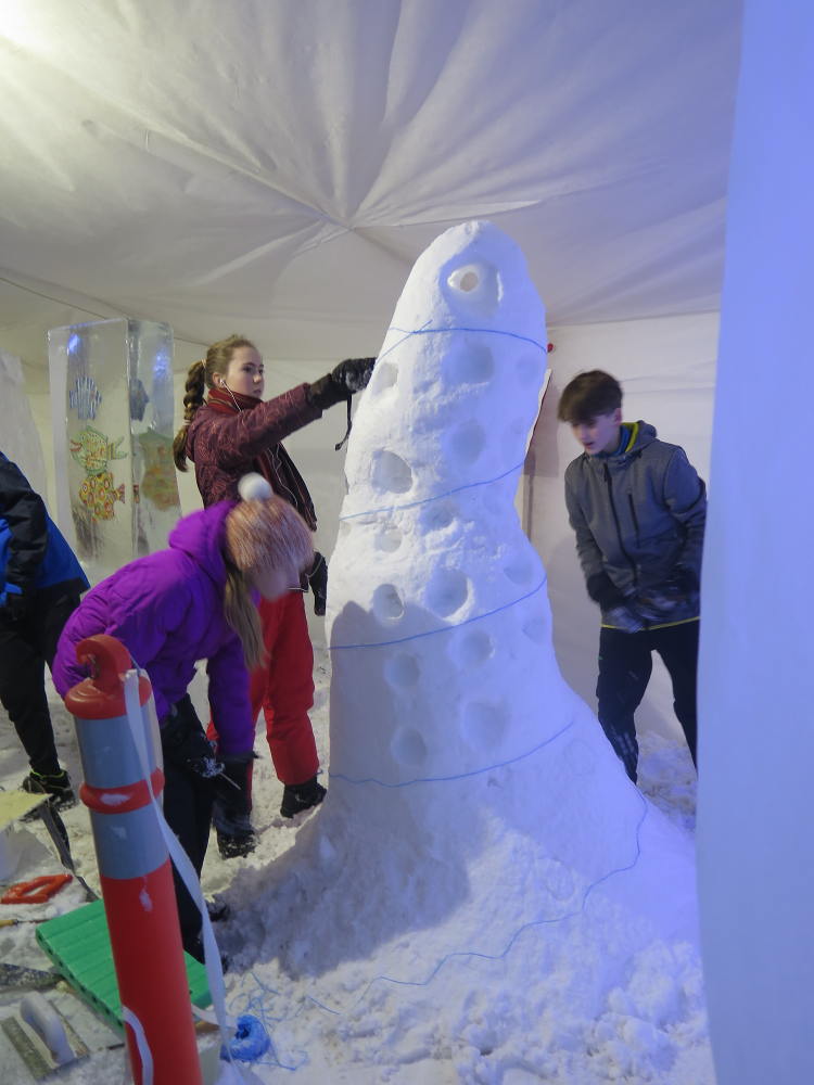 V letošním roce je k nám příroda velmi štědrá co se týče sněhu. Ve škole si této nadílky náležitě užíváme a to jak při hrátkách na školní zahradě, tak i například účastí na Ledovém Království v Rožnově pro školy. Tým sedmáků ve složení: Ida Kostková, Klára Janošková, Vojtěch Štěpánek a Mikuláš Valášek vytvořil sněhovou sochu LEDOVÉ CHAPADLO, která získala 1. místo od odborné poroty, z čehož měl celý tým velkou radost. Gratulujeme! Společně s nimi se této akce zúčastnily také školy ZŠ 5. května z Rožnova, ZŠ Horní Bečva a ZŠ a střední škola pro sluchově postižené ve Valašském Meziříčí. Žáci si vyzkoušeli práci se sněhem i s ledem a tvořili přímo mezi díly opravdových sochařů. Sníh a led se promítnul také do "pracovek" a fyziky, kdy žáci II. stupně vyráběli iglů (tématem bylo uchování tepla) a výtvarný kroužek využil sněhu jako velké bílé plochy pro barevné kyvadlo.
