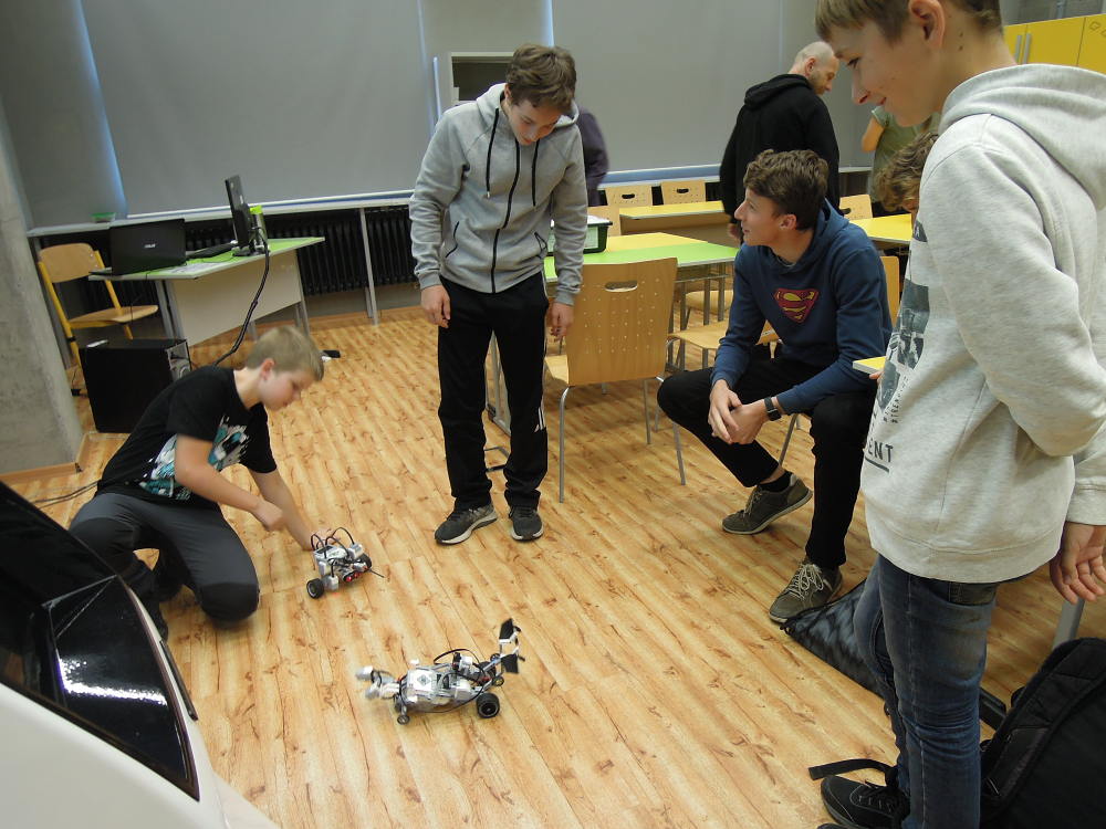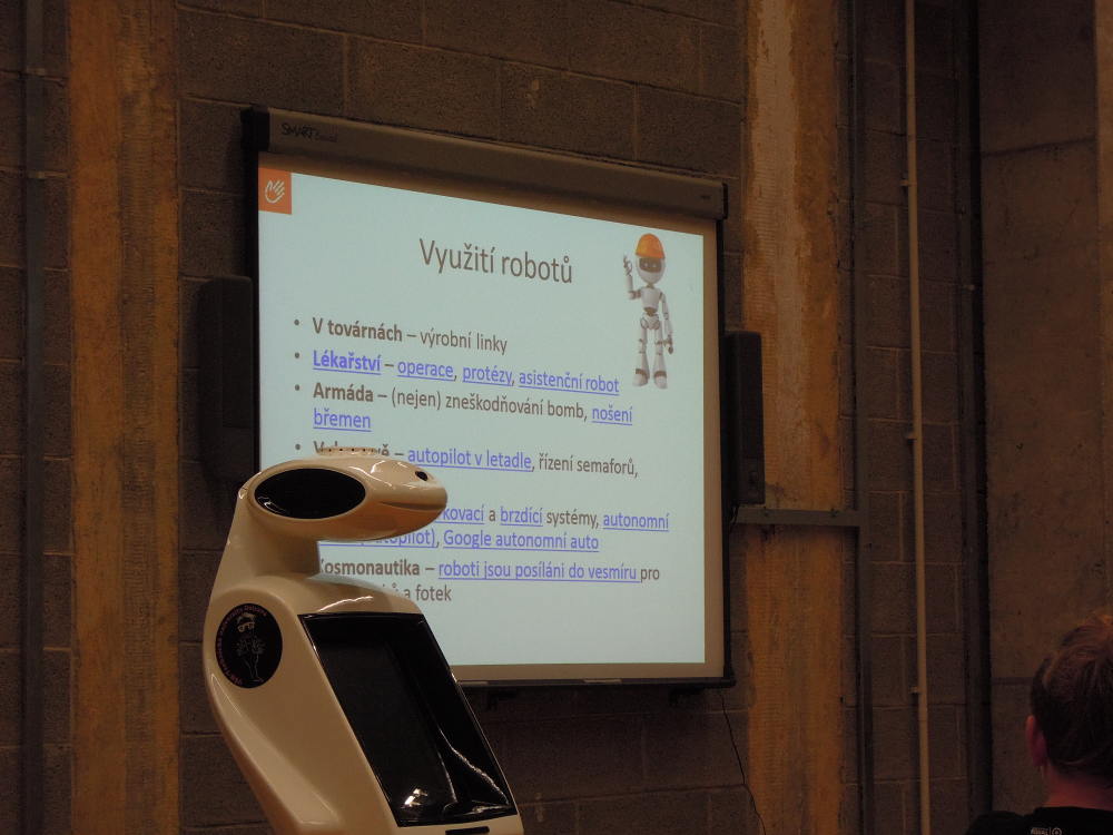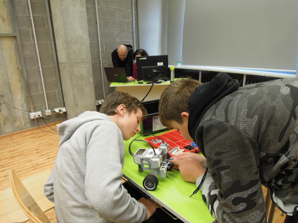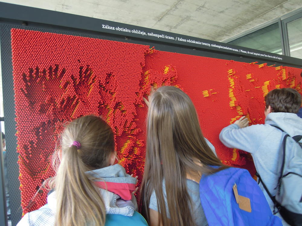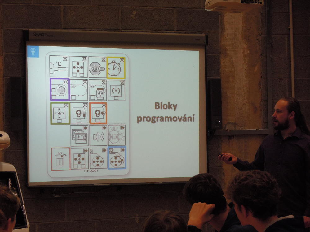 V pondělí 15. října jsme navštívili Svět techniky v Ostravě. Zatímco byli naši kamarádi v Londýně, my jsme vyrazili do Ostravy. Ráno v 6:30 jsme se všichni sešli ospalí na autobusovém nádraží. Cesta autobusem byla dlouhá, ale aspoň jsme měli čas se dospat. Když jsme dorazili na místo, odvedl nás pán do třídy v budově U6. Tam jsme se usadili, pán nám spustil prezentaci a poslouchali jsme. Kladl nám různé otázky a zapojoval nás, ale většina byla ještě rozespalá, takže jsme moc nereagovali a často nám museli dopomoct učitelé. Potom nám rozdal robotické lego a po poučení o ceně, křehkosti a používání jsme se pustili do stavění robota. Po zdlouhavém a náročném procesu jsme zapojili kabely a robot byl na světě. Poté jsme měli přestávku a měli jsme možnost si zajít krátce prohlédnout svět U6, vyřádit se ve vodním světě a posvačit. Po přestávce jsme si roboty zapnuli a zkoušeli jsme programovat a plnili jsme různé programovací úkoly. Byla to zábava. ...Také jsme si vyzkoušeli na spolužácích, jak by to fungovalo, kdyby robot uměl jen dva pokyny a měli bychom jej přesunout z místa na místo. Program se mi moc líbil (a myslím, že i mým ostatním spolužákům), nejvíc mě asi zaujalo programování samotného robota. ... Polovinu času nám pán ukazoval prezentaci, ve které bylo hodně zajímavostí. Líbilo se mi, jak s námi pán komunikoval, zapojoval nás do debaty a kladl nám otázky. ... Zajímalo mě, jak jsme programovali a stavěli roboty z lega, motoru, dotykového čidla, ultrazvukového čidla, barevného snímače. ... Mě na té přednášce nejvíc zaujalo a bavilo to, že jsme si mohli vystavět vlastního robota a naprogramovat si ho.