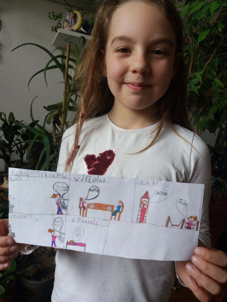 Pracujeme dopoledne i odpoledne, nejradši čtu a dělám matiku. A baví mě, že v zadání jsou někdy vtipné úkoly. A těším se na další úkoly.