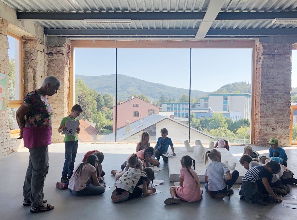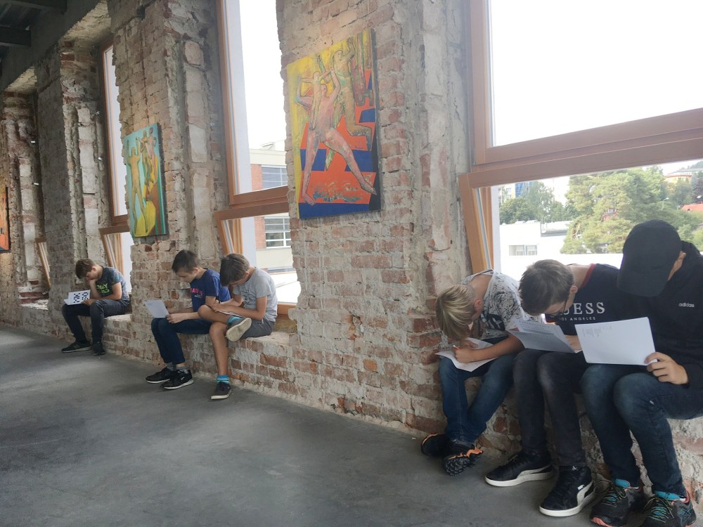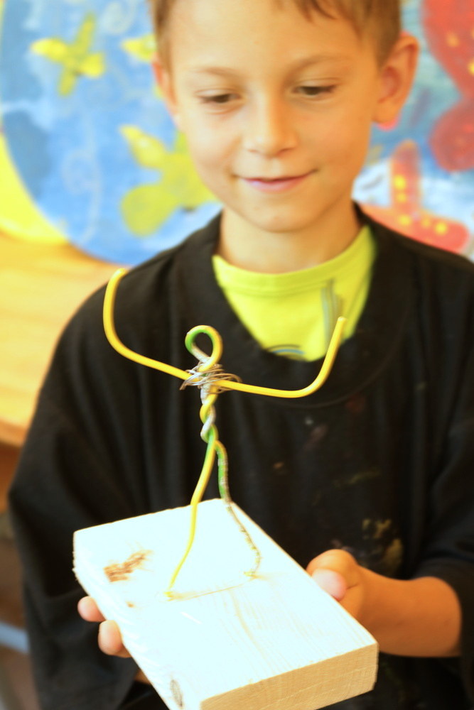 Přijali jsme pozvání na výstavu rožnovského sochaře Mária Kotrby a vydali se za uměním na blízkou Brilovku. Kromě soch a obrazů v zajímavém prostředí, na nás už čekaly aktivity s pracovními listy. Počítali jsme figury na obrazech, poznávali tvary obsažené v sochách, luštili křížovku, kreslili podle pana umělce i vlastní fantazie. Nakonec jsme shlédli dokument, kde jsme poznali záběry z blízkého ateliéru Mária Kotrby a vyluštili šifru MK 60, která nám připomněla, že jsme opravdu viděli jedinečné sochy a další už bohužel nevzniknou. Plnění hravých úkolů jsme si užili. Než jsme se nadáli, byl čas oběda. Když jsme se vraceli do školy, ještě jsme zastavili a zvesela pozdravili sochu sv. Kryštofa u kina, jako by to byl náš starý známý kamarád.Plni dojmů z výstavy jsme se ve škole pustili do tvorby vlastních modelů figurálních soch. Nakoukněte, dařilo se nám mistrovsky! PS: Protože si tuto událost nenechaly ujít ani další třídy v rámci výtvarné výchovy, přidáváme další fotografie.