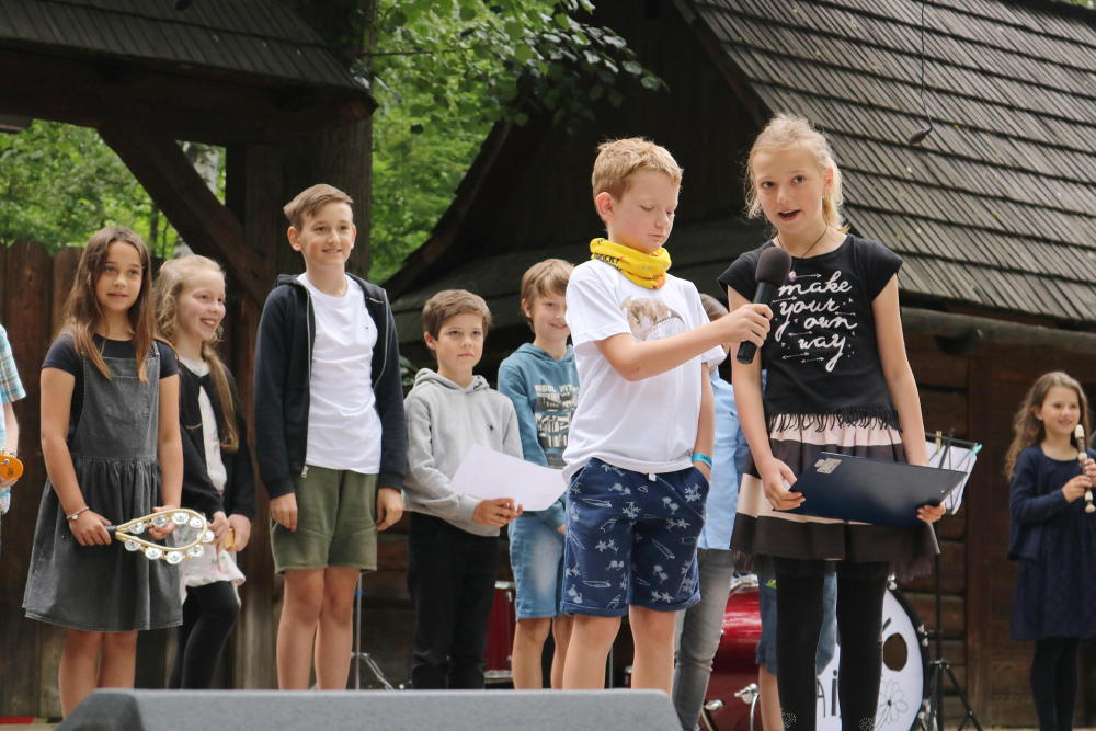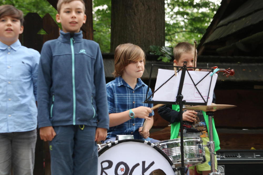 V pátek 26. 6. jsme se po dlouhém období mimořádných opatření a výuky Na dálku konečně sešli všichni spolu na letní slavnosti. Proběhla "rozcvička", zazněly písničky, velký úspěch slavila hudební opera,