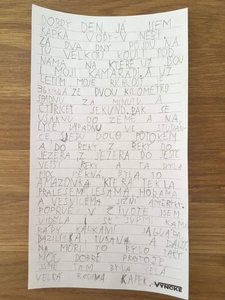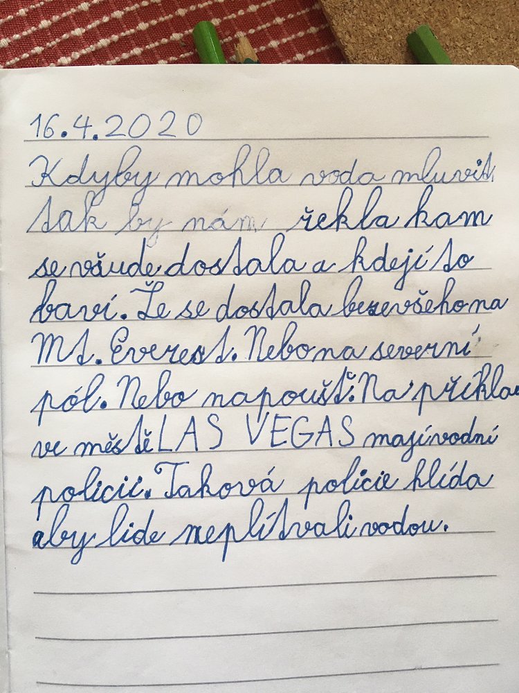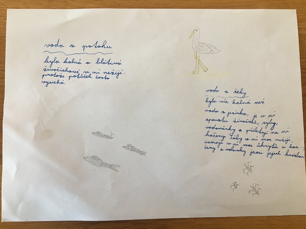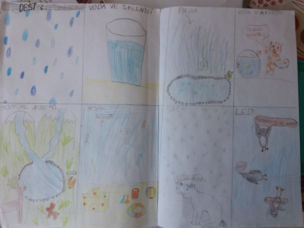 Během výuky "Na dálku" třeťáci nezaháleli a vrhli se s dopomocí rodičů "Do vody". Nemyslím tím, že by skákali do vody, ale nahlíželi na téma "Voda" ze všech možných pohledů - vědeckých, hudebních, výtvarných či literárních... Dopadlo to moc hezky - nápadů, myšlenek a inspirace byla spousta.