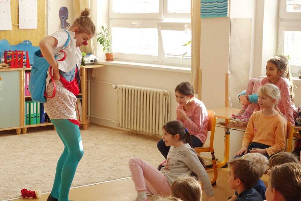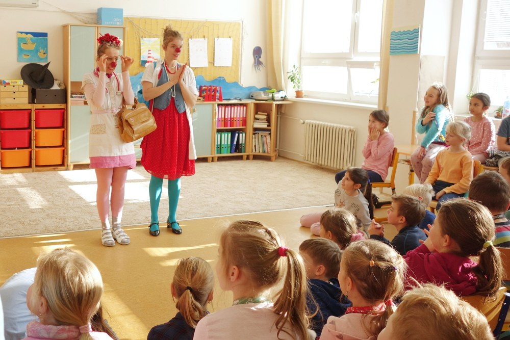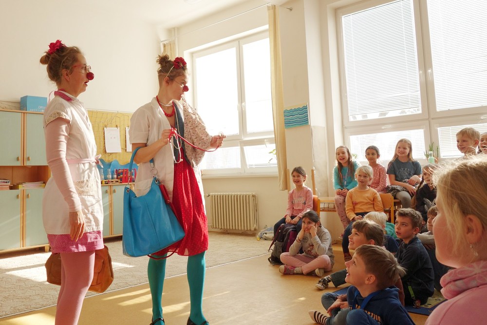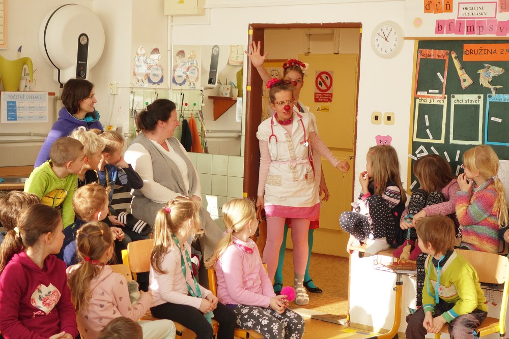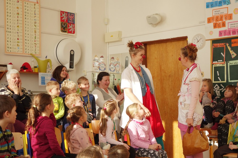 zazpívat. Umí vykouzlit úsměvy těch, kterým zrovna nemusí být do smíchu. A to je tou největší hodnotou ze všech. Naši žáci měli možnost se seznámit s jejich prací ve čtvrtek 30.1. Děti ze 4. až 7. třídy se dozvěděly proč klauni vznikli, co dělají a jak je možné se klaunem stát. V 1. - 3. třídě