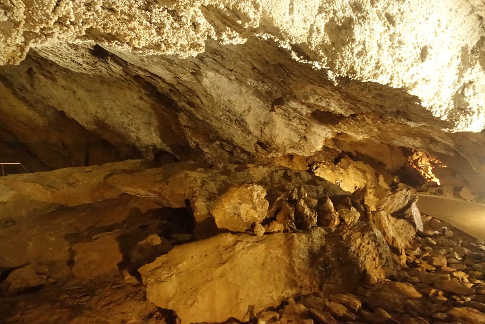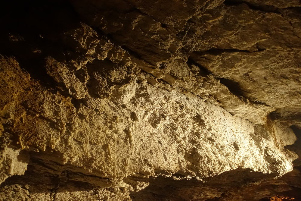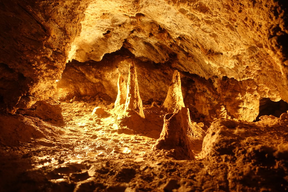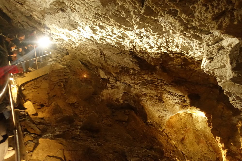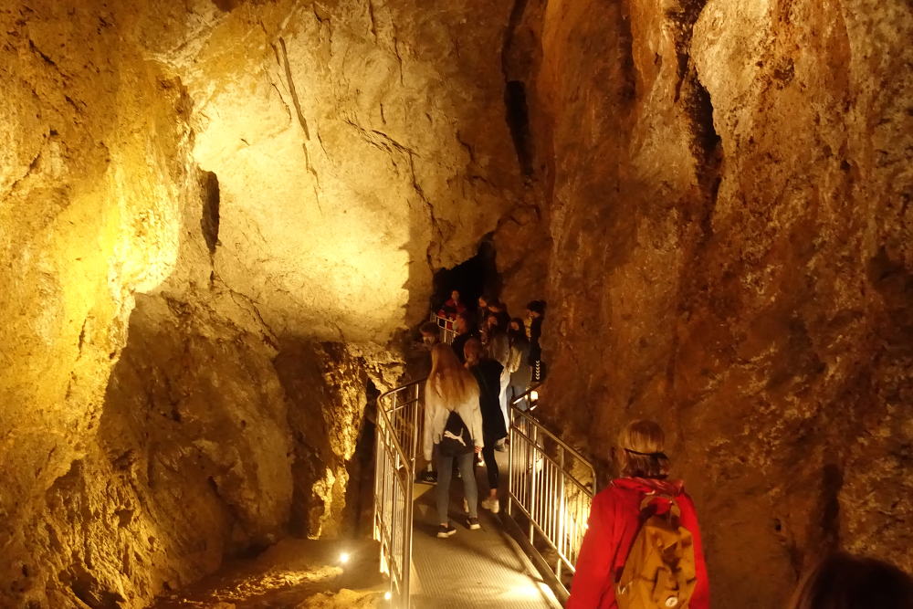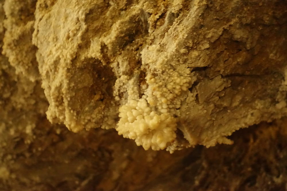 a tzv. "koblihy". V několika místech je vysoká koncentrace CO2, což nám průvodkyně dokázala spouštěním svíčky, která v určitém momentu (nedostatkem kyslíku) zhasla.