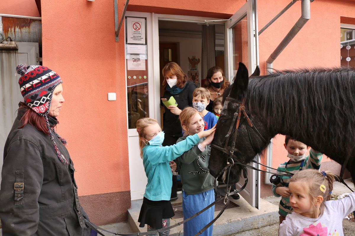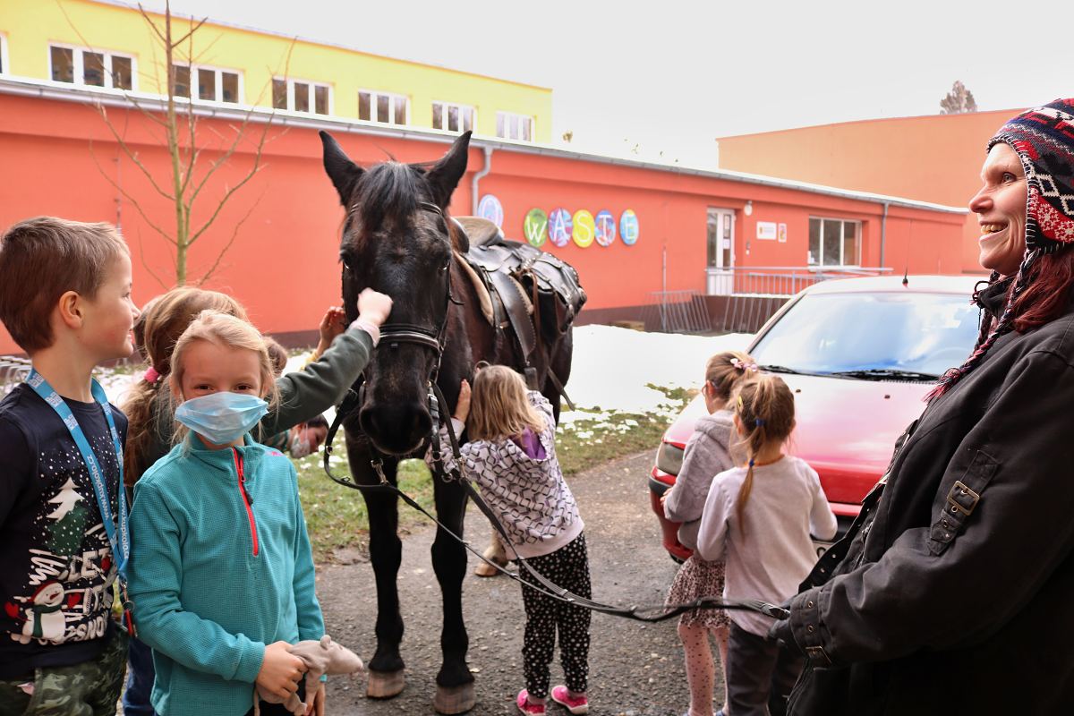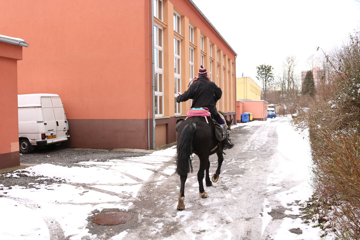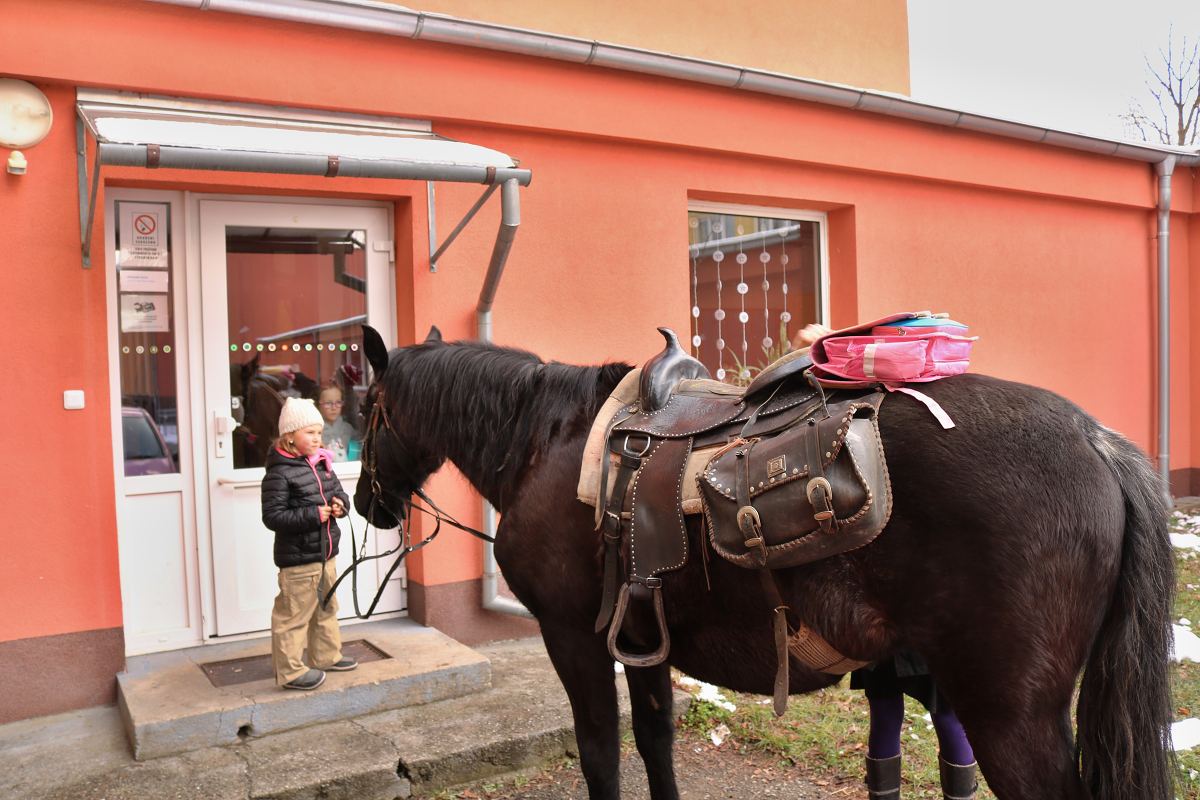 V úterý způsobilo pozdvižení speciální jednokoňové vozidlo, které si přijelo do družiny pro Mariku.