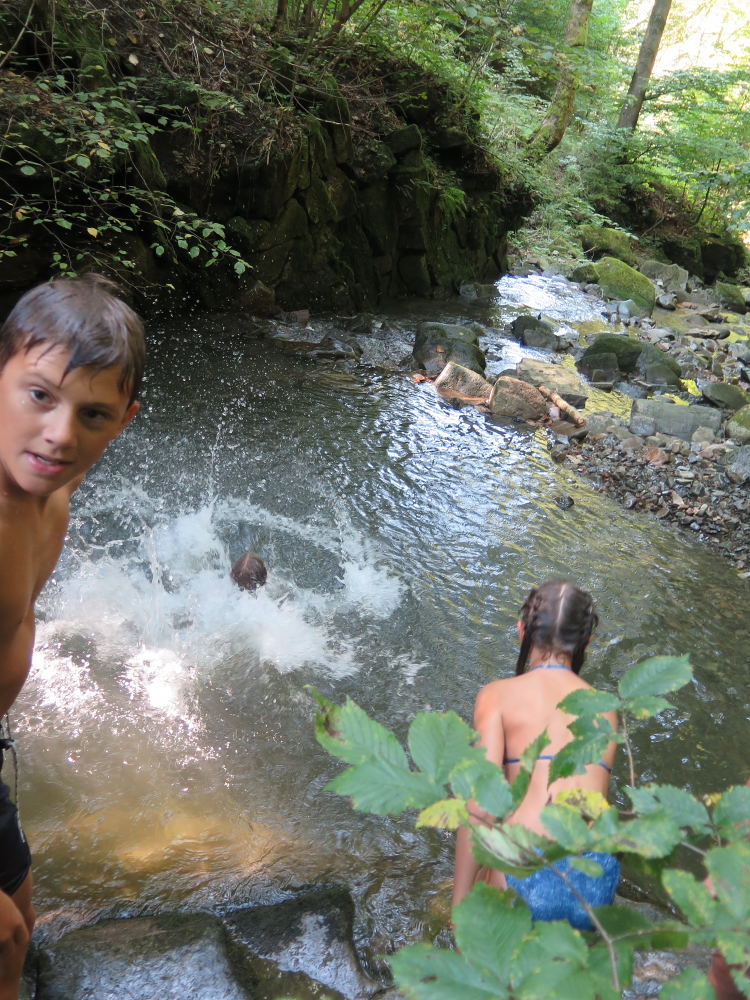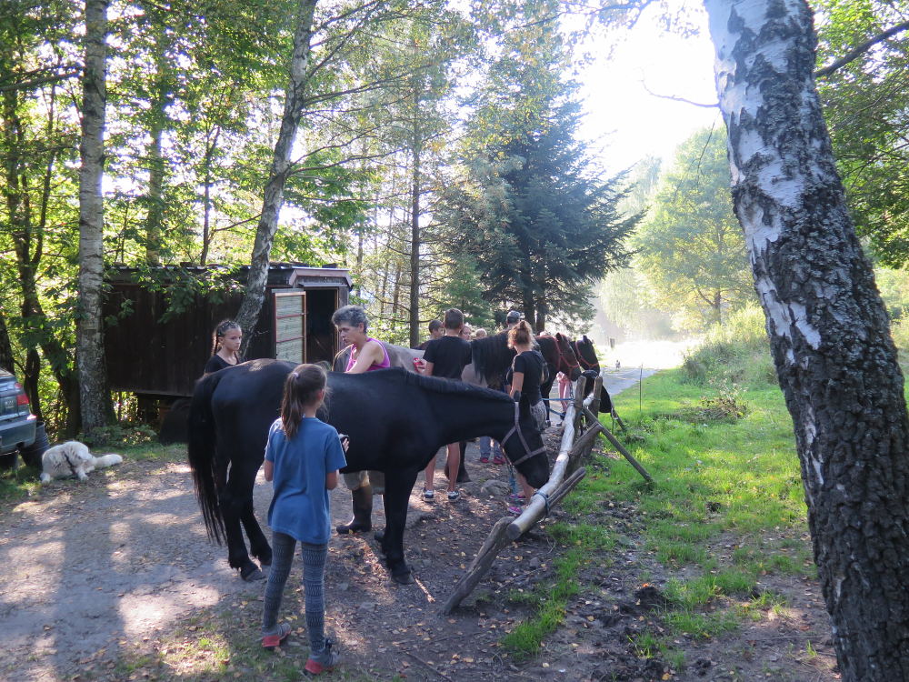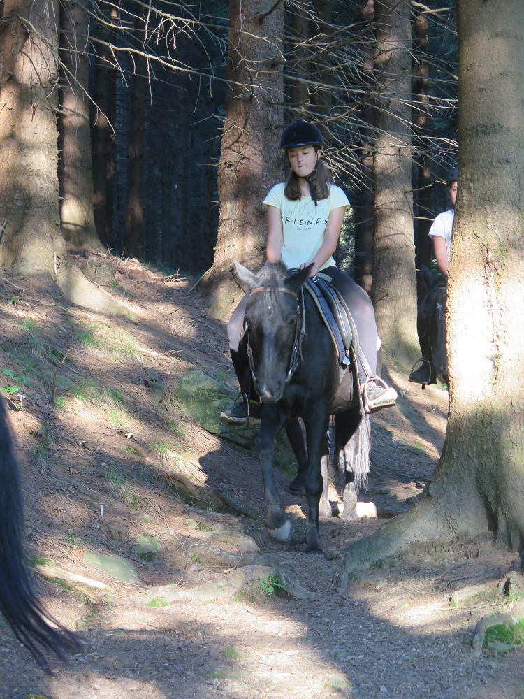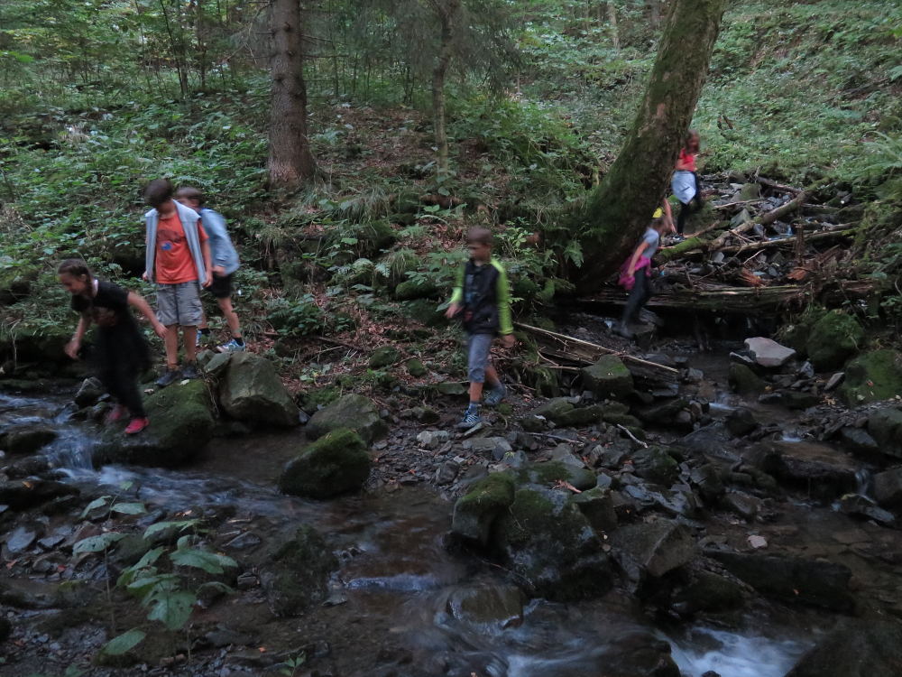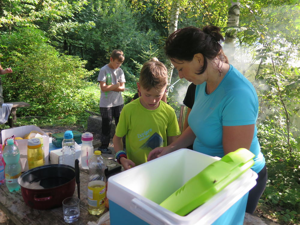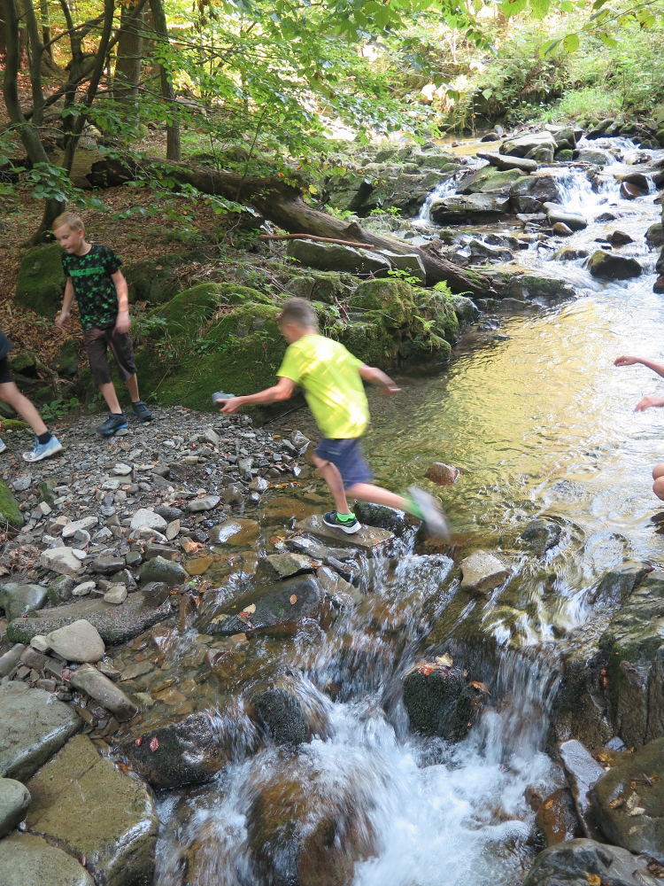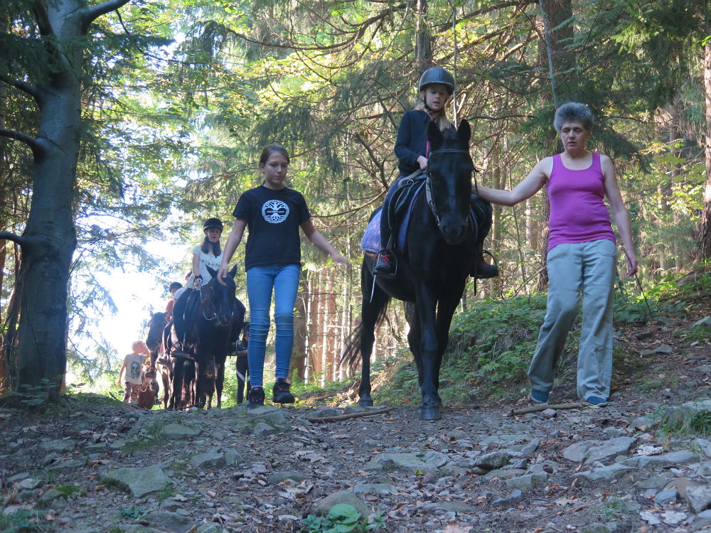 o spolupráci. Paní Šárka nás provedla po pralese. V potoce jsme se mohli koupat, cákat, skákat do tůňky, i když voda byla hodně ledová. Všichni jsme si užili jízdu na koni. Vařili jsme si špagety, guláš, myli nádobí, hráli naše oblíbené