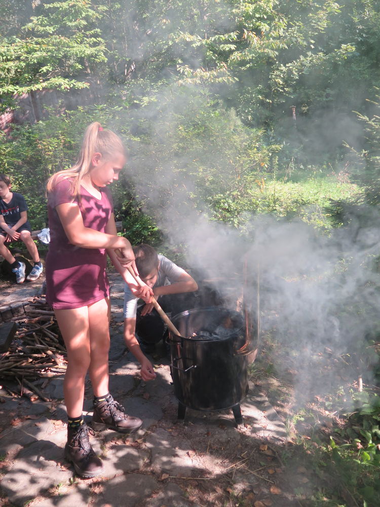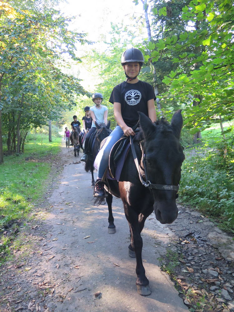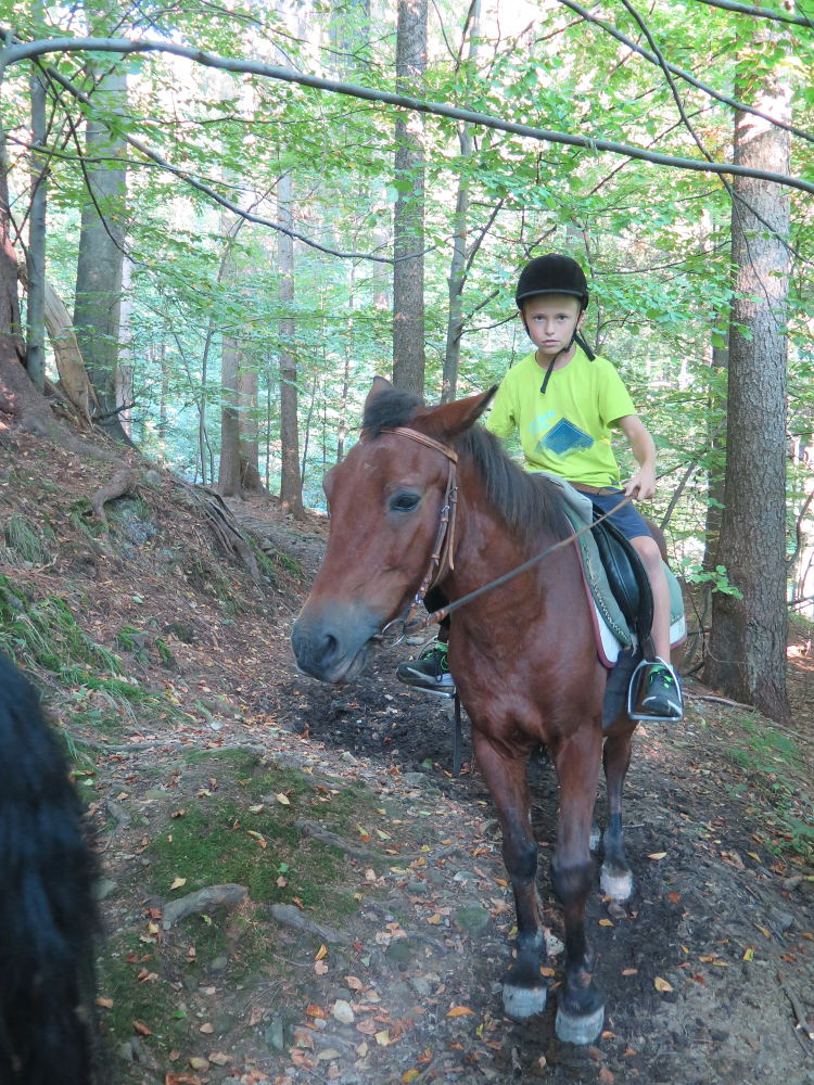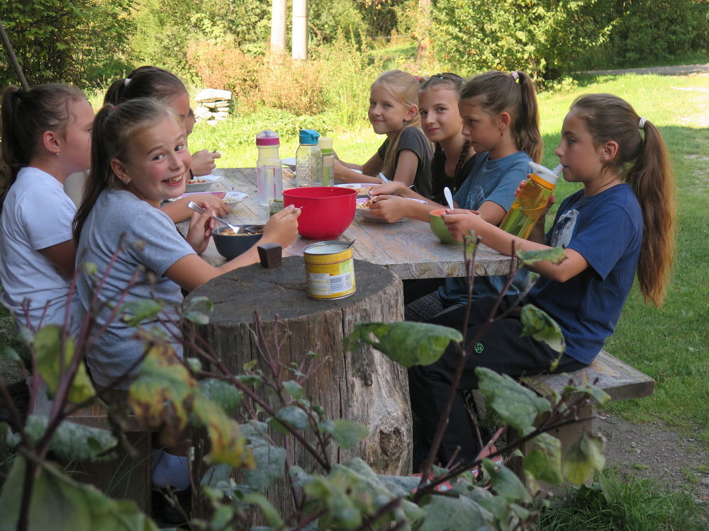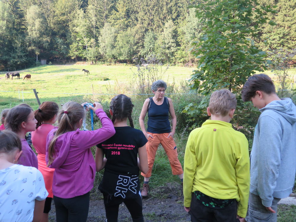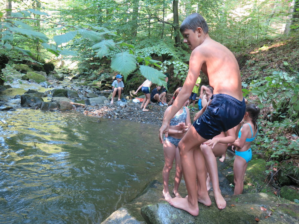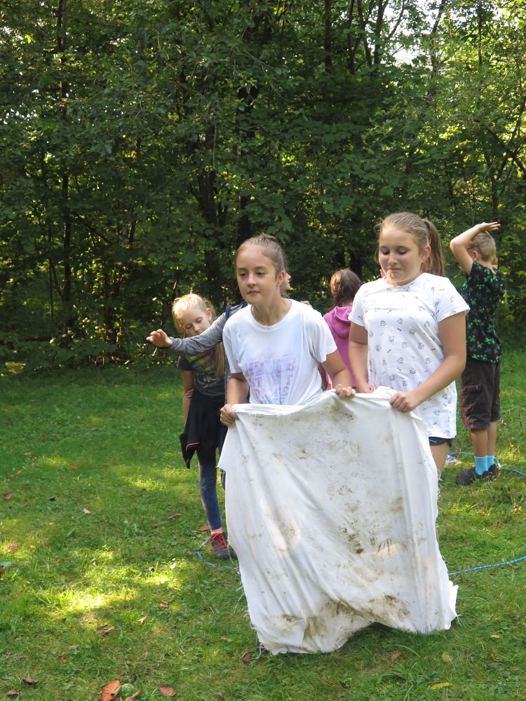 o spolupráci. Paní Šárka nás provedla po pralese. V potoce jsme se mohli koupat, cákat, skákat do tůňky, i když voda byla hodně ledová. Všichni jsme si užili jízdu na koni. Vařili jsme si špagety, guláš, myli nádobí, hráli naše oblíbené