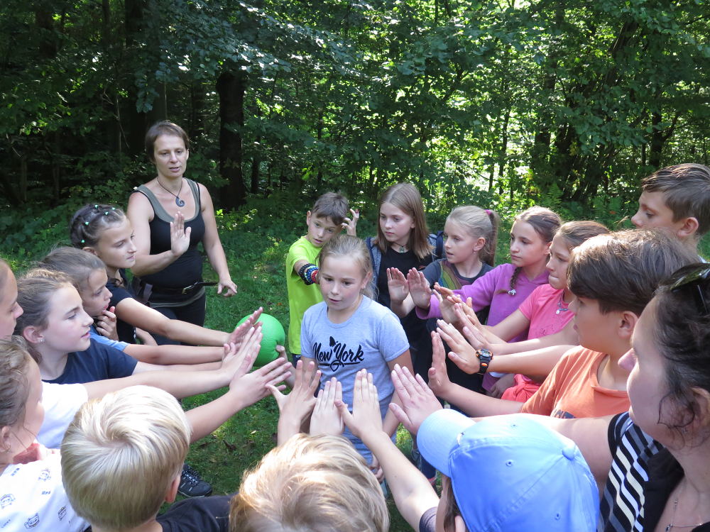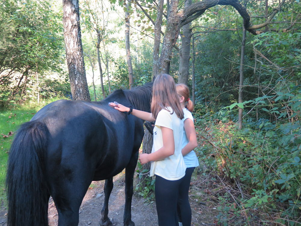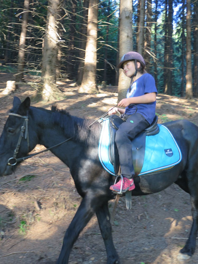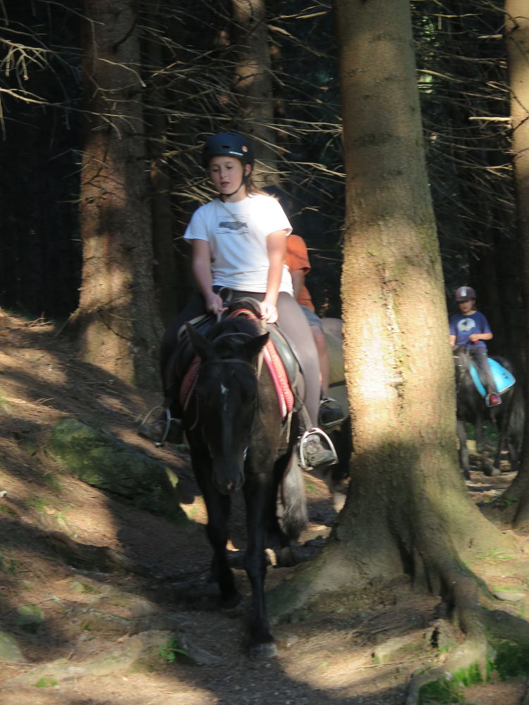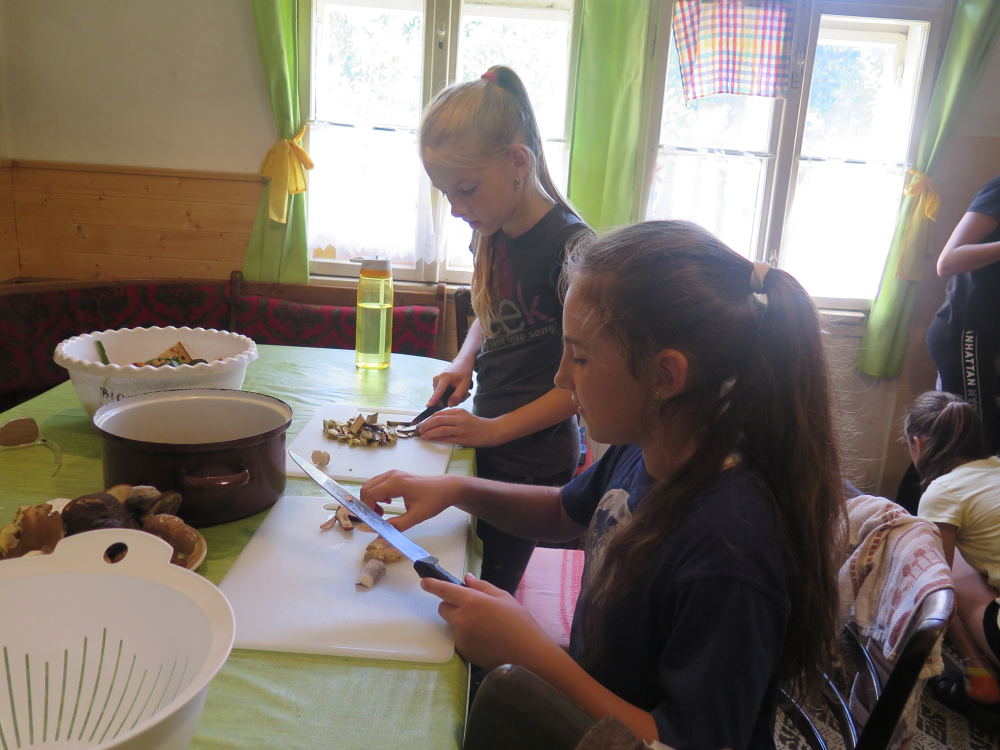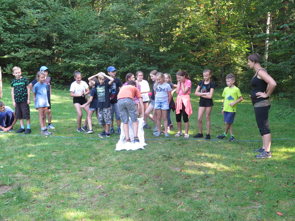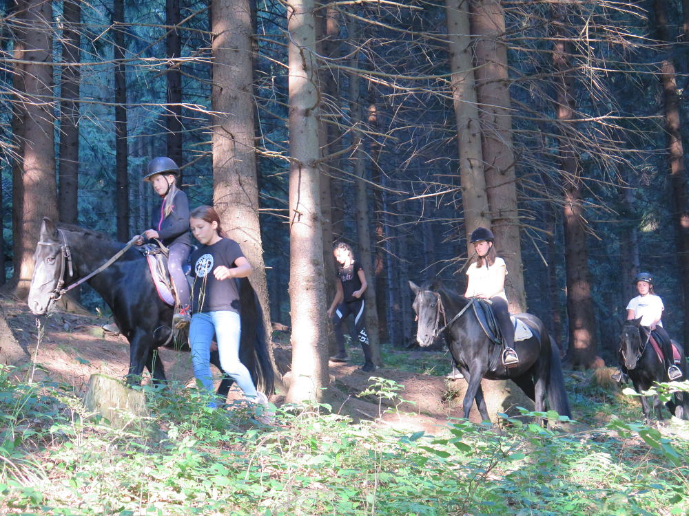 o spolupráci. Paní Šárka nás provedla po pralese. V potoce jsme se mohli koupat, cákat, skákat do tůňky, i když voda byla hodně ledová. Všichni jsme si užili jízdu na koni. Vařili jsme si špagety, guláš, myli nádobí, hráli naše oblíbené