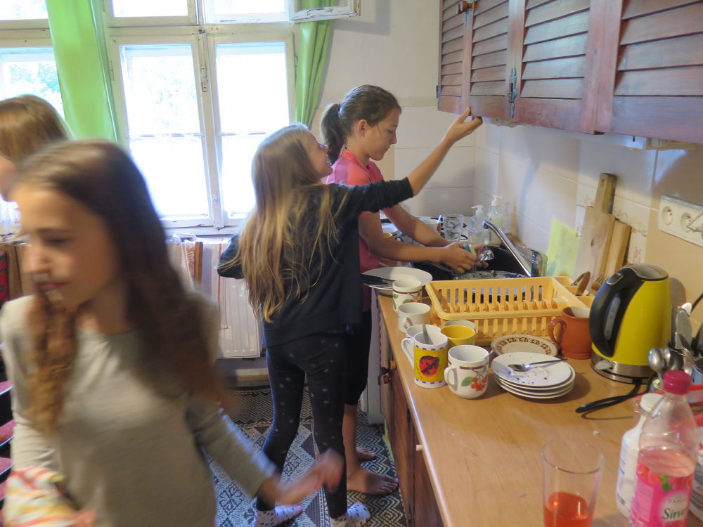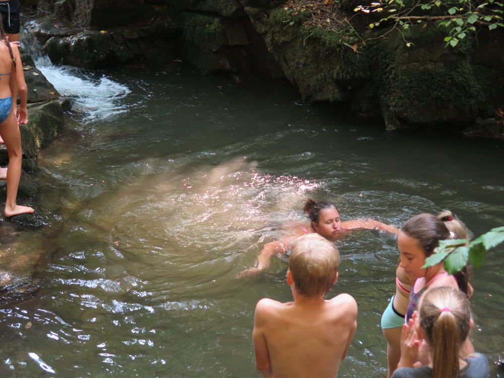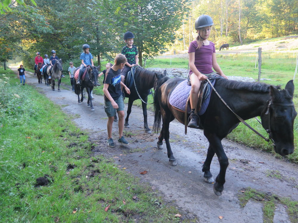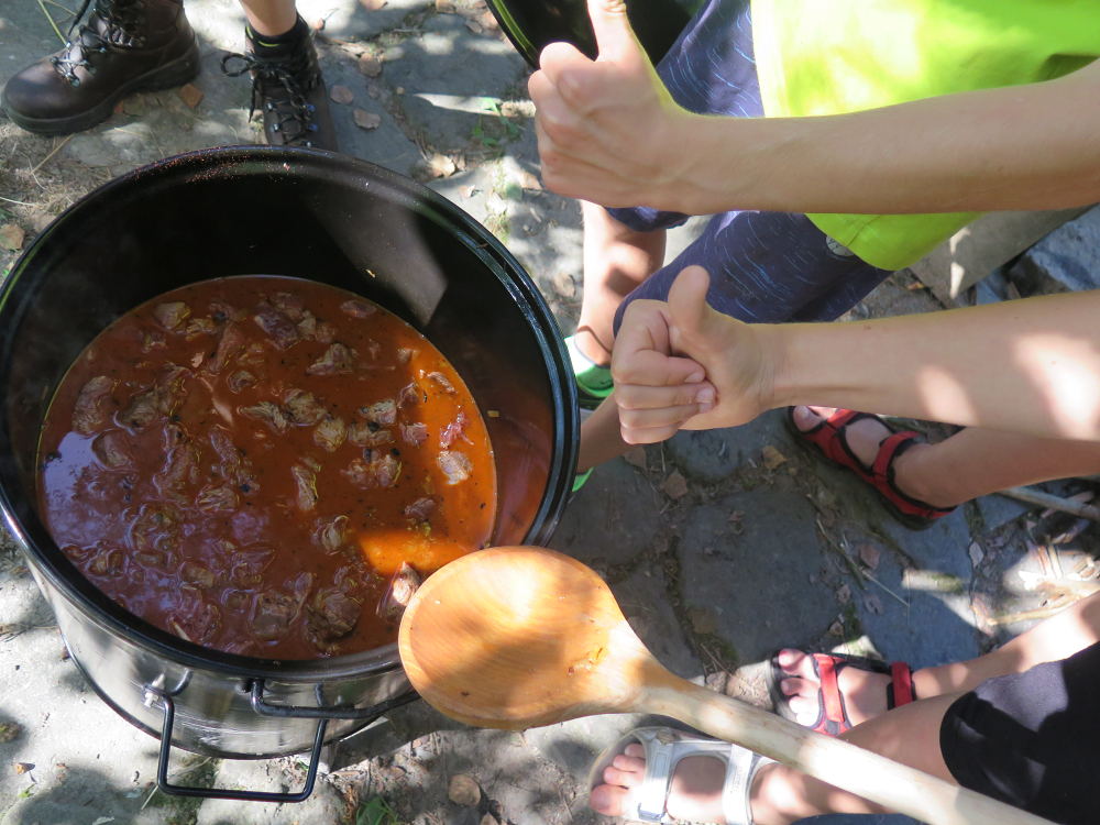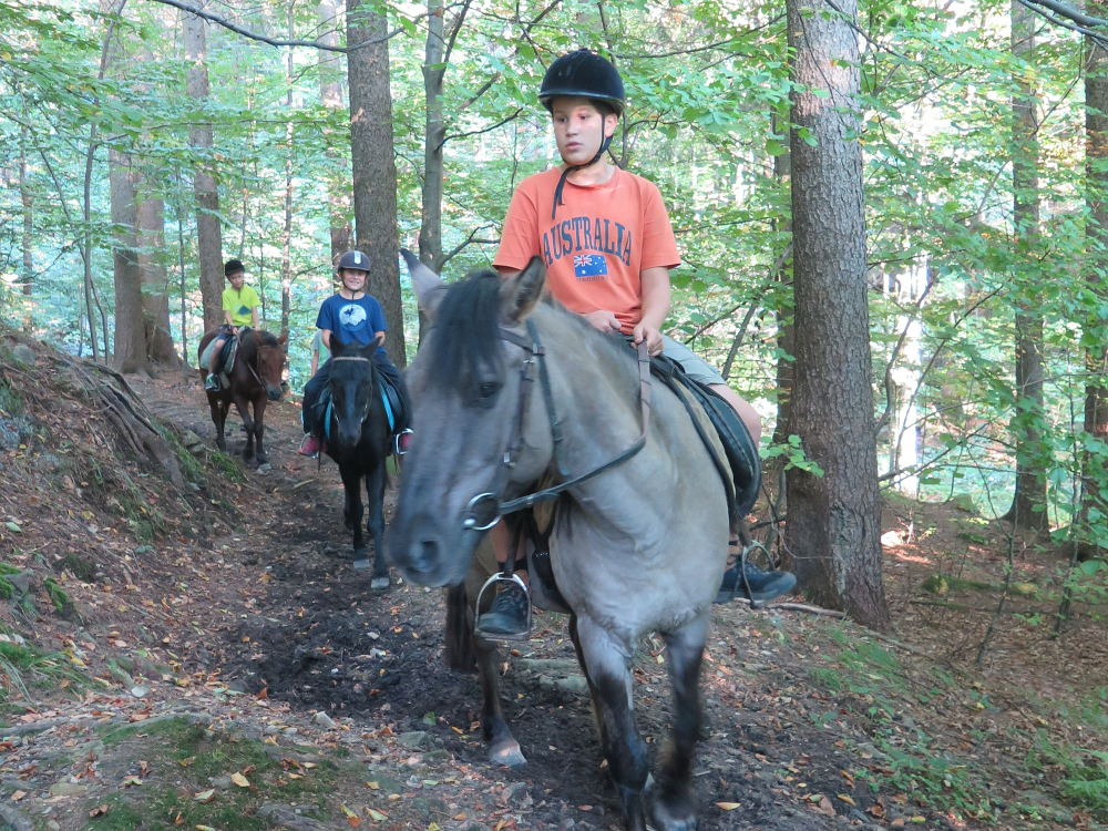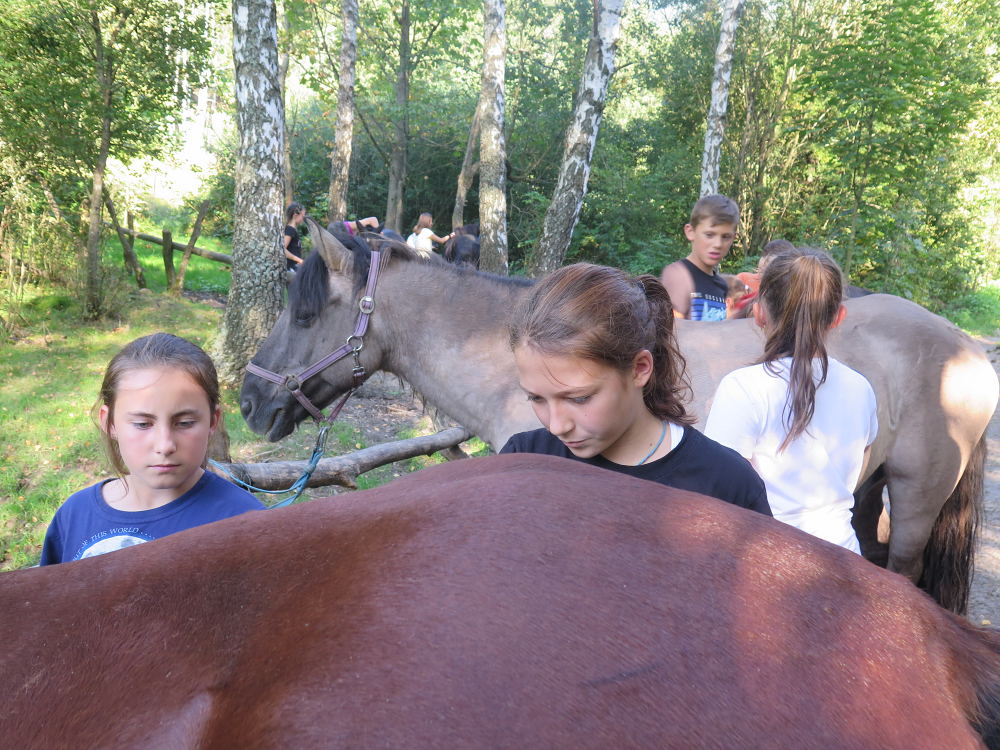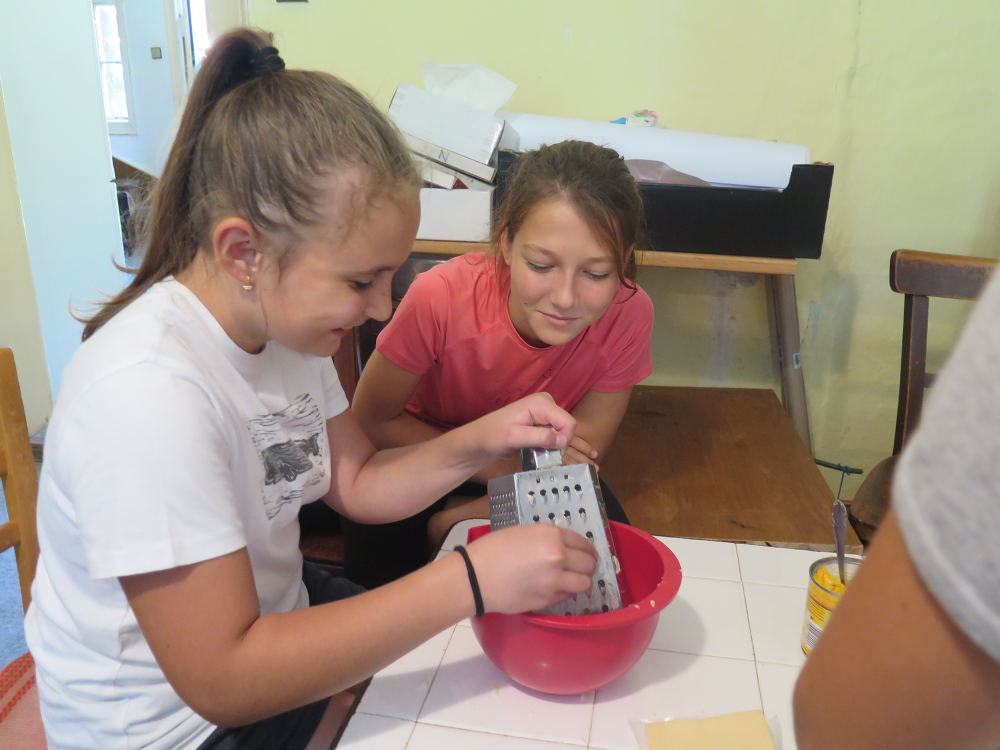 o spolupráci. Paní Šárka nás provedla po pralese. V potoce jsme se mohli koupat, cákat, skákat do tůňky, i když voda byla hodně ledová. Všichni jsme si užili jízdu na koni. Vařili jsme si špagety, guláš, myli nádobí, hráli naše oblíbené