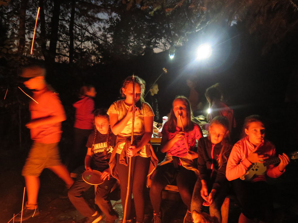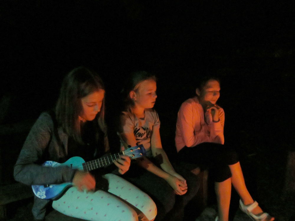hry a povídali si. Přinesli jsme dřevo a každý večer jsme s pomocí křesadla zapálili táborák. Večer nás příjemně překvapila návštěva pana ředitele, se kterým jsme si zazpívali. Třetí den jsme společně uklidili a ani se nám nechtělo domů.