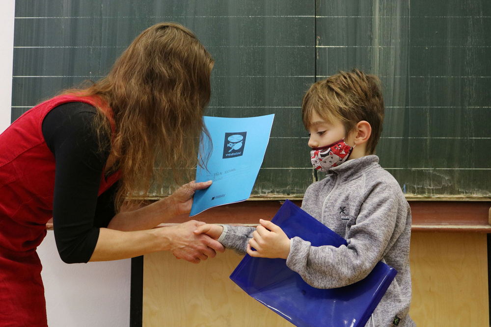 Ve čtvrtek si mohli osobně převzít vysvědčení na Sedmikrásce pouze žáci I. a II. třídy. A protože to pro prvňáčky bylo "úplně první vysvědčení na světě" a druháci si zase tento den udělali opravdu slavnostní se vším všudy