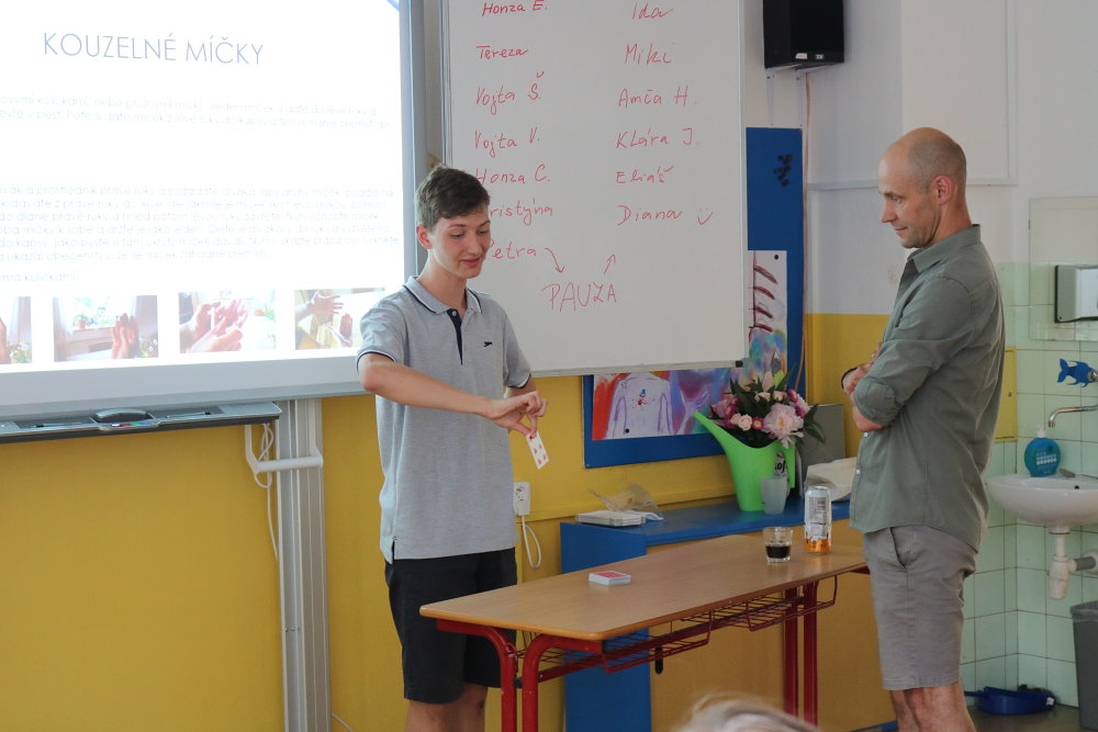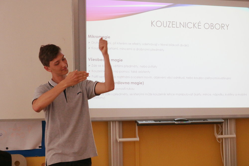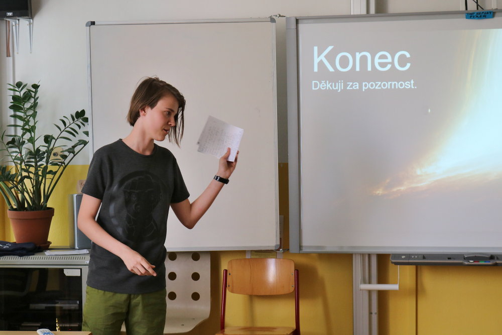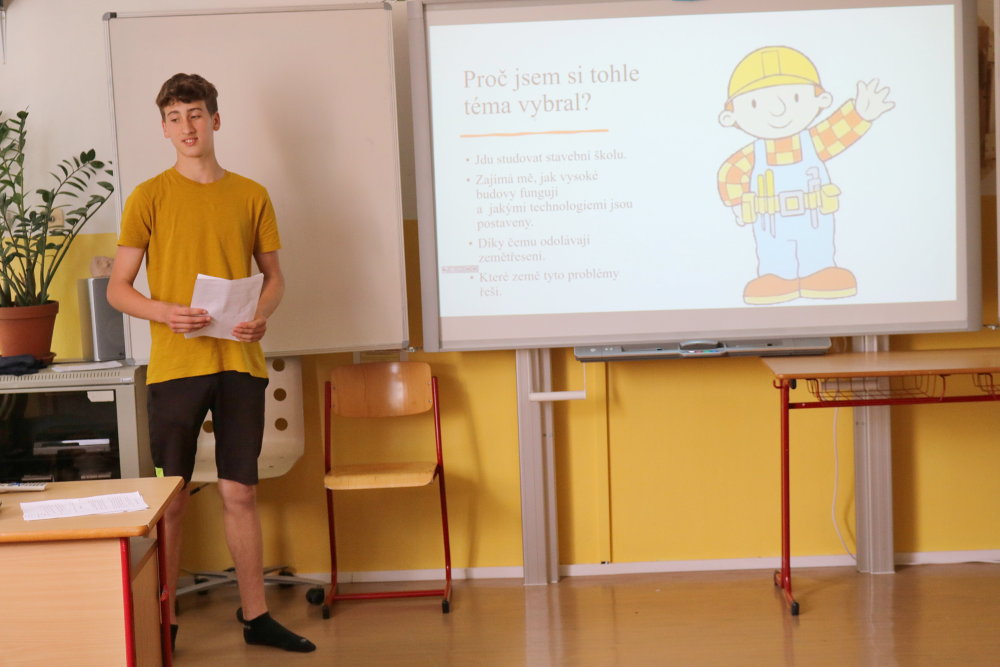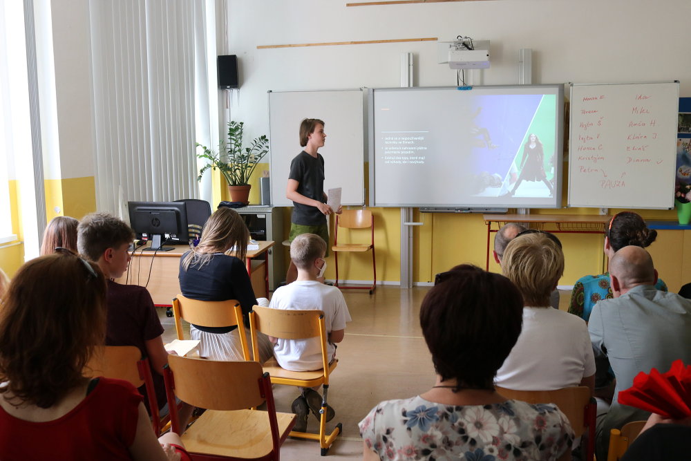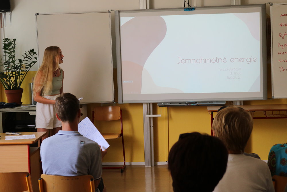 Navzdory nelehké situaci se i letos zhostili deváťáci svého obvyklého úkolu - vypracovat ročníkové práce na vybraná témata. Konzultace se ve velké míře odehrávaly online. 17. června už byla situace natolik příznivá, že žáci mohli pozvat své rodiče i učitele/konzultanty a představit jim svoje práce. Vystoupení v týdnu předtím zkoušeli, dolaďovali, a tak prezentace prací byly v drtivé většině kvalitní, kultivované, místy i doprovozené vtipem. Dověděli jsme se základní informace o složení a fungování mozku, římských památkách, jeskynních systémech v ČR, pečení cheesecaků, stabilitě výškových budov, 3D animačních tricích. Nahlédli jsme do pravidel házené i hodnocení sestav na trampolínách. Získali představu o rozdílných a společných rysech sci-fi a fantasy a také už víme, jaké barvy aury můžeme vidět. Velmi jsme si užili také kouzelnickou show a zkusili rozluštit pár šifer. Kvůli absenci pak pouze v rámci třídy zhlédli prezentaci o Ďatlovově výpravě a oceánských rezervacích. Neochutnali jsme sushi a jen tušili o druzích stresu a krásy Baleárských ostrovů si jen můžeme představovat. Díky všem, kteří k vypracování přistupovali poctivě, pracovali i konzultovali pravidelně. Stejně tak díky i všem konzultantům za čas a podporu.