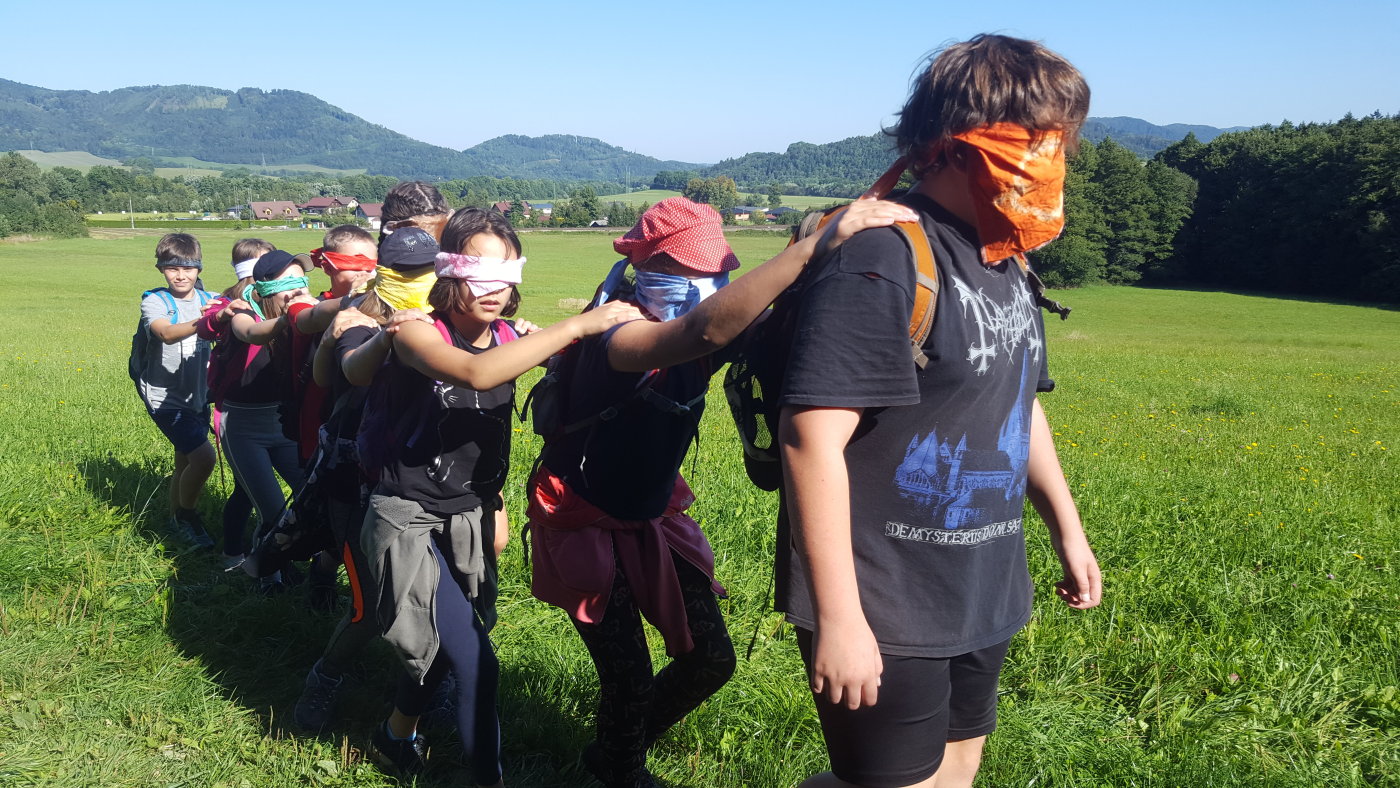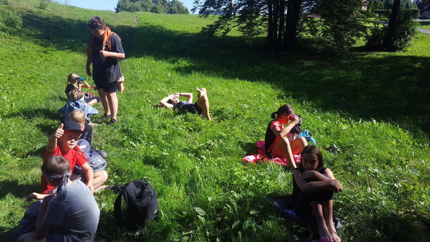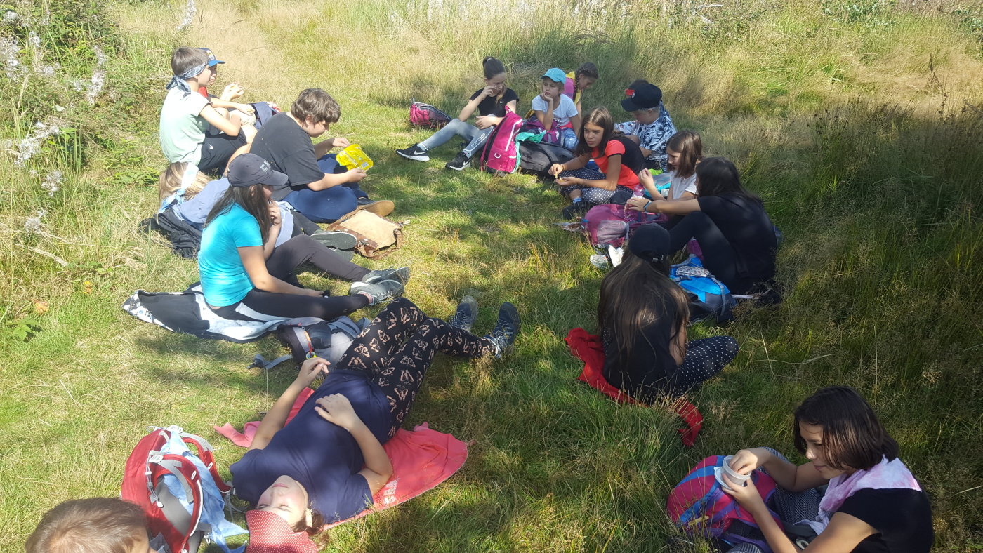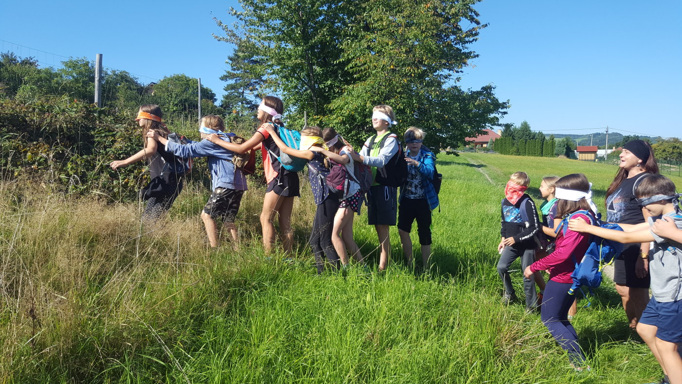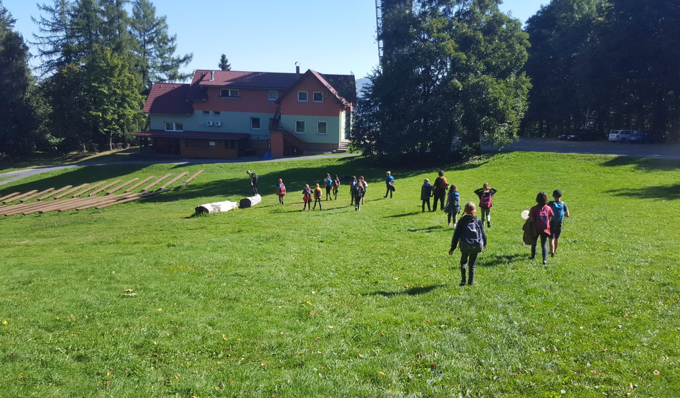 Abychom se sžili s novými spolužáky, novou paní učitelkou třídní a některými učiteli z druhého stupně, vyrazili jsme společně na třídenní pobyt v minizoo ranči Horečky u Frenštátu p. R. Celý první den jsme strávili na cestě. Na ranč jsme šli pěšky po modré turistické značce přes Kamenárku a kolem pramene Jičínky. Cestou jsme hráli různé hry, většinou s batikovanými šátky, které jsme si sami nabarvili. Někteří z nás si cestou sáhli se silami na dno - ten kopec byl hrozný!!! Ale odměna, v podobě oddechu na ranči, byla zasloužená. Krásné ubytování ve stanech s podsadou nebo chatičkách. Čekali na nás kozy, ovce, oslík, klokani, pštrosi a spousta dalších zvířat. Nejlepší byla morčata a králíčci - k těm jsme mohli do výběhu, vzít si je do náruče, pohladit si je. Večer byl táborák. Na kytaru hráli náš bývalý pan učitel třídní z 5. třídy Jirka Krajča a náš nový pan učitel hudební výchovy a českého jazyka Dan Stibor. Druhý den jsme šli na procházku k řece Lubině a odpoledne na nás čekalo střílení z airsoftové pistole na terč, ježdění na koni a motorové čtyřkolce a jedno velké překvapení. Na ranči uměle odchovávají klokaní mládě, holčičku Sissi, a my jsme si ji mohli pochovat, pohladit a dokonce nakrmit z kojenecké lahve. Večer nám u táborového ohně majitel ranče vyprávěl zážitky z cesty do Afriky a my jemu vtipy. V pátek jsme se sbalili, uklidili tábořiště a přes Horečky, kolem skokanských můstků šli do Frenštátu na autobusovou zastávku, odkud jsme odjeli autobusem domů.