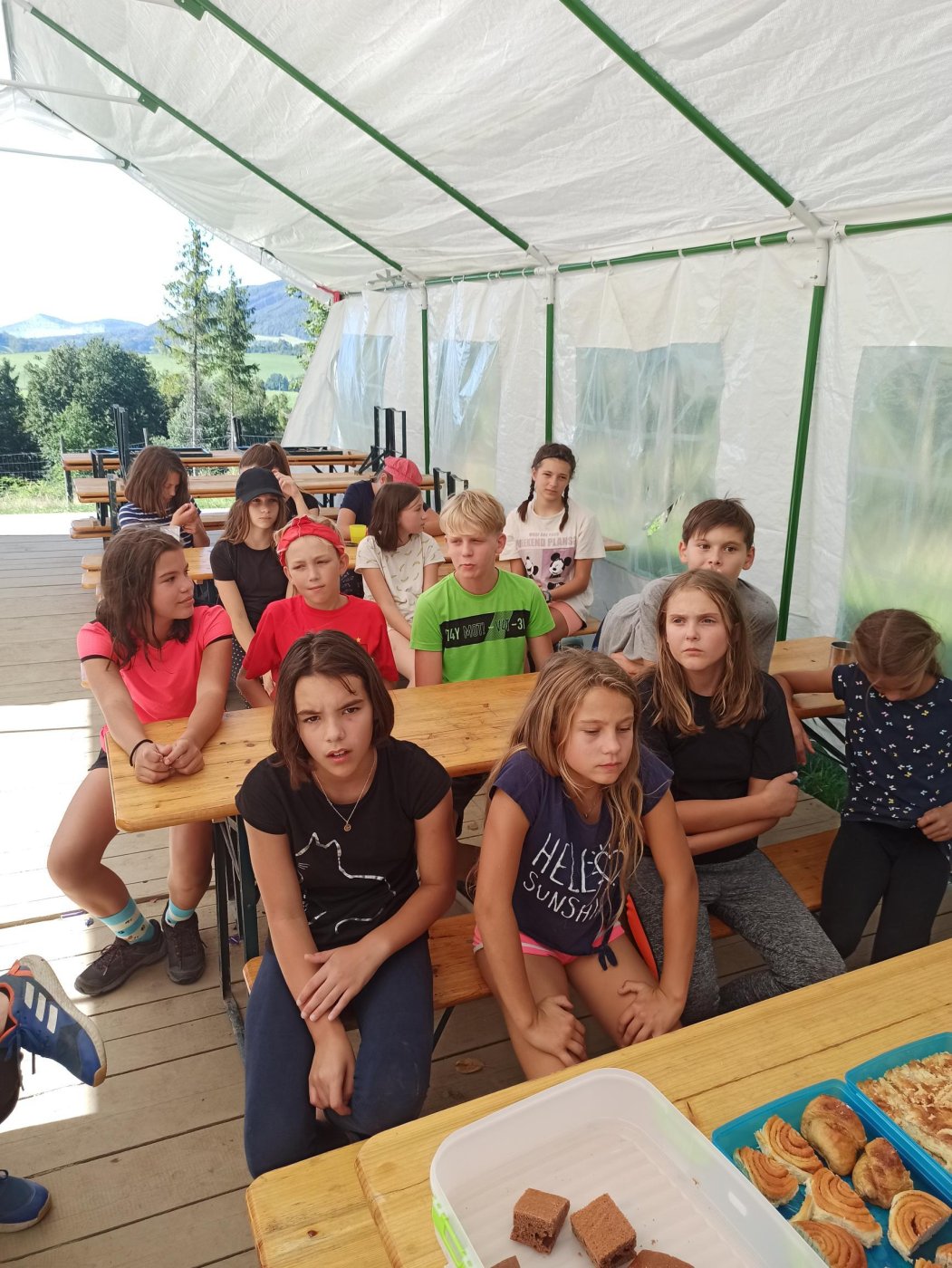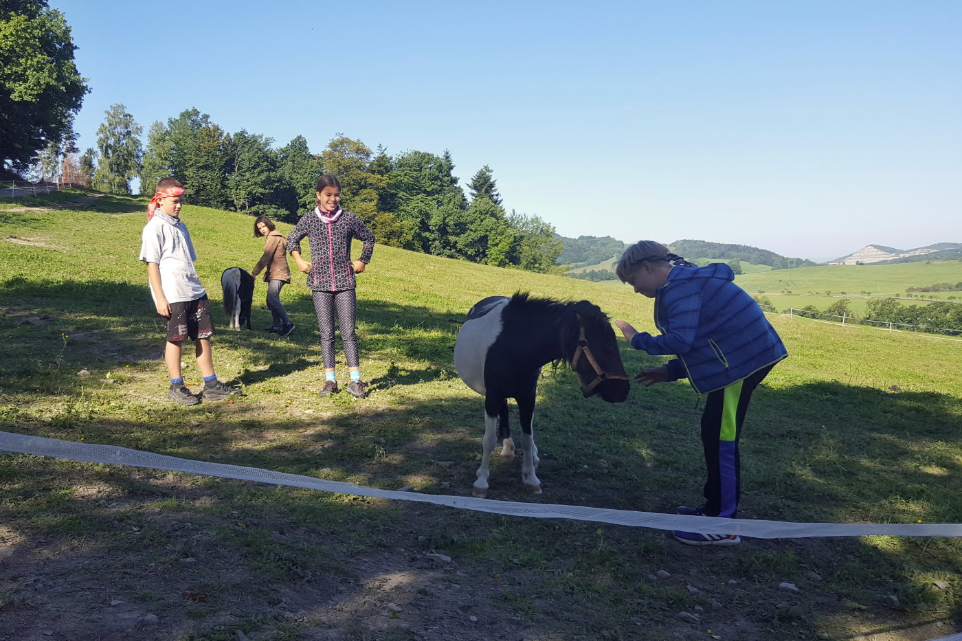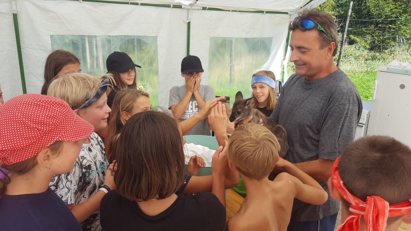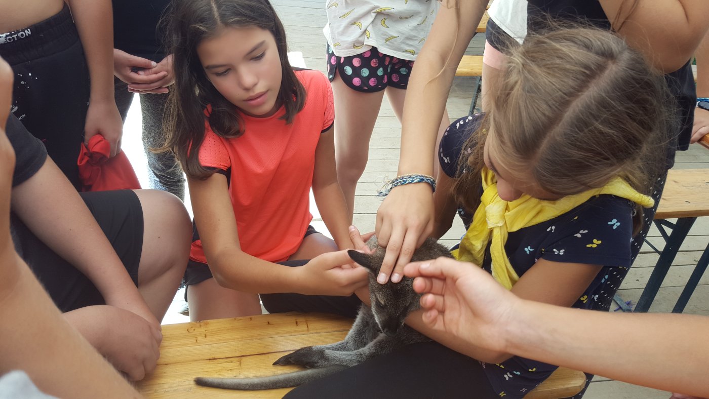 Abychom se sžili s novými spolužáky, novou paní učitelkou třídní a některými učiteli z druhého stupně, vyrazili jsme společně na třídenní pobyt v minizoo ranči Horečky u Frenštátu p. R. Celý první den jsme strávili na cestě. Na ranč jsme šli pěšky po modré turistické značce přes Kamenárku a kolem pramene Jičínky. Cestou jsme hráli různé hry, většinou s batikovanými šátky, které jsme si sami nabarvili. Někteří z nás si cestou sáhli se silami na dno - ten kopec byl hrozný!!! Ale odměna, v podobě oddechu na ranči, byla zasloužená. Krásné ubytování ve stanech s podsadou nebo chatičkách. Čekali na nás kozy, ovce, oslík, klokani, pštrosi a spousta dalších zvířat. Nejlepší byla morčata a králíčci - k těm jsme mohli do výběhu, vzít si je do náruče, pohladit si je. Večer byl táborák. Na kytaru hráli náš bývalý pan učitel třídní z 5. třídy Jirka Krajča a náš nový pan učitel hudební výchovy a českého jazyka Dan Stibor. Druhý den jsme šli na procházku k řece Lubině a odpoledne na nás čekalo střílení z airsoftové pistole na terč, ježdění na koni a motorové čtyřkolce a jedno velké překvapení. Na ranči uměle odchovávají klokaní mládě, holčičku Sissi, a my jsme si ji mohli pochovat, pohladit a dokonce nakrmit z kojenecké lahve. Večer nám u táborového ohně majitel ranče vyprávěl zážitky z cesty do Afriky a my jemu vtipy. V pátek jsme se sbalili, uklidili tábořiště a přes Horečky, kolem skokanských můstků šli do Frenštátu na autobusovou zastávku, odkud jsme odjeli autobusem domů.