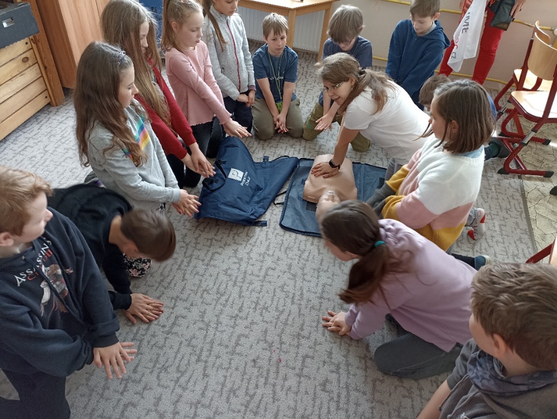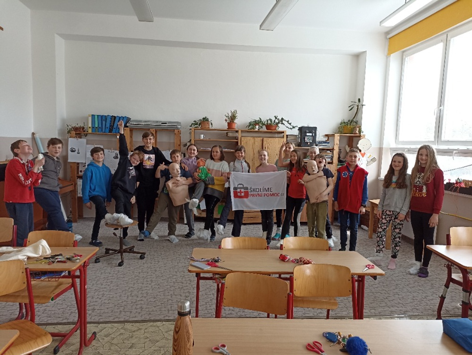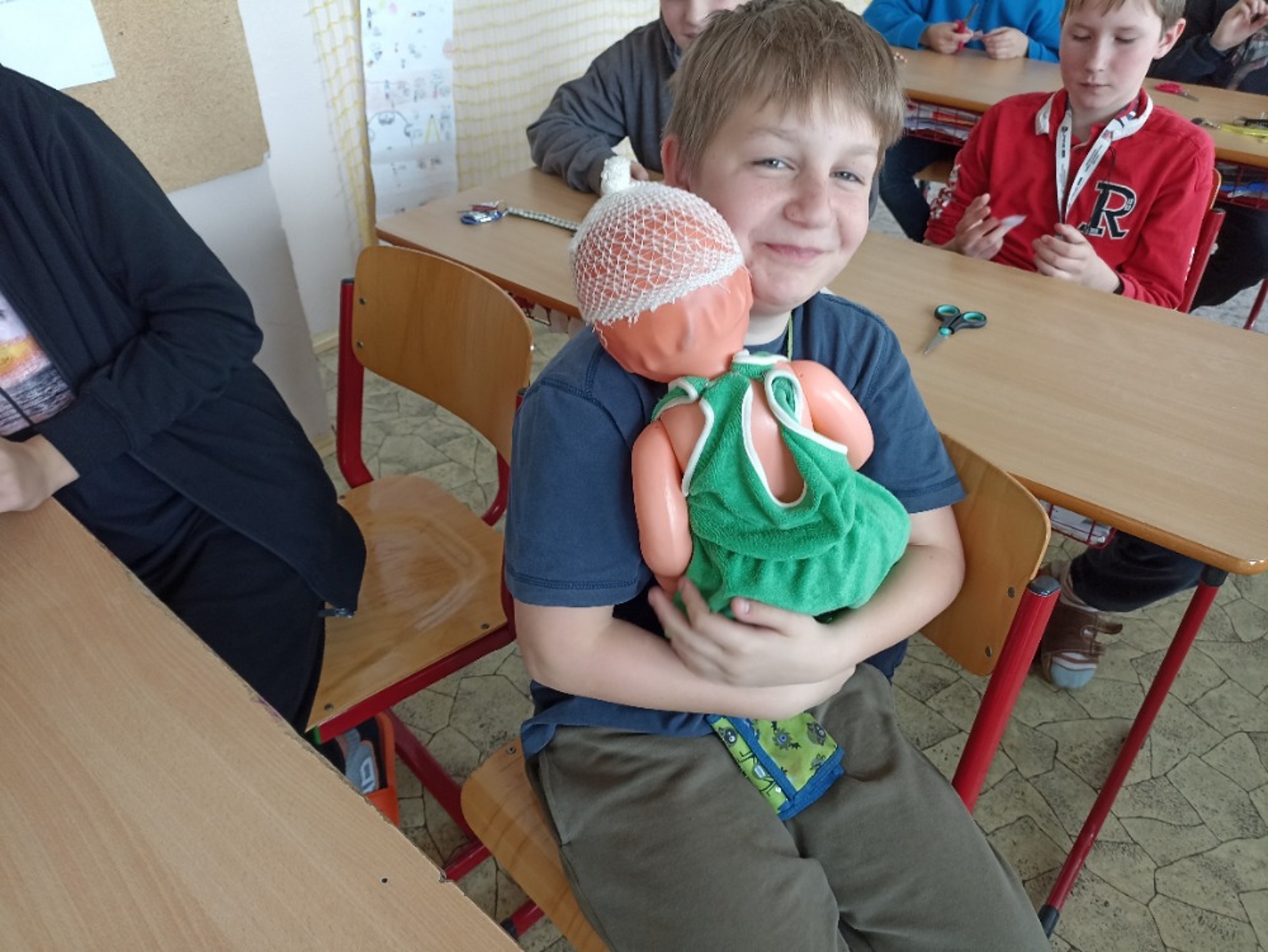 Nejvíc se člověk naučí, když si to sám vyzkouší. A tak jsme - i s pomocí rodičů - pozvali zástupce různých profesí, kteří se podílejí na péči o naši bezpečnost a zdraví. Nejmladší žáci se prošli parkem a za skanzenem prozkoumali hasičskou stanici. Otázek i zážitků bylo plno. Postupně se všechny třídy vystřídaly u přistaveného vozu záchranné služby před školou. Děti si prohlédly vybavení auta a dostalo se jim podrobného vysvětlení, co k čemu slouží. Všichni si mohli vyzkoušet transportní lehátka a vozíky a dokonce i spustit blikačky a sirény. Čtvrtý a pátý ročník pod vedení zdravotnice Kamily Cermanové absolvoval proškolení první pomoci, a to hlavně prakticky, včetně nácviku masáže srdce. Podobné instrukce dostali také žáci druhého stupně na stanovištích v SVČ. Naše kolegyně Veronika Vašutová žákům názorně ukázala, jak funguje a k čemu slouží aplikace Záchranka. Někteří žáci si ji hned stáhli. Všichni společně jsme pak na hřišti sledovali policejní psovody a jejich služební psy. Po vysvětlení, jak probíhá výcvik, vždy následovala ukázka i se zapojením našich žáků. Příslušníci městské policie s žáky osmé a deváté třídy pokračovali v protidrogovém projektu Revolution Train. Cílem návazného programu, nazvaného To je zákon, kámo!, bylo najít odpovědi na otázky, jak co nejúčinněji odmítnout nabízenou drogu, co je legální, a co už nezákonné, kde je hranice mezi přestupkem a trestným činem nebo čím se liší krádež od loupeže. Poděkování patří všem zúčastněným lidem i organizacím za odborné a inspirativní příspěvky. Odcházeli jsme s respektem k jejich profesionalitě.