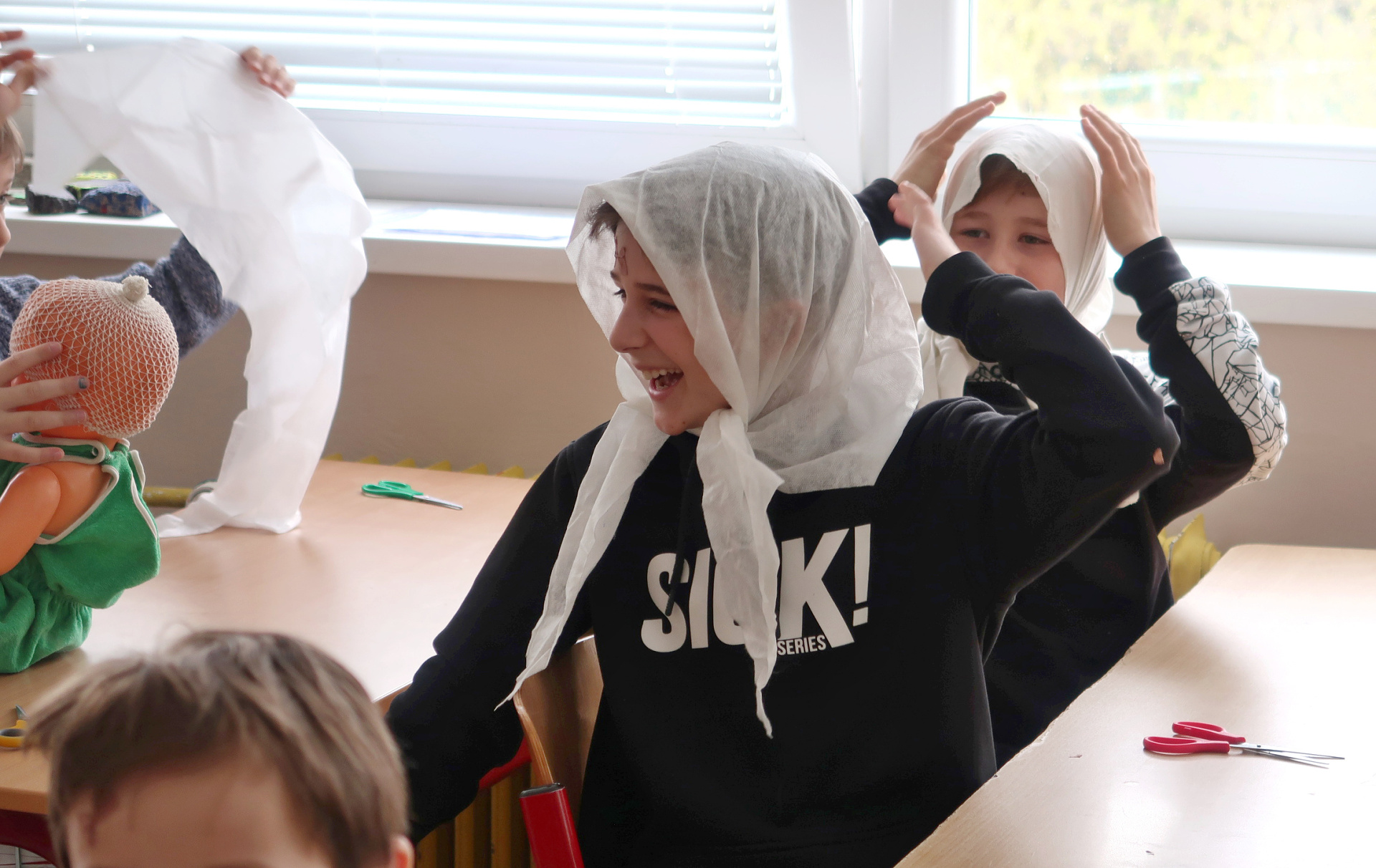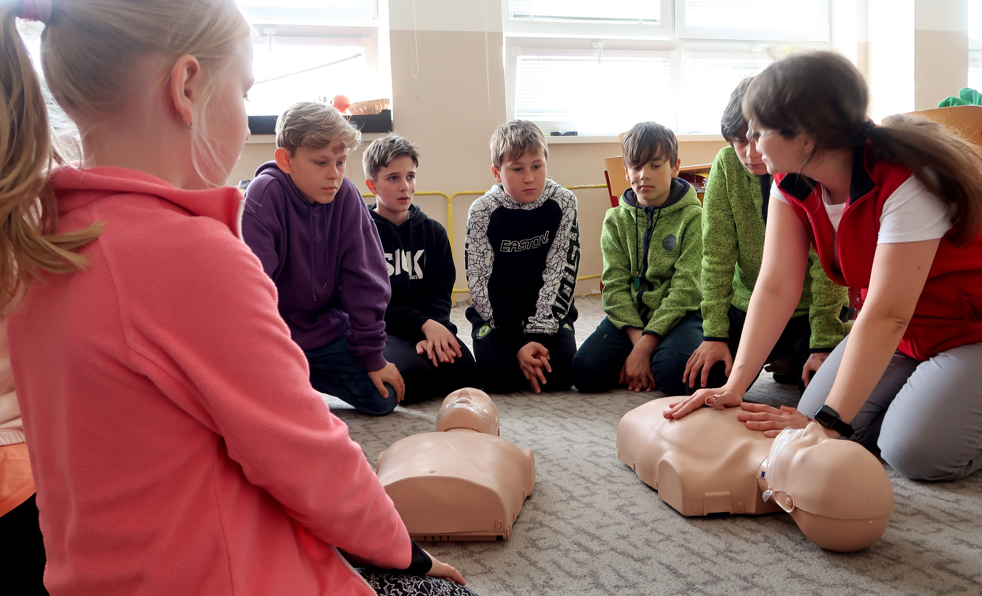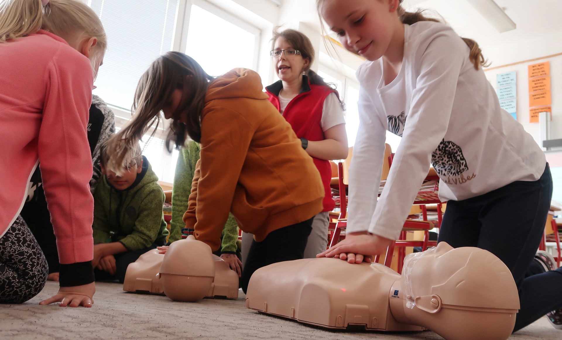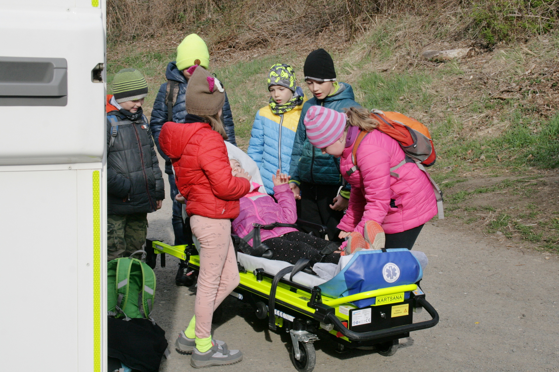 Nejvíc se člověk naučí, když si to sám vyzkouší. A tak jsme - i s pomocí rodičů - pozvali zástupce různých profesí, kteří se podílejí na péči o naši bezpečnost a zdraví. Nejmladší žáci se prošli parkem a za skanzenem prozkoumali hasičskou stanici. Otázek i zážitků bylo plno. Postupně se všechny třídy vystřídaly u přistaveného vozu záchranné služby před školou. Děti si prohlédly vybavení auta a dostalo se jim podrobného vysvětlení, co k čemu slouží. Všichni si mohli vyzkoušet transportní lehátka a vozíky a dokonce i spustit blikačky a sirény. Čtvrtý a pátý ročník pod vedení zdravotnice Kamily Cermanové absolvoval proškolení první pomoci, a to hlavně prakticky, včetně nácviku masáže srdce. Podobné instrukce dostali také žáci druhého stupně na stanovištích v SVČ. Naše kolegyně Veronika Vašutová žákům názorně ukázala, jak funguje a k čemu slouží aplikace Záchranka. Někteří žáci si ji hned stáhli. Všichni společně jsme pak na hřišti sledovali policejní psovody a jejich služební psy. Po vysvětlení, jak probíhá výcvik, vždy následovala ukázka i se zapojením našich žáků. Příslušníci městské policie s žáky osmé a deváté třídy pokračovali v protidrogovém projektu Revolution Train. Cílem návazného programu, nazvaného To je zákon, kámo!, bylo najít odpovědi na otázky, jak co nejúčinněji odmítnout nabízenou drogu, co je legální, a co už nezákonné, kde je hranice mezi přestupkem a trestným činem nebo čím se liší krádež od loupeže. Poděkování patří všem zúčastněným lidem i organizacím za odborné a inspirativní příspěvky. Odcházeli jsme s respektem k jejich profesionalitě.