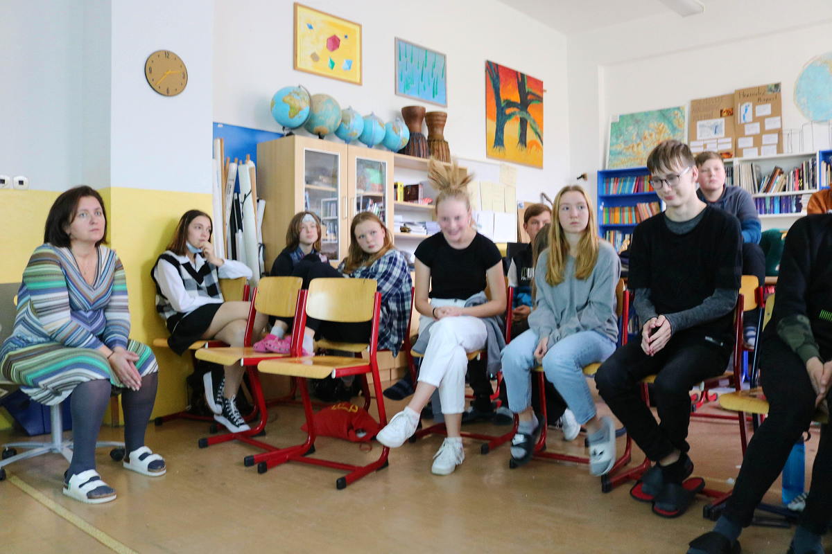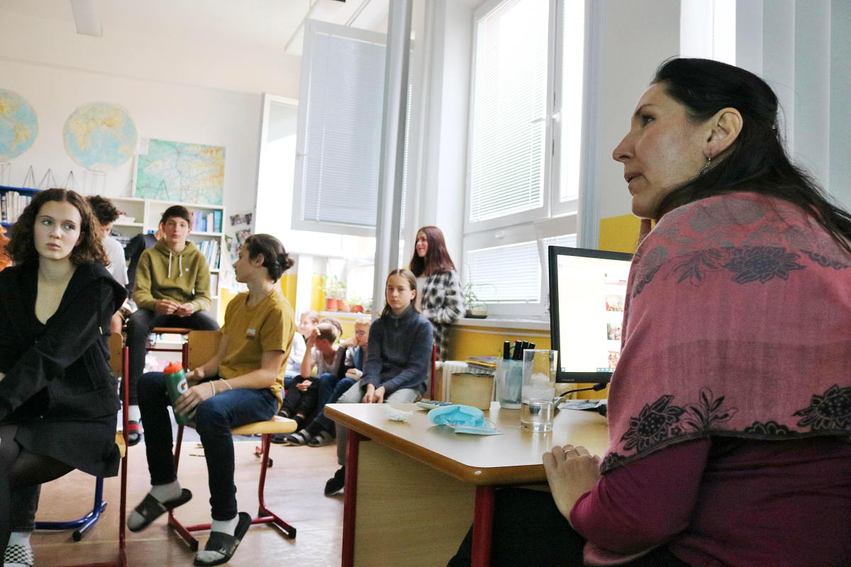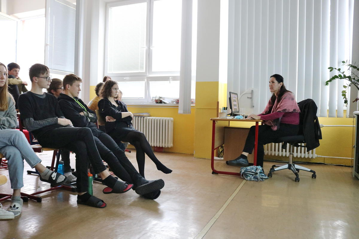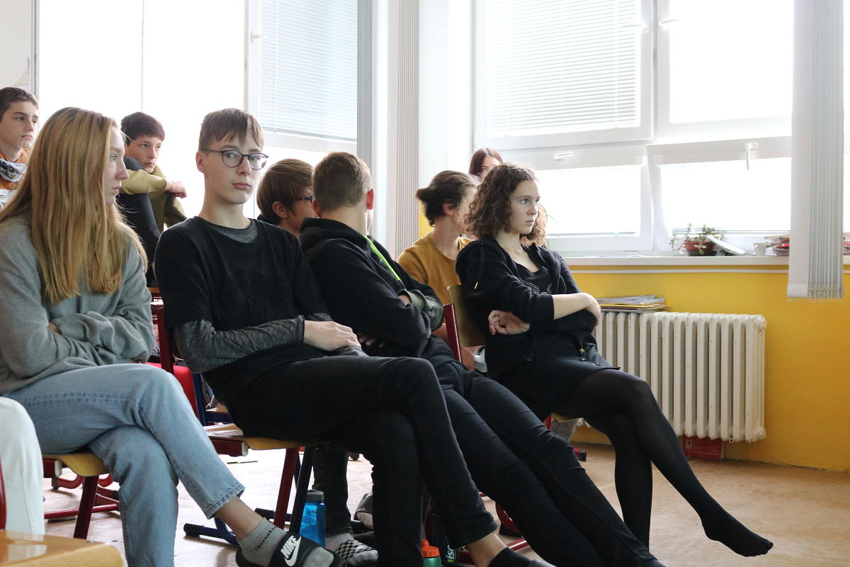 Chtěli byste žít v zemi, kde není povinná školní docházka, je tu velké množství svátků, sladkosti jsou mnohem sladší a krávy si tu dělají, co chtějí? Na besedě s paní Kateřinou Hapalovou, spoluzakladatelkou školy v nejstarším indickém městě Varanasí, jsme viděli fotografie a videa ze života obyčejných indických dětí, jaké v turistických průvodcích nenajdeme. Žáky osmé a deváté třídy zajímalo, jak jedí, bydlí, sportují, baví se děti v Indii, jestli mají domácí mazlíčky, jak to, že i člověk z nejvyšší kasty může být chudý, co asi Indové vědí o České republice.