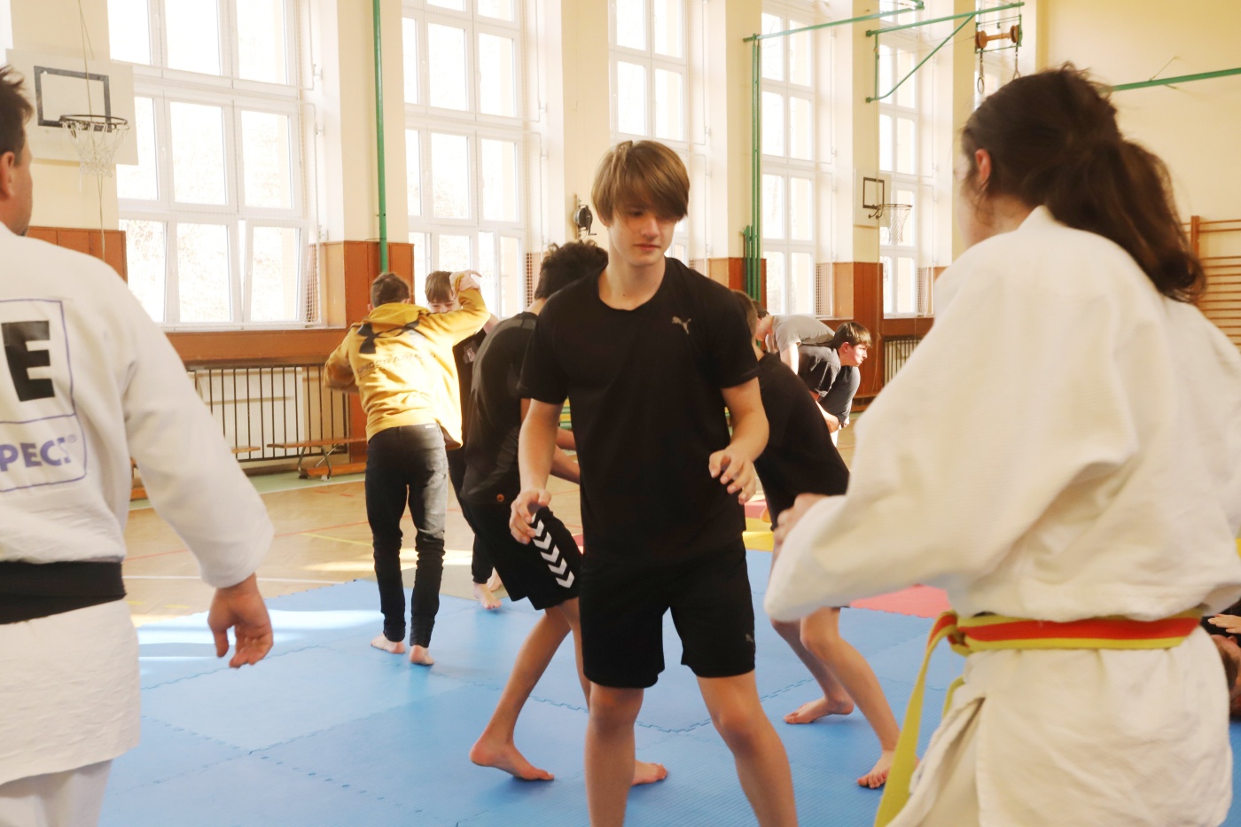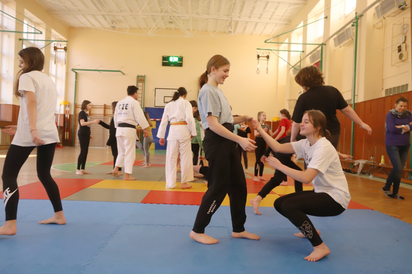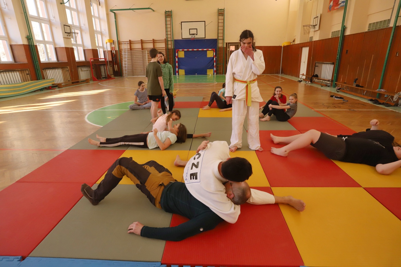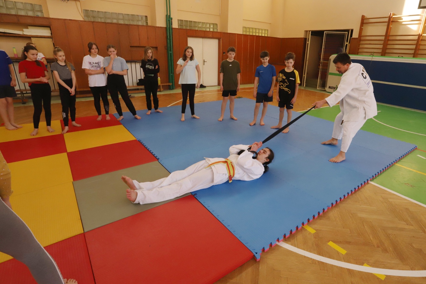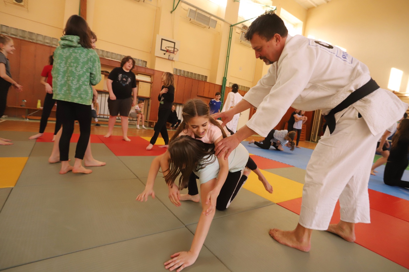 Zazněl pokyn a začal cvičný boj. Snažíme se uplatnit chvaty, které jsme se před chvíli naučili. Třeba ogoši, to znamená přehodit soupeře přes svůj bok. Nebo jinou techniku, kdy je cílem udržet protivníka na podložce. A vydržet, dokud se neozve: "Mate!" A je konec zápasu. Díky setkání s panem Kořínkem jsme si vyzkoušeli základy juda. Protáhli jsme si tělo gymnastickými cviky, naučili se, jak bezpečně padat, posilovat s váhou partnera. Zápasení bylo zcela dobrovolné a zaměřené na obranu. Vše se odehrávalo v rámci filosofie juda o vzájemném respektu. Rozloučili jsme se v judistickém pokleku seisa a uklonili se navzájem. O týden později se k 6. a 7. třídě přidali i osmáci a deváťáci.Děkujeme!