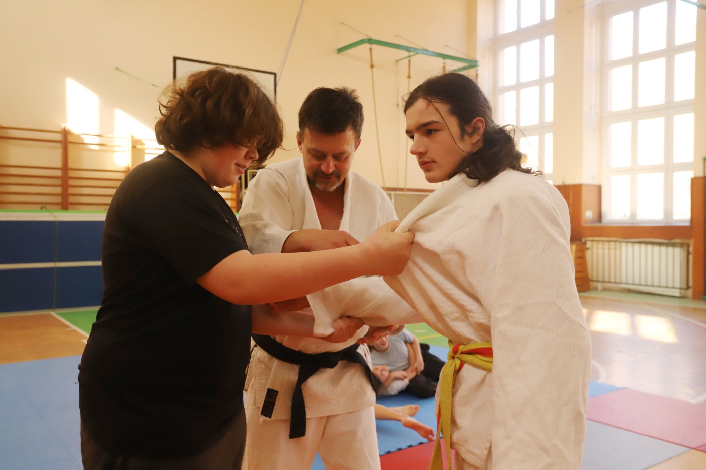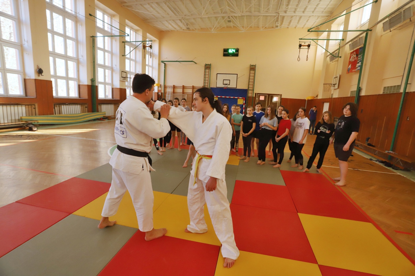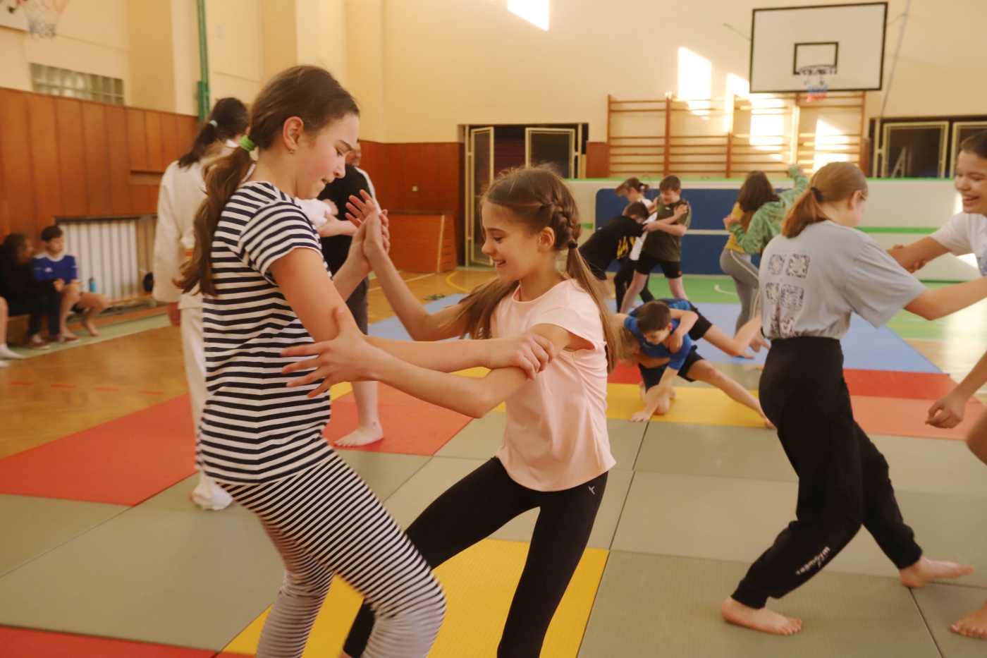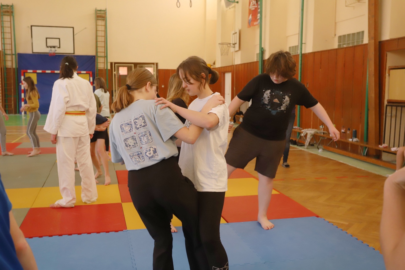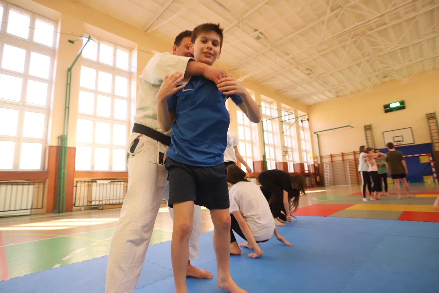Zazněl pokyn a začal cvičný boj. Snažíme se uplatnit chvaty, které jsme se před chvíli naučili. Třeba ogoši, to znamená přehodit soupeře přes svůj bok. Nebo jinou techniku, kdy je cílem udržet protivníka na podložce. A vydržet, dokud se neozve: "Mate!" A je konec zápasu. Díky setkání s panem Kořínkem jsme si vyzkoušeli základy juda. Protáhli jsme si tělo gymnastickými cviky, naučili se, jak bezpečně padat, posilovat s váhou partnera. Zápasení bylo zcela dobrovolné a zaměřené na obranu. Vše se odehrávalo v rámci filosofie juda o vzájemném respektu. Rozloučili jsme se v judistickém pokleku seisa a uklonili se navzájem. O týden později se k 6. a 7. třídě přidali i osmáci a deváťáci.Děkujeme!